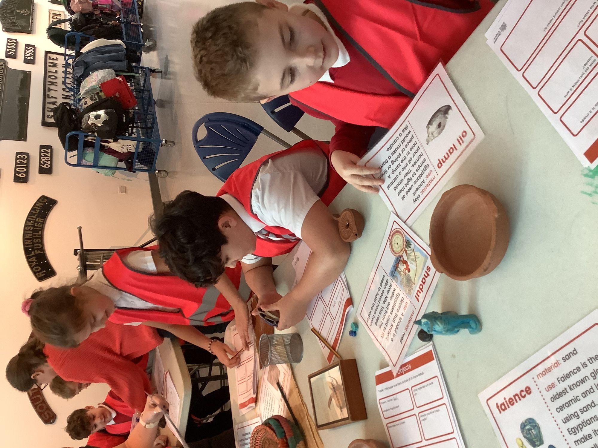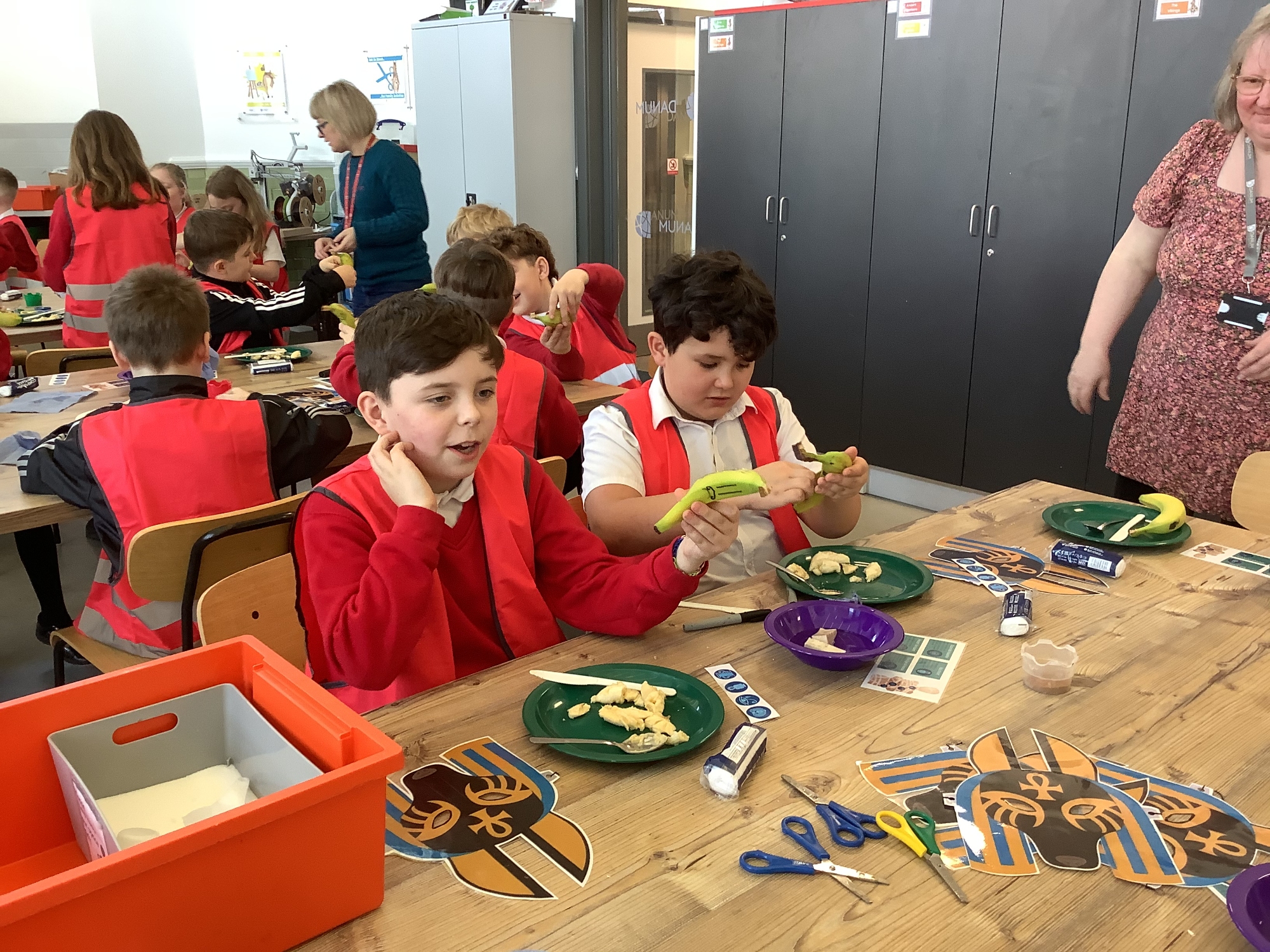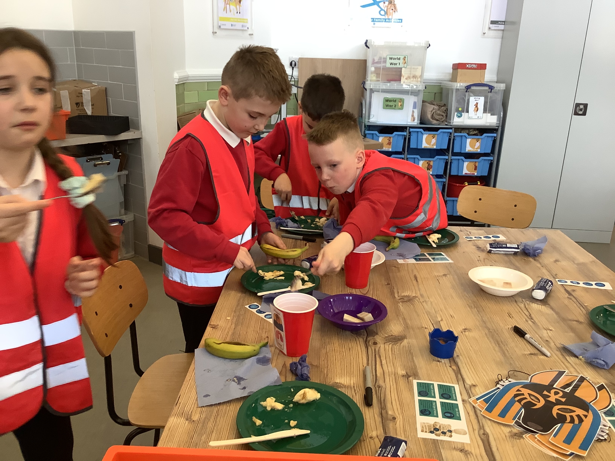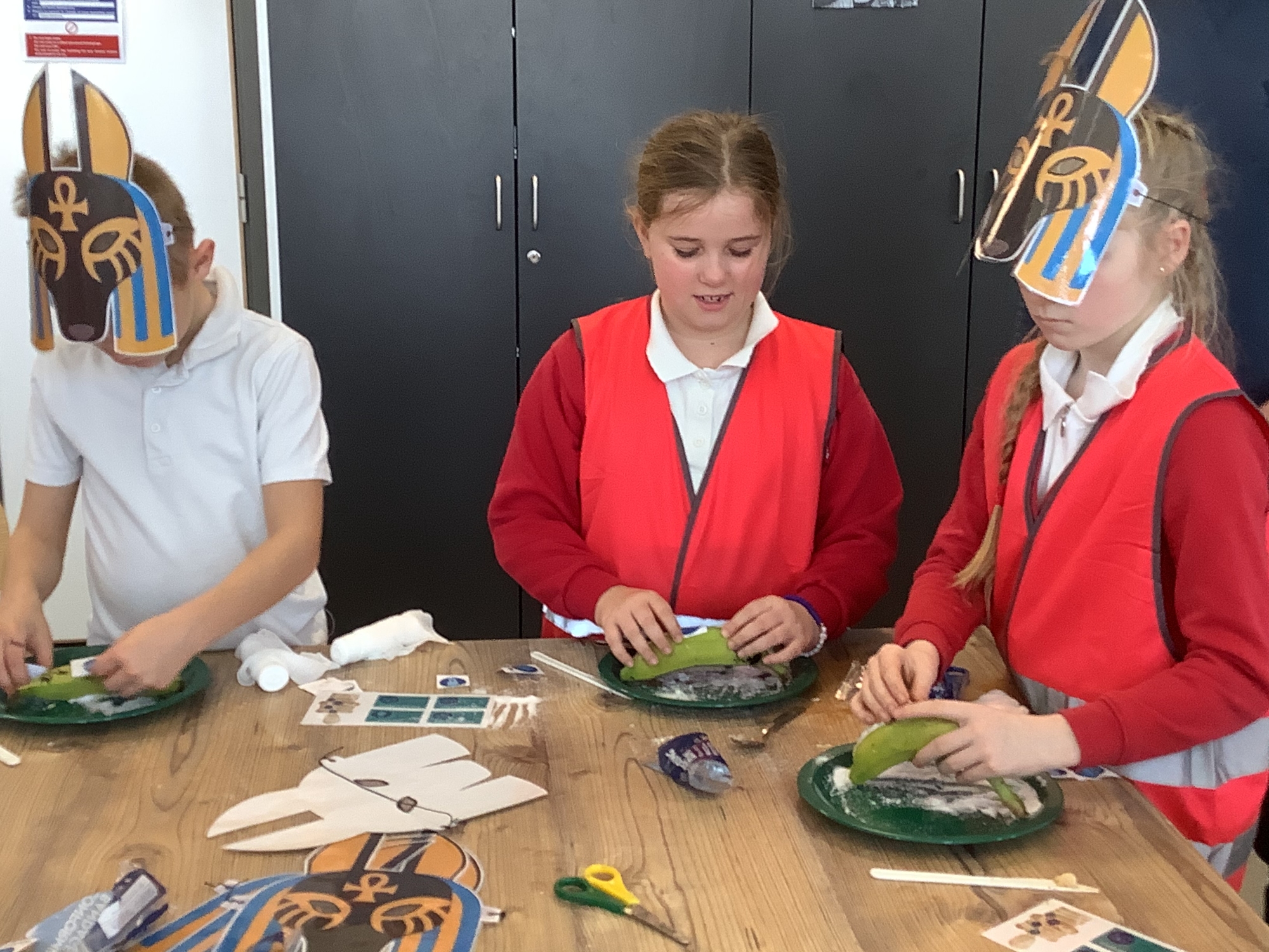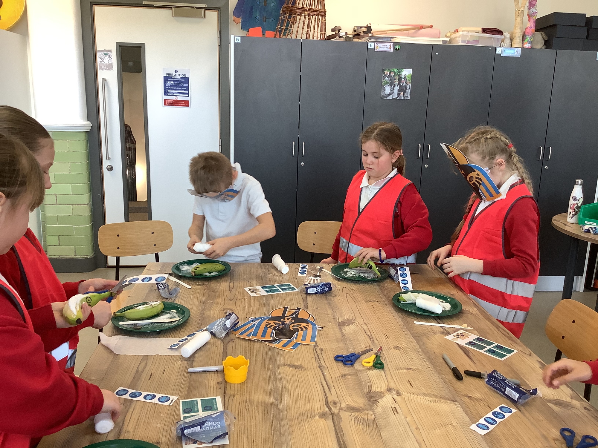 We attended two workshops at the museum. The first one involved carrying out a carousel of activities. We were able to design our own Egyptian Gods, write our names in hieroglyphics, study some Egyptian artefacts and create our own death mask. In the afternoon, we attended our second workshop where we learnt about the Egyptian art of mummification. We were then able to mummify a banana which we brought home and will unwrap in 40 days time. We all really enjoyed the trip.