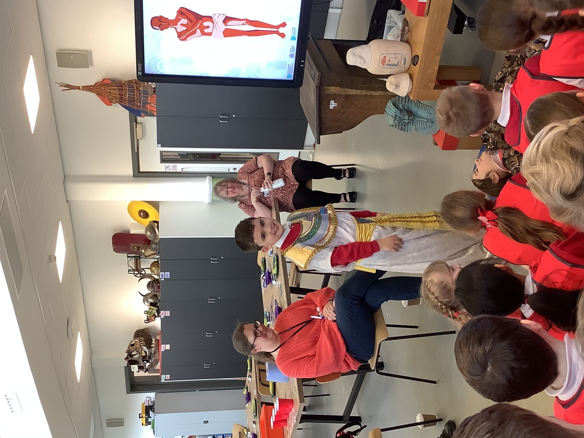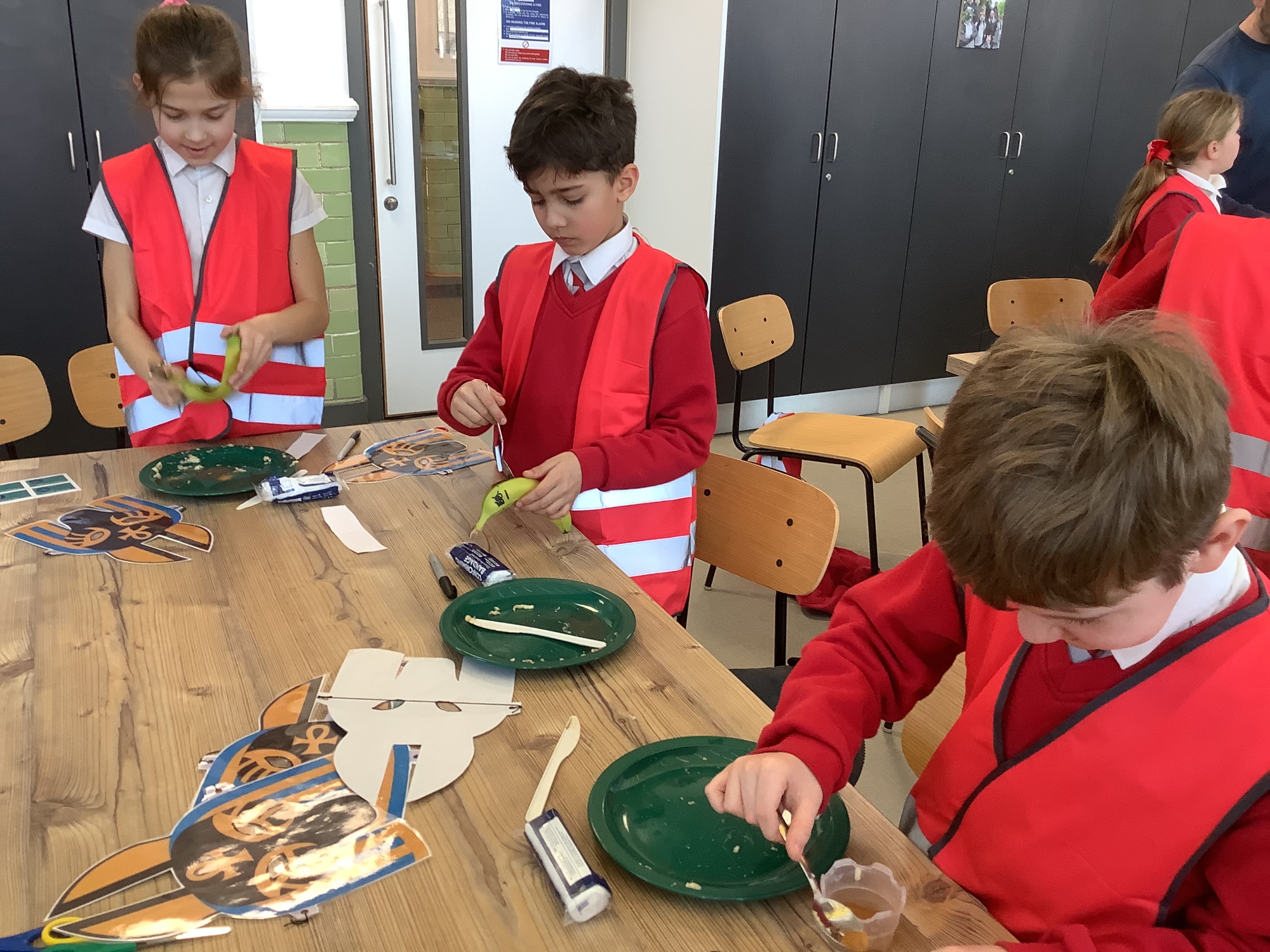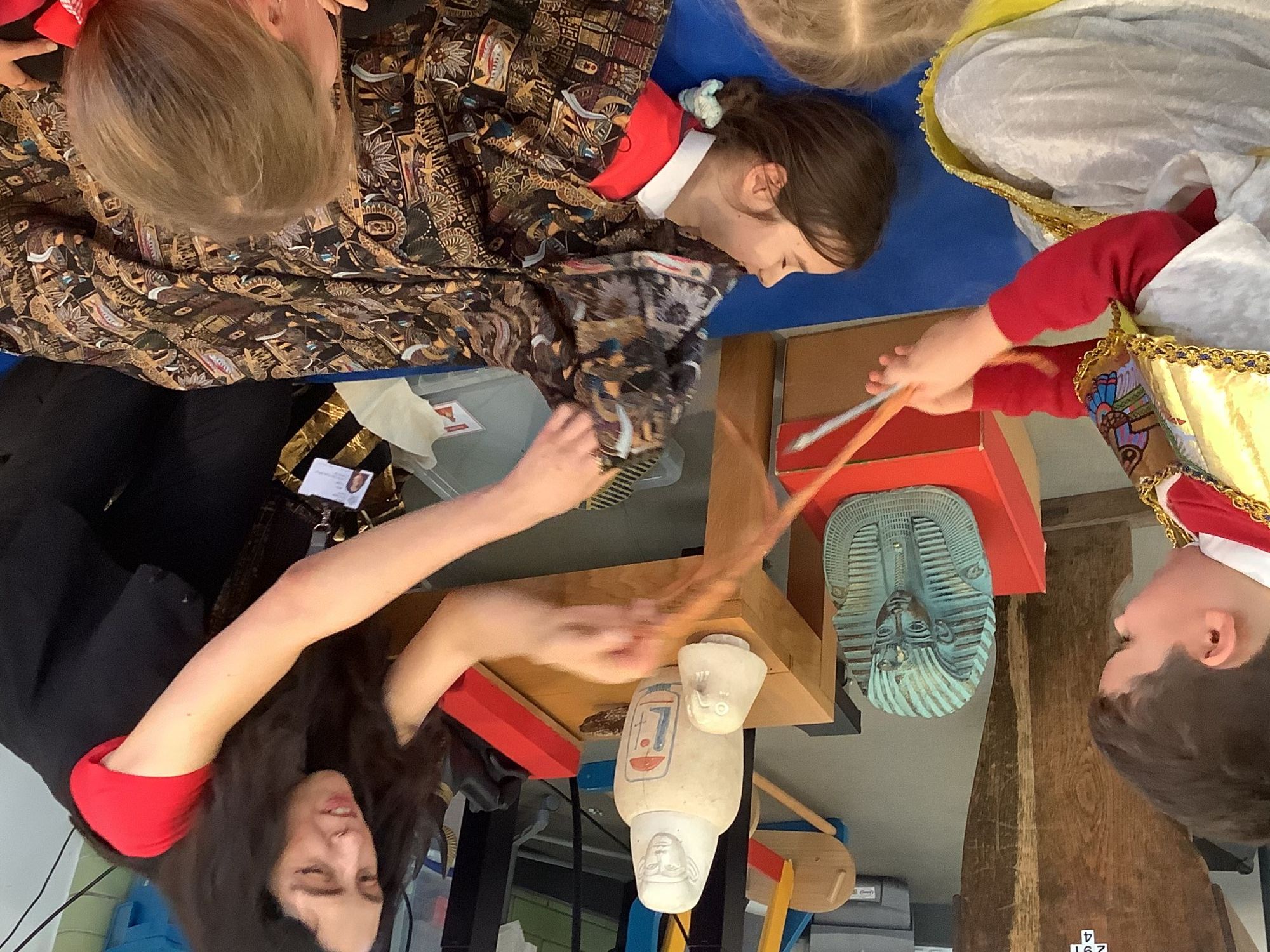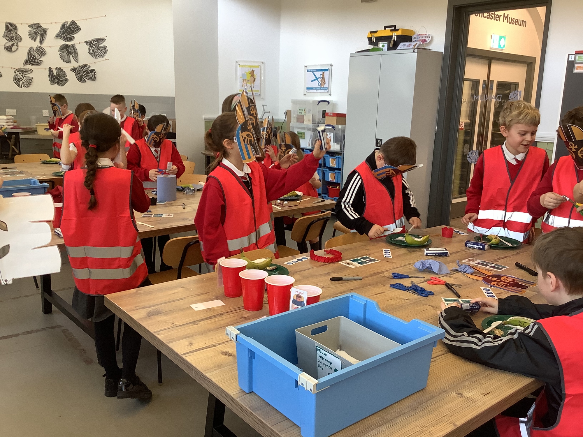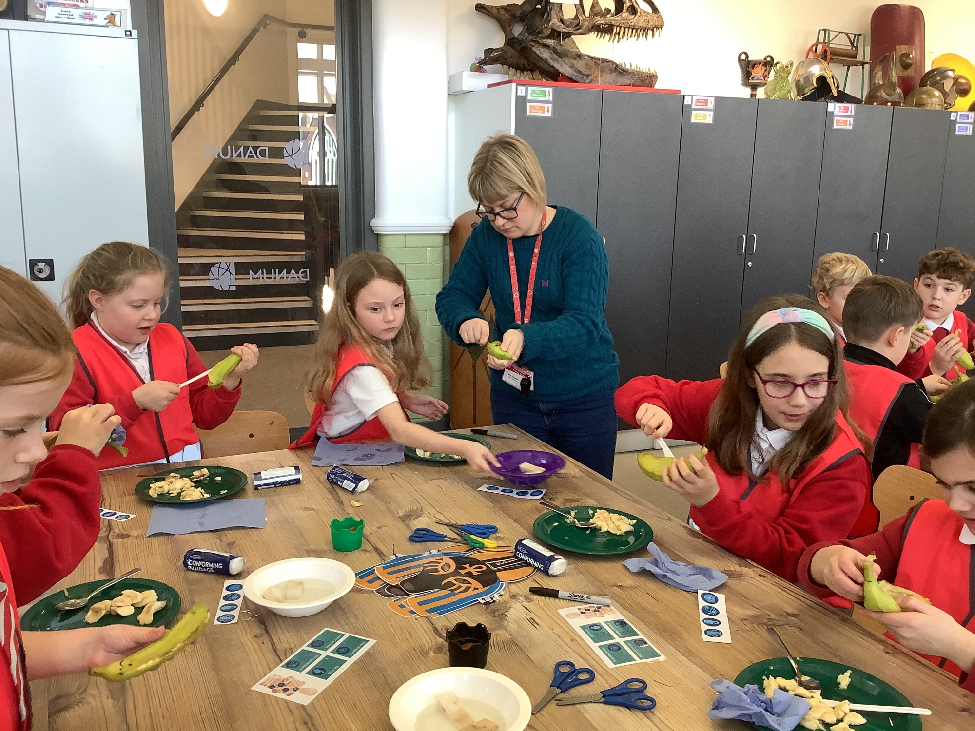 We attended two workshops at the museum. The first one involved carrying out a carousel of activities. We were able to design our own Egyptian Gods, write our names in hieroglyphics, study some Egyptian artefacts and create our own death mask. In the afternoon, we attended our second workshop where we learnt about the Egyptian art of mummification. We were then able to mummify a banana which we brought home and will unwrap in 40 days time. We all really enjoyed the trip.