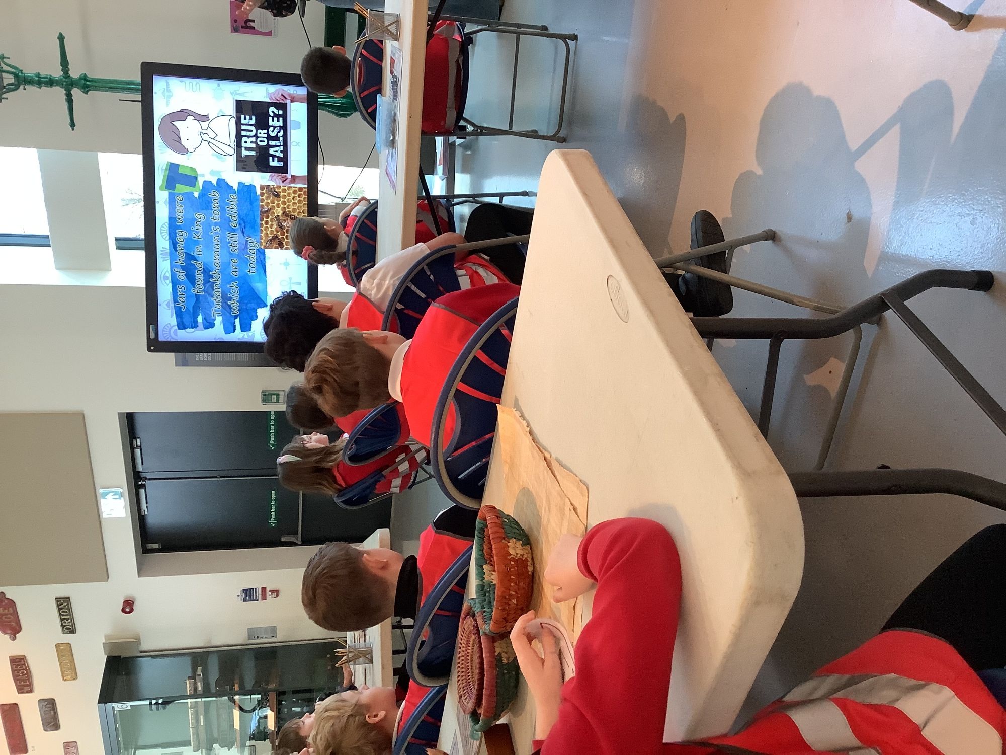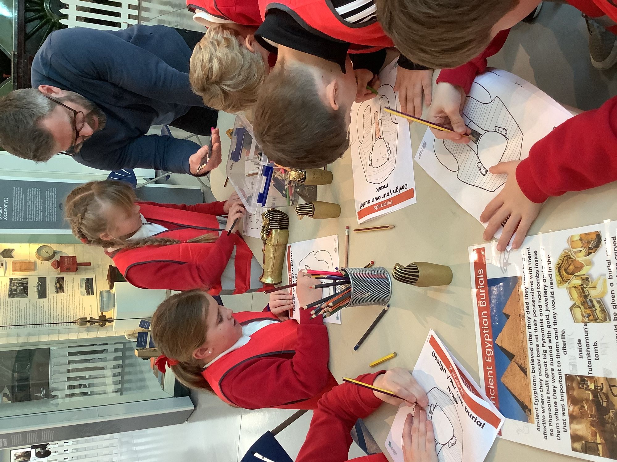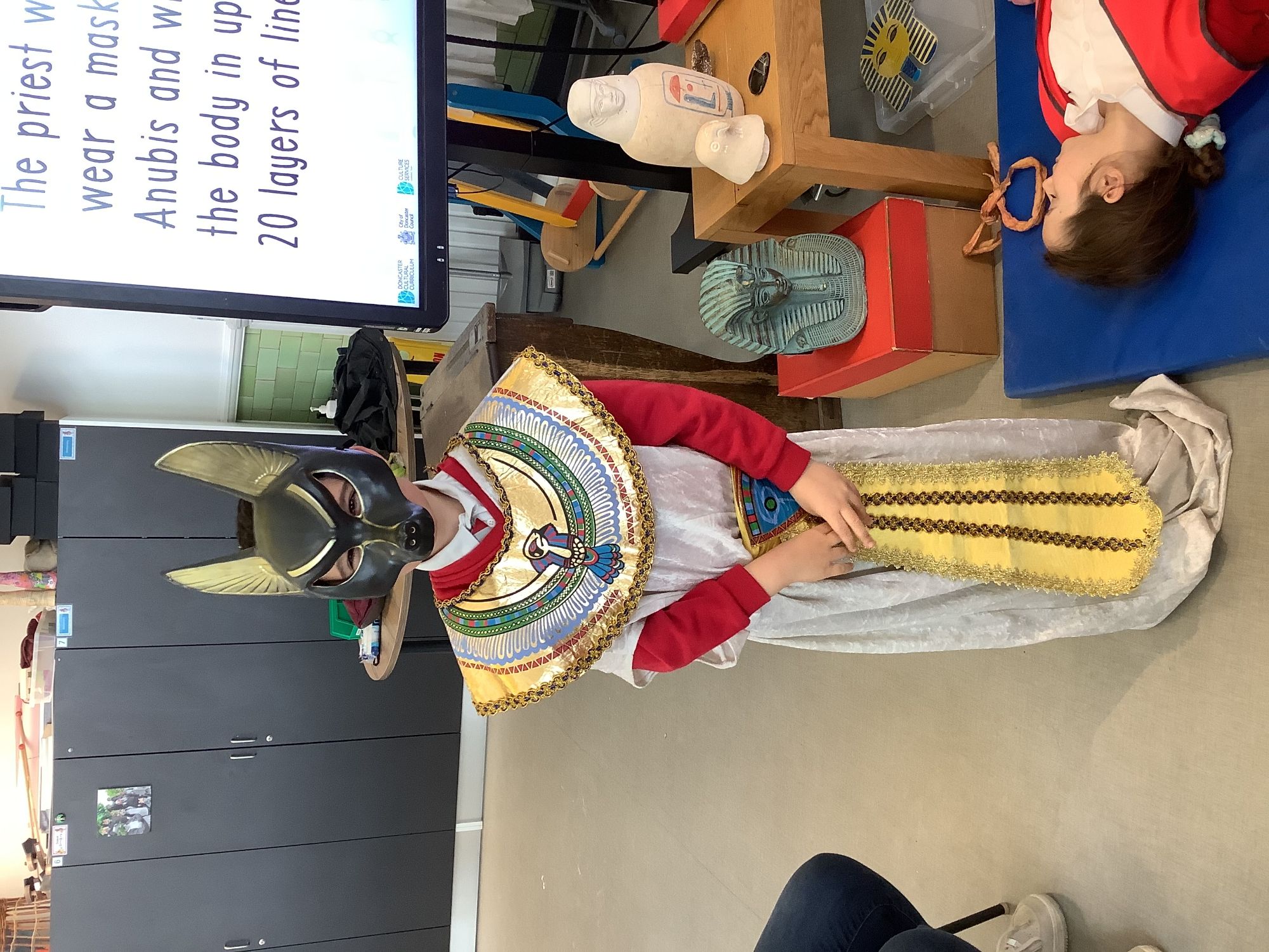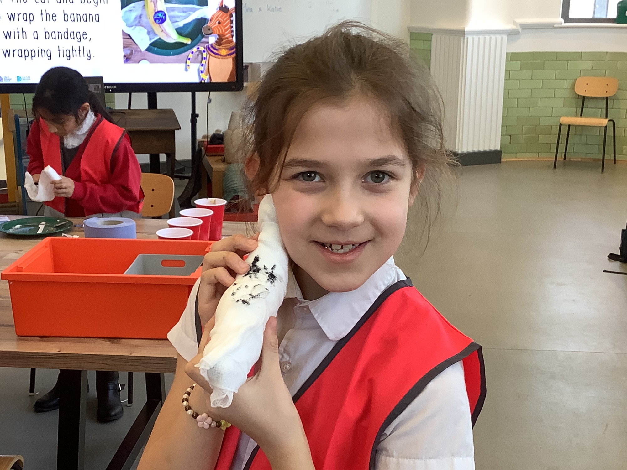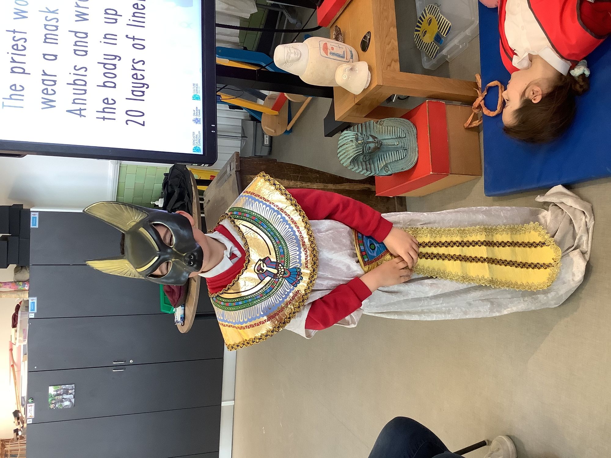 We attended two workshops at the museum. The first one involved carrying out a carousel of activities. We were able to design our own Egyptian Gods, write our names in hieroglyphics, study some Egyptian artefacts and create our own death mask. In the afternoon, we attended our second workshop where we learnt about the Egyptian art of mummification. We were then able to mummify a banana which we brought home and will unwrap in 40 days time. We all really enjoyed the trip.
