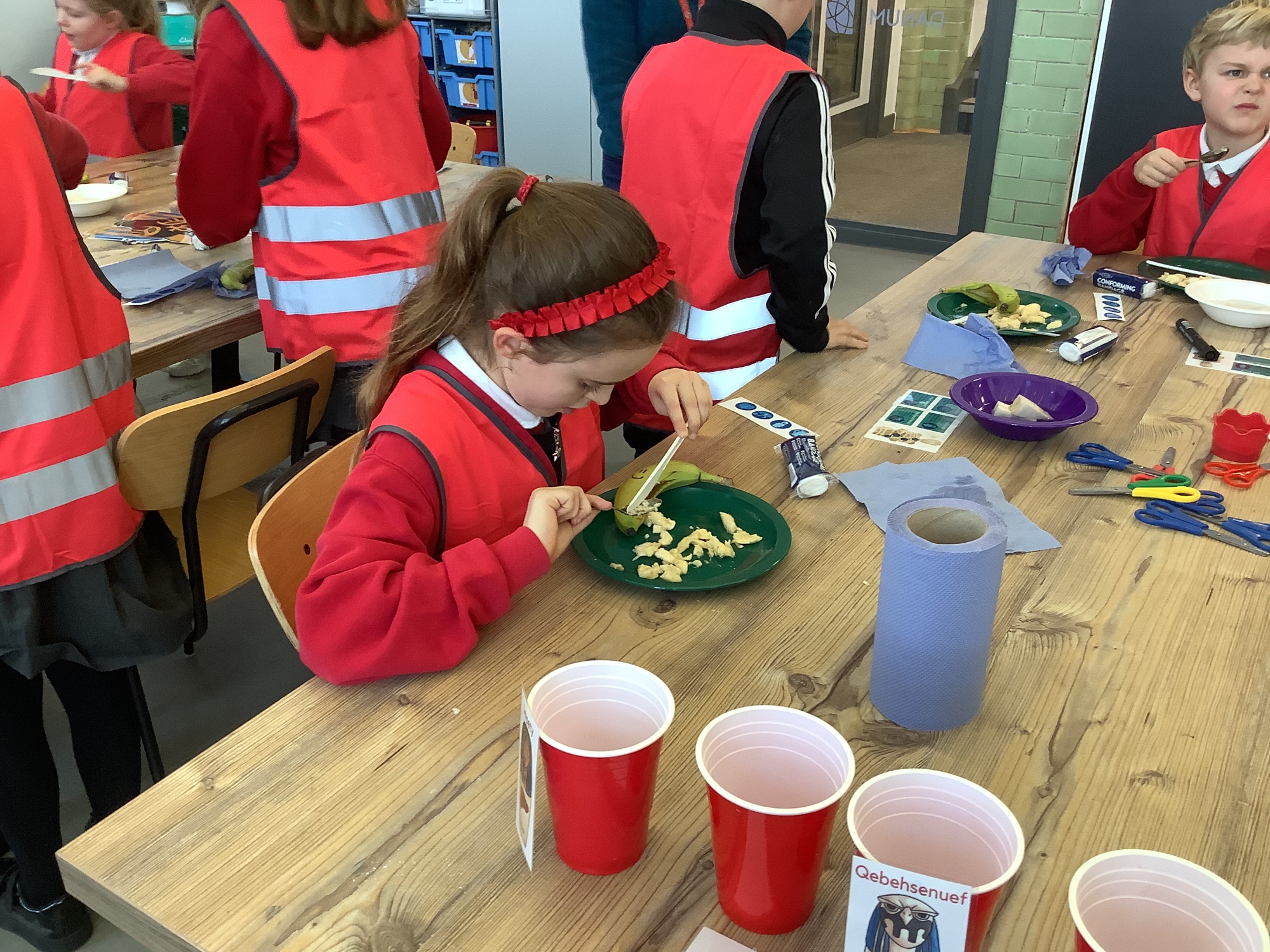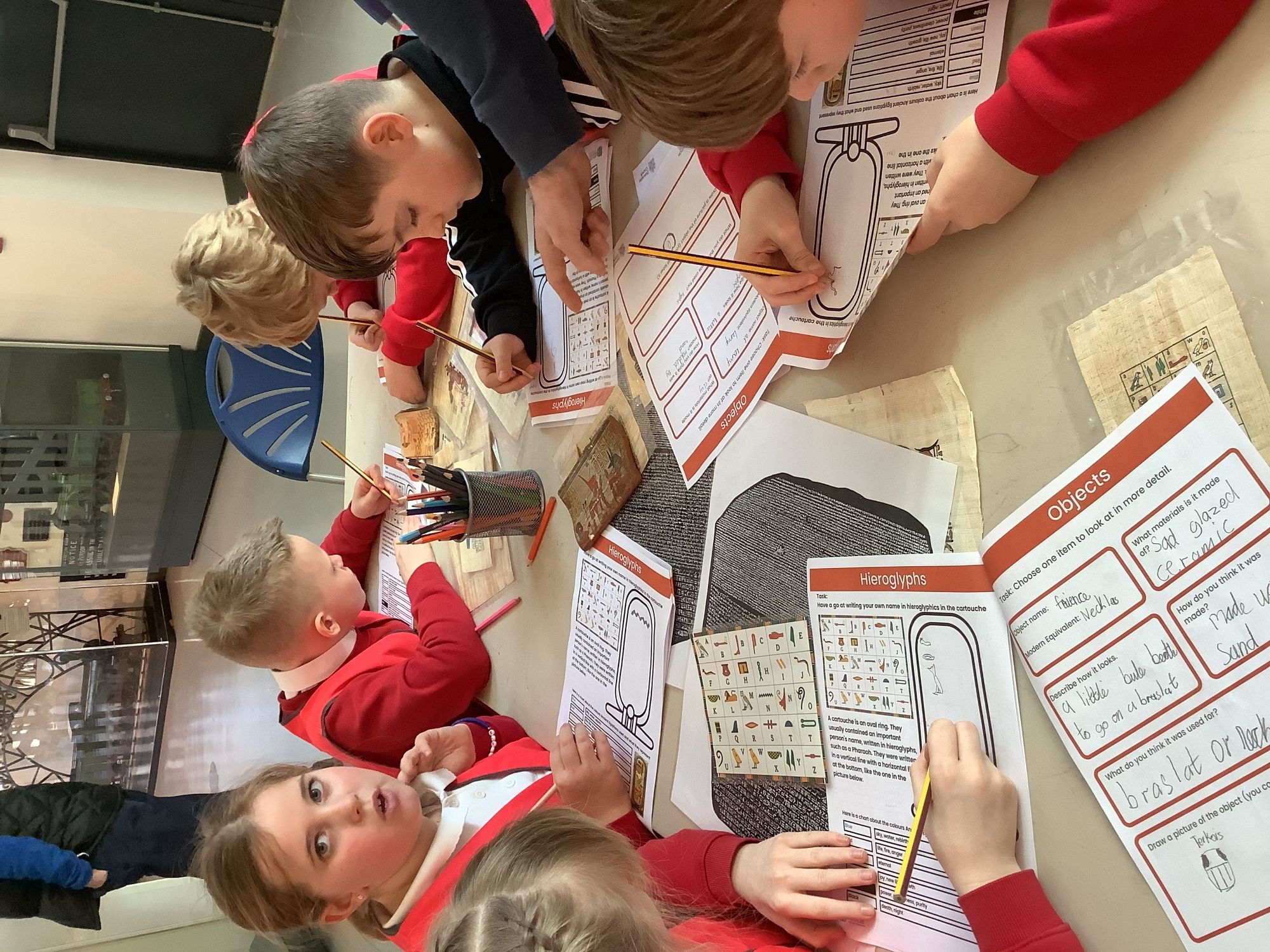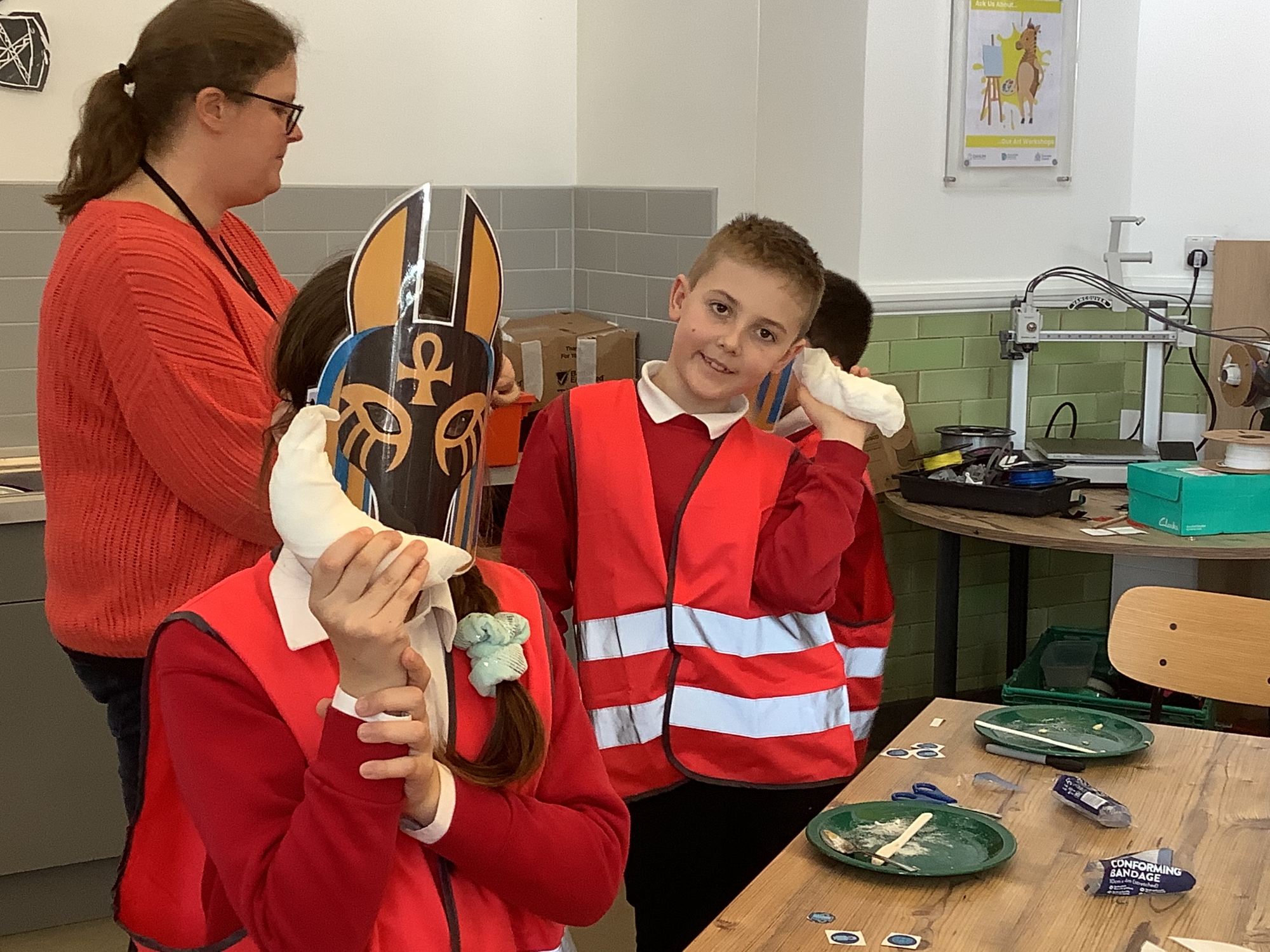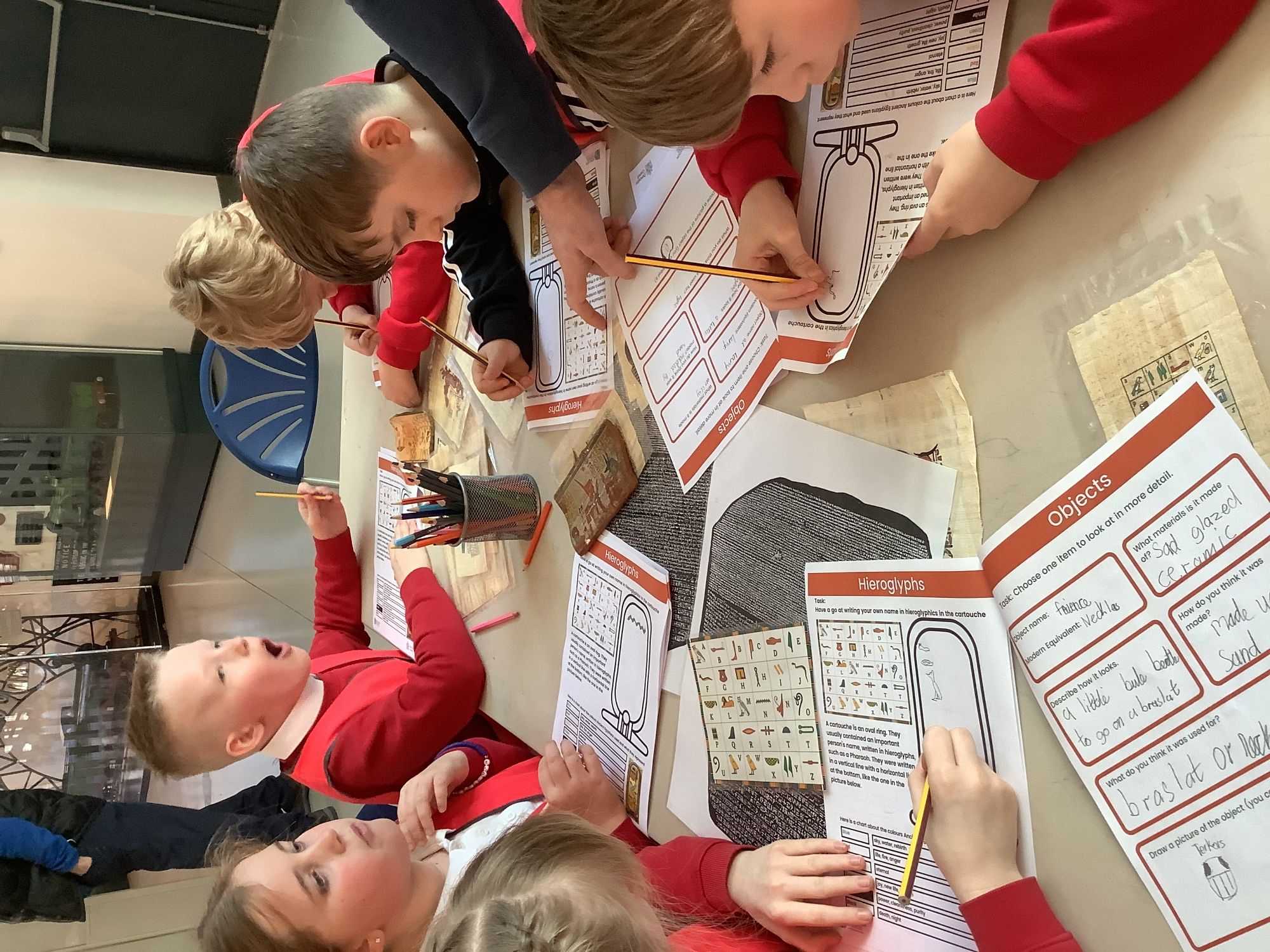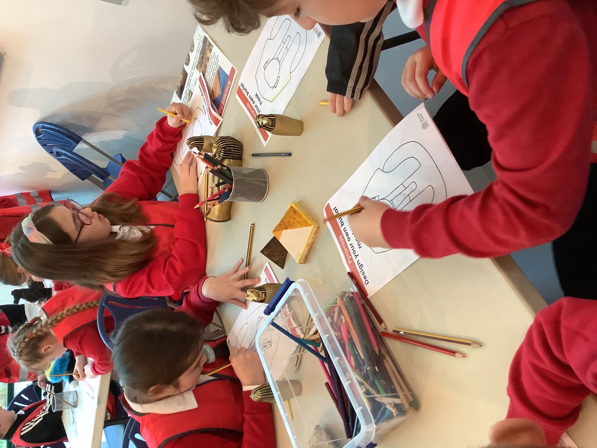 We attended two workshops at the museum. The first one involved carrying out a carousel of activities. We were able to design our own Egyptian Gods, write our names in hieroglyphics, study some Egyptian artefacts and create our own death mask. In the afternoon, we attended our second workshop where we learnt about the Egyptian art of mummification. We were then able to mummify a banana which we brought home and will unwrap in 40 days time. We all really enjoyed the trip.