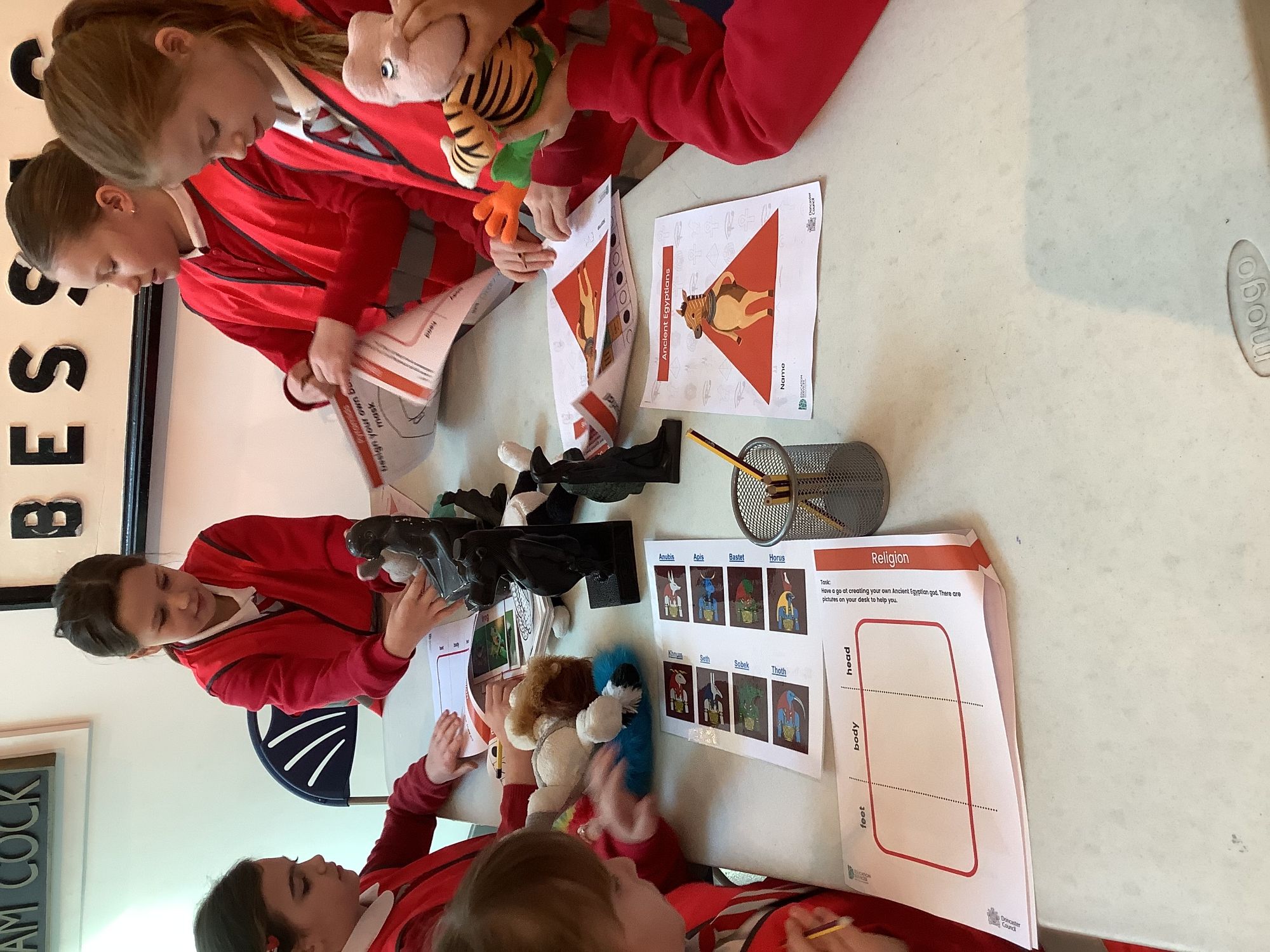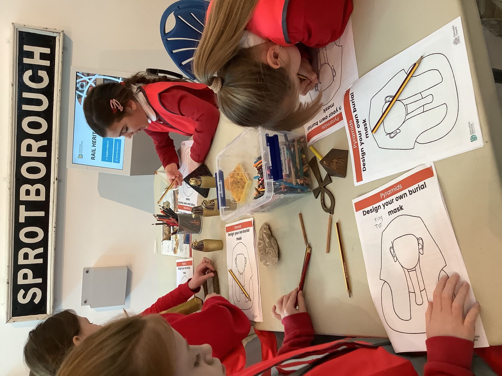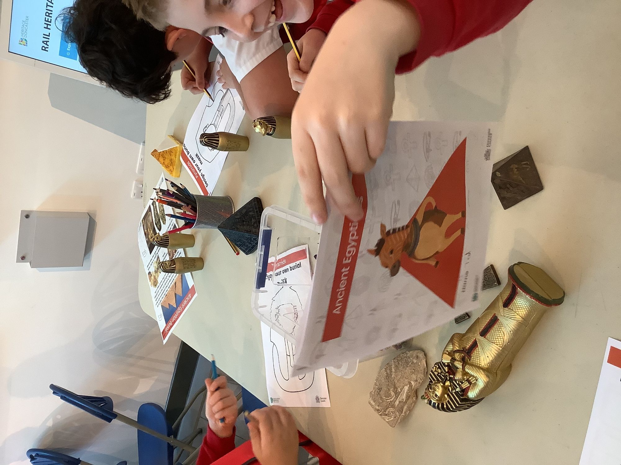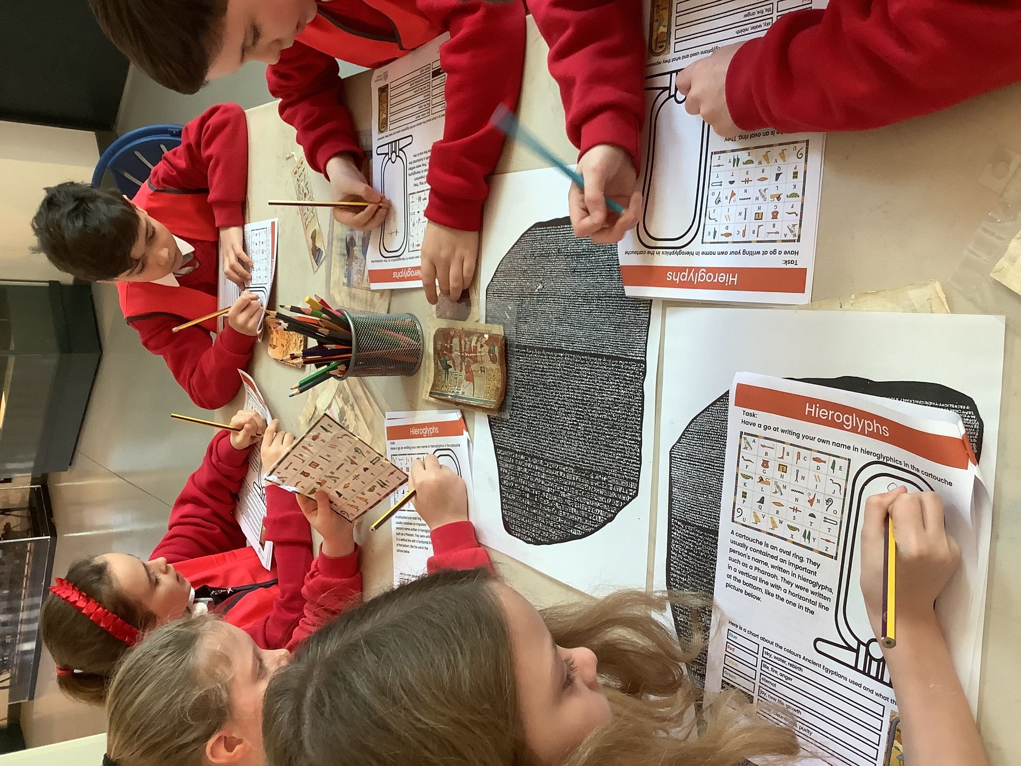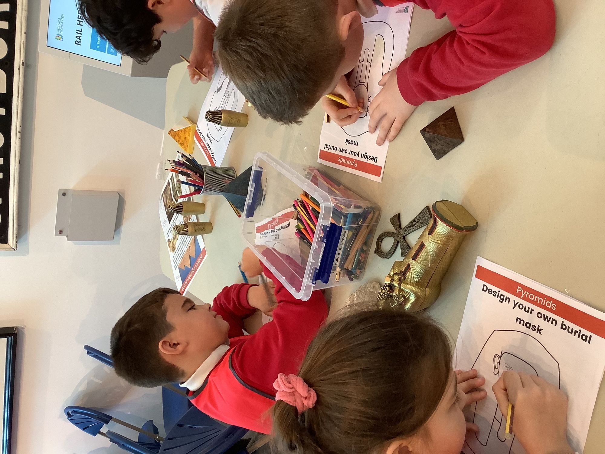 We attended two workshops at the museum. The first one involved carrying out a carousel of activities. We were able to design our own Egyptian Gods, write our names in hieroglyphics, study some Egyptian artefacts and create our own death mask. In the afternoon, we attended our second workshop where we learnt about the Egyptian art of mummification. We were then able to mummify a banana which we brought home and will unwrap in 40 days time. We all really enjoyed the trip.