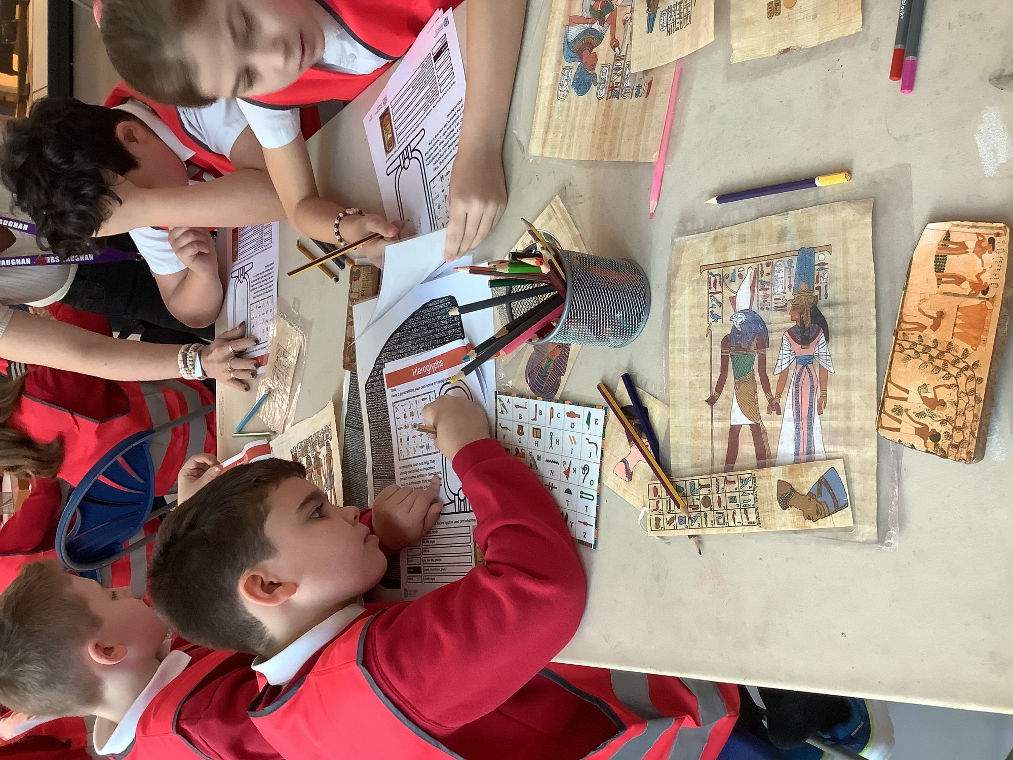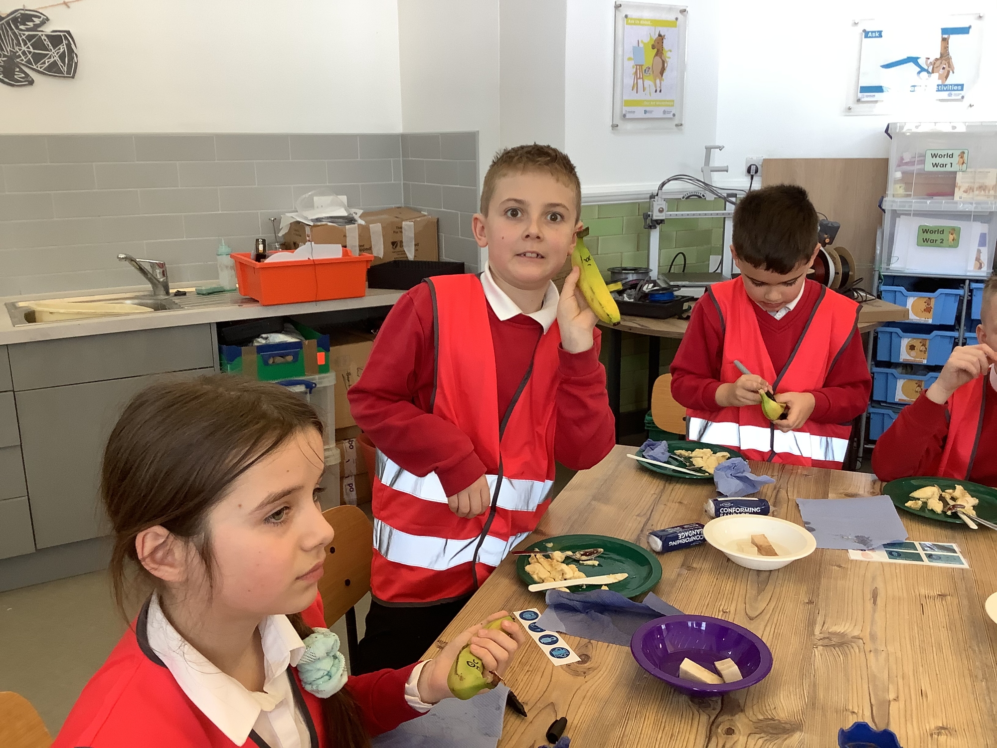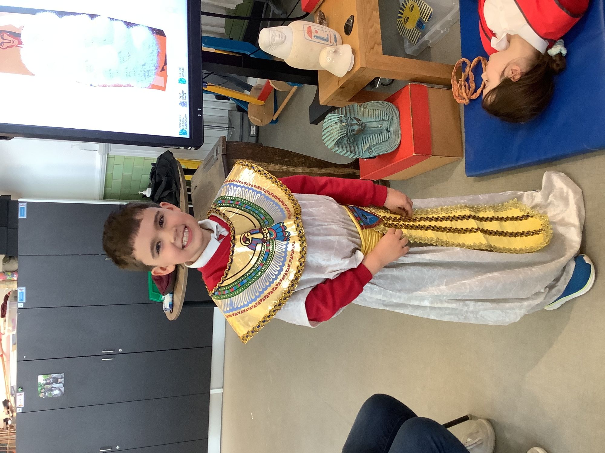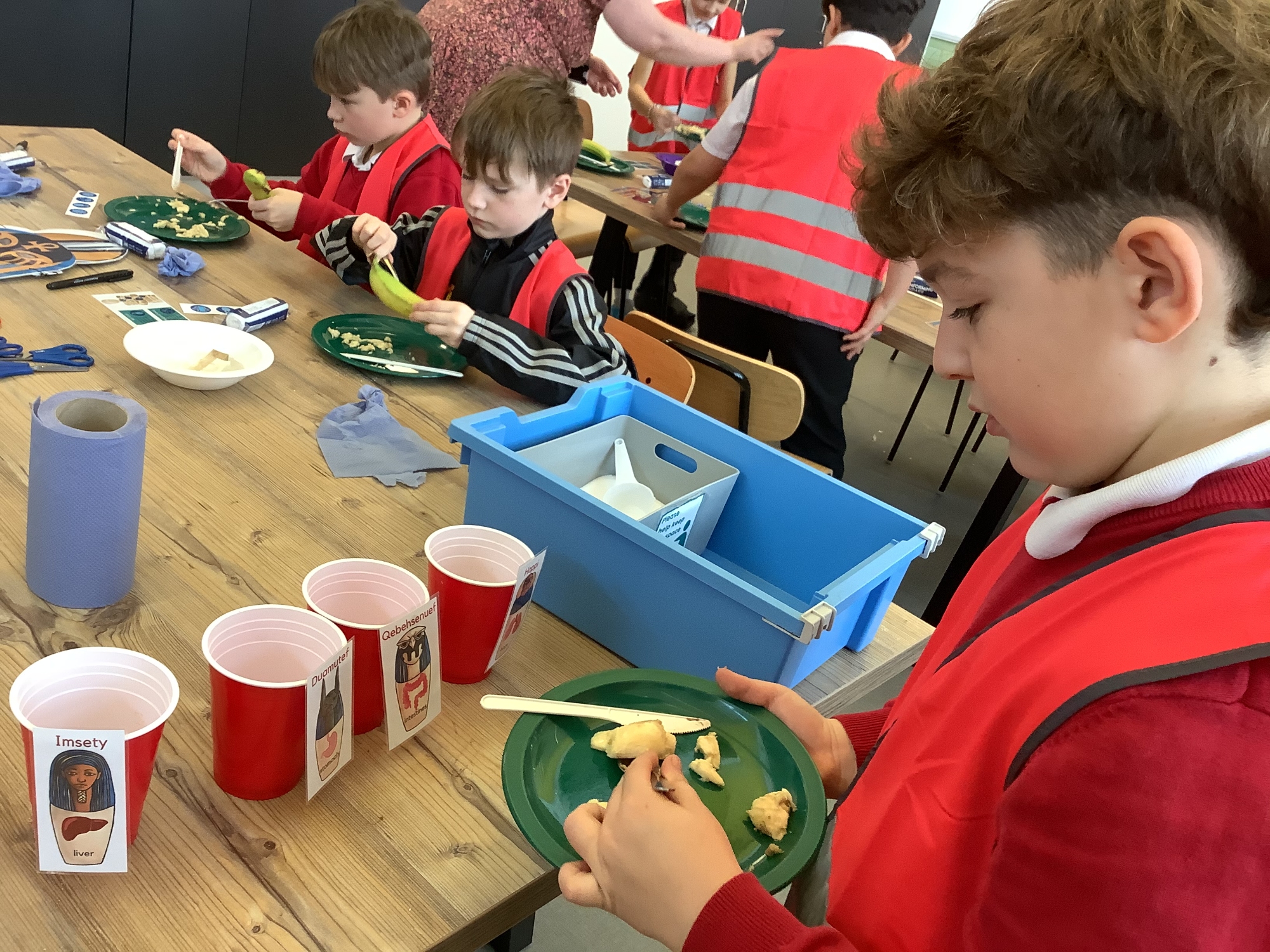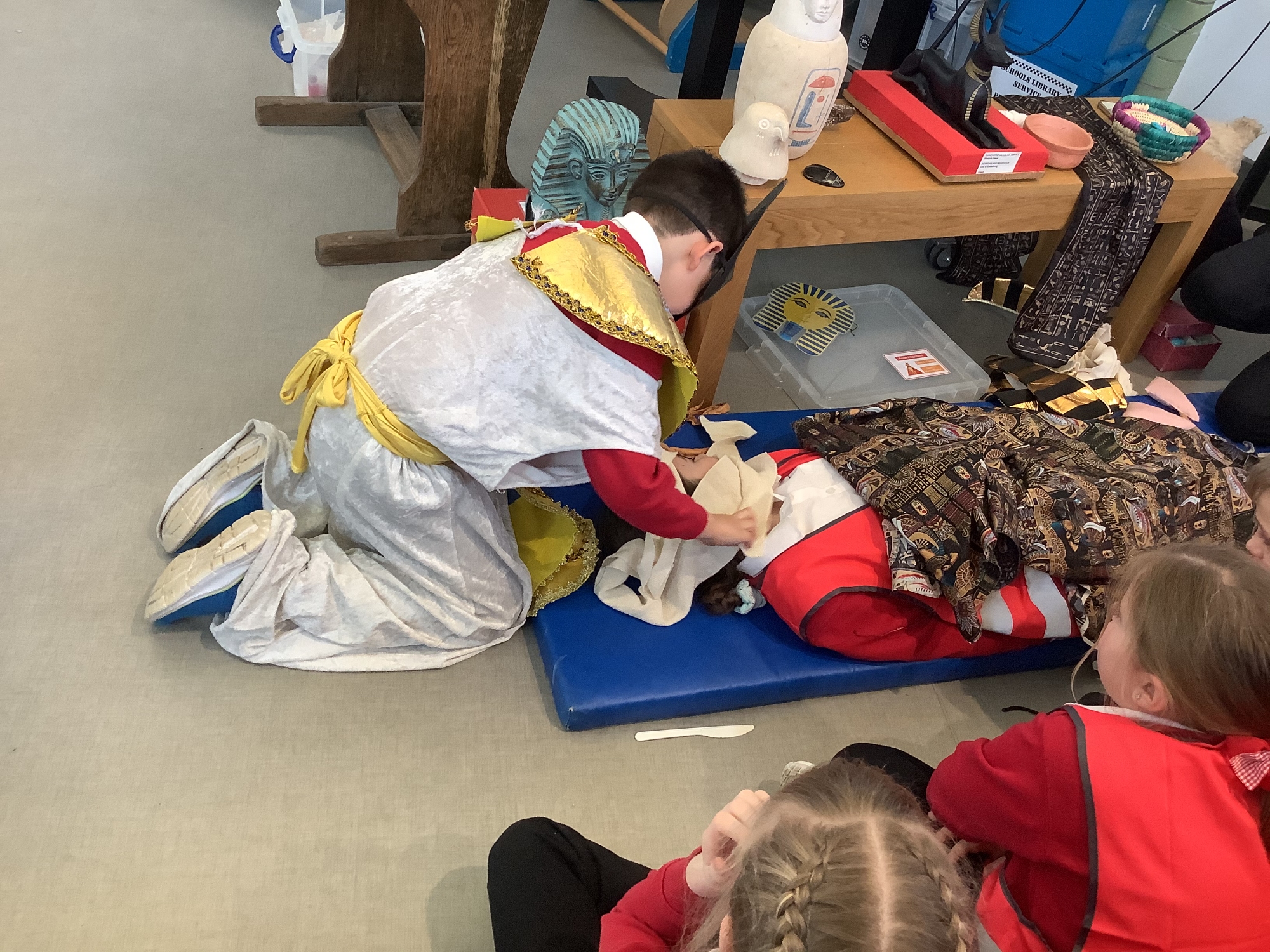 We attended two workshops at the museum. The first one involved carrying out a carousel of activities. We were able to design our own Egyptian Gods, write our names in hieroglyphics, study some Egyptian artefacts and create our own death mask. In the afternoon, we attended our second workshop where we learnt about the Egyptian art of mummification. We were then able to mummify a banana which we brought home and will unwrap in 40 days time. We all really enjoyed the trip.