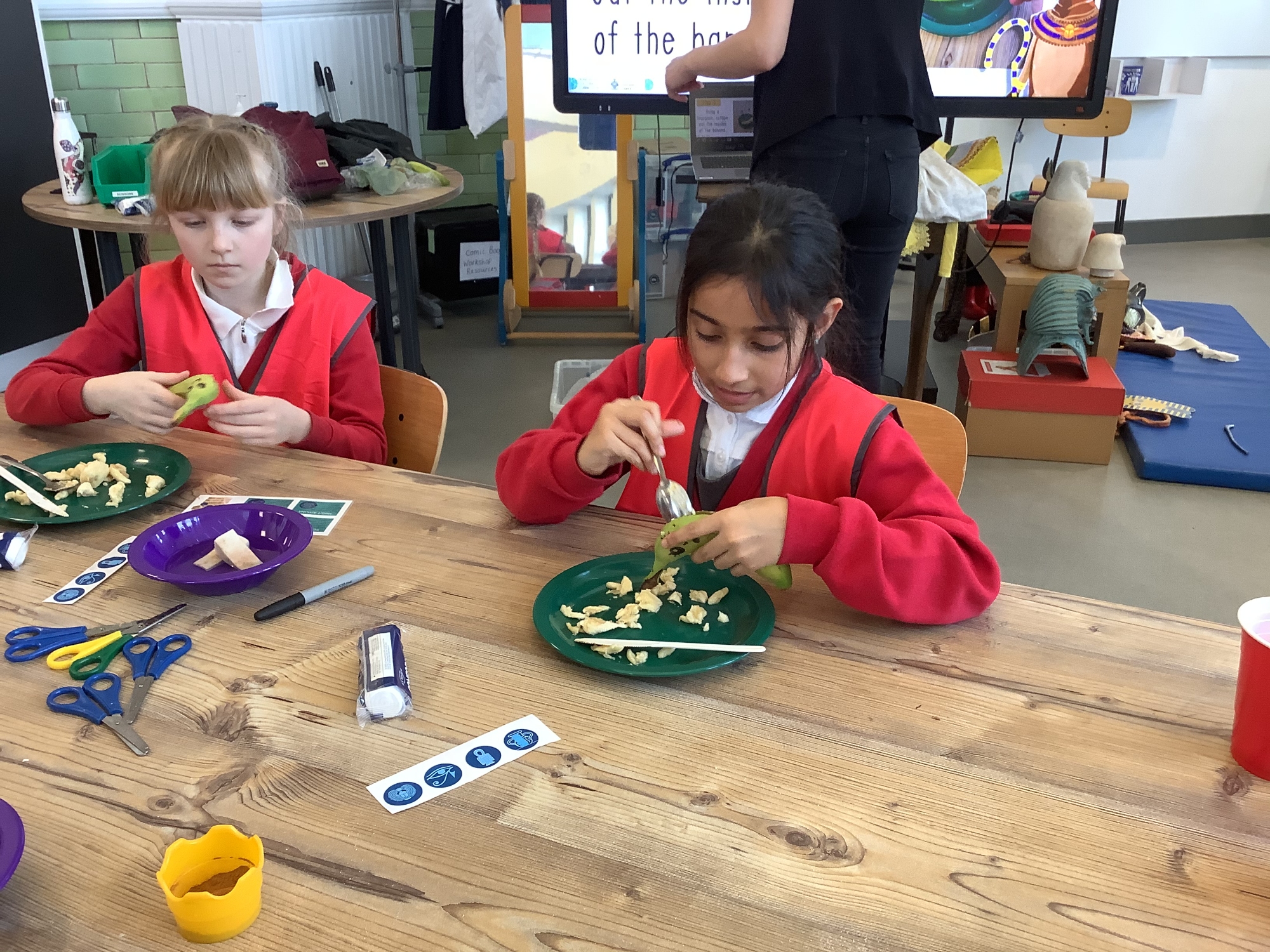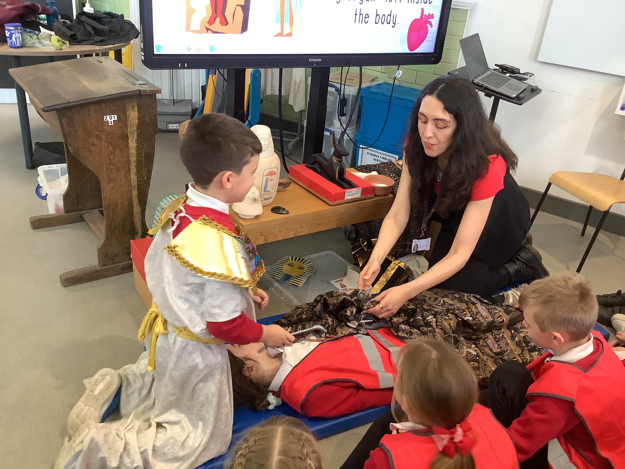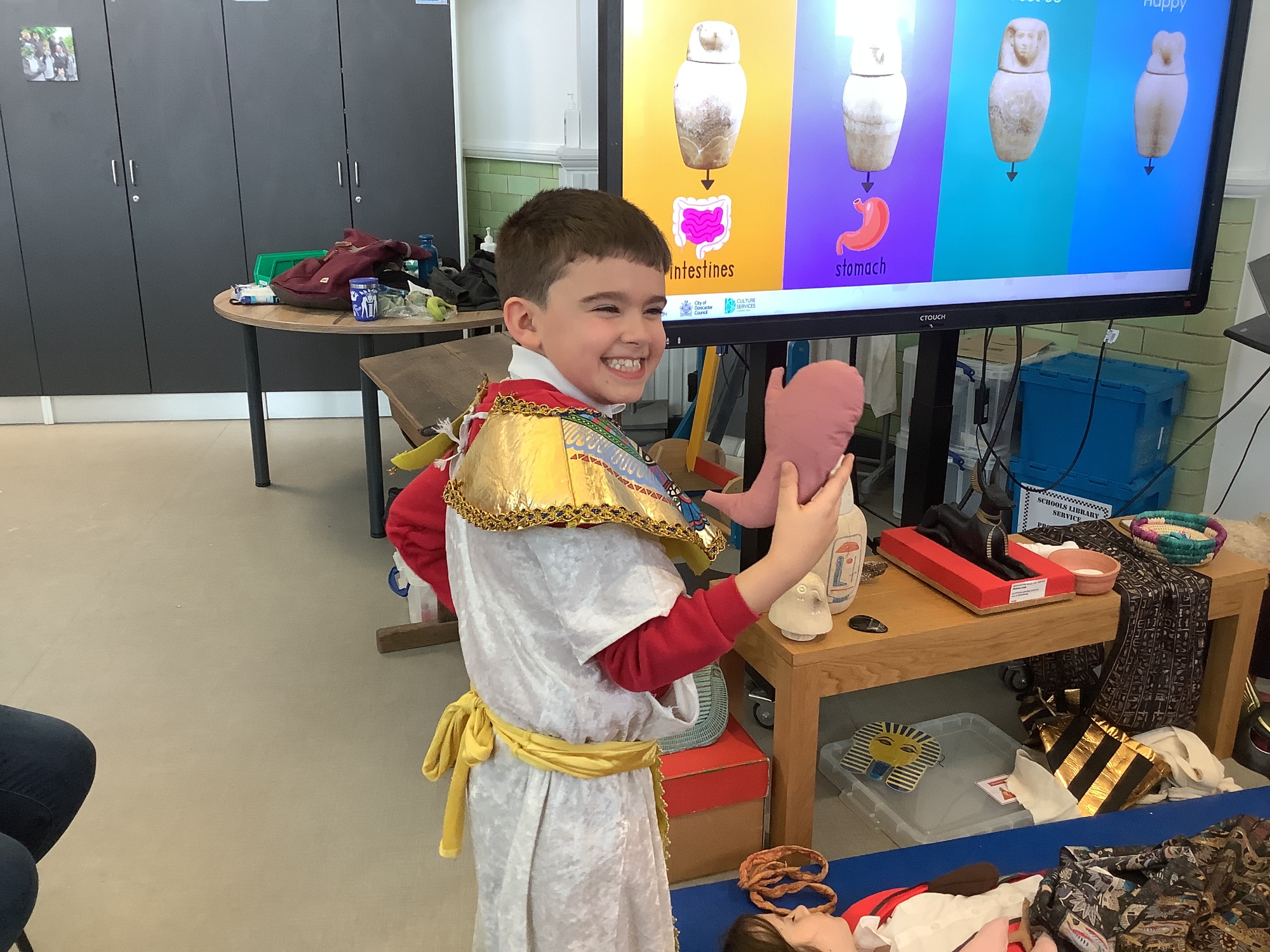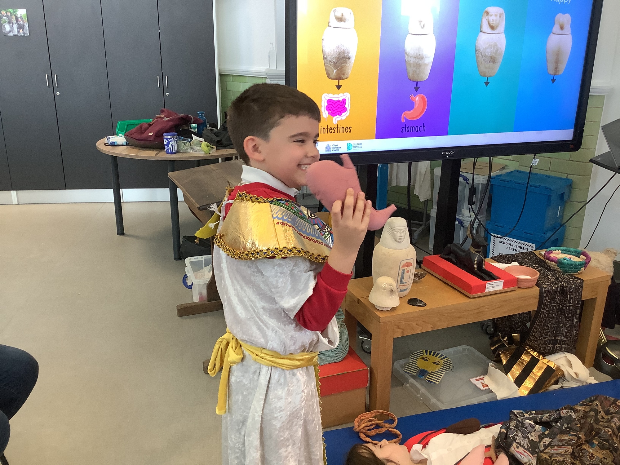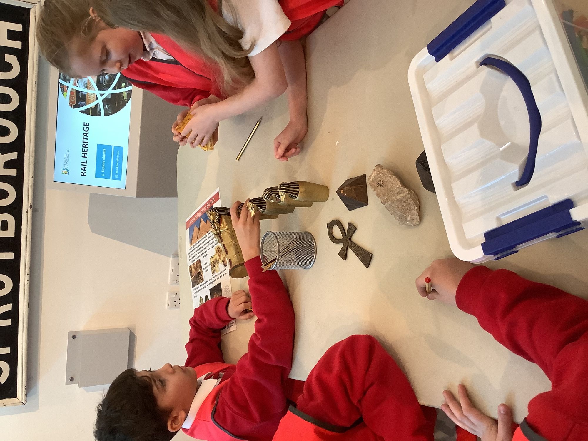 We attended two workshops at the museum. The first one involved carrying out a carousel of activities. We were able to design our own Egyptian Gods, write our names in hieroglyphics, study some Egyptian artefacts and create our own death mask. In the afternoon, we attended our second workshop where we learnt about the Egyptian art of mummification. We were then able to mummify a banana which we brought home and will unwrap in 40 days time. We all really enjoyed the trip.