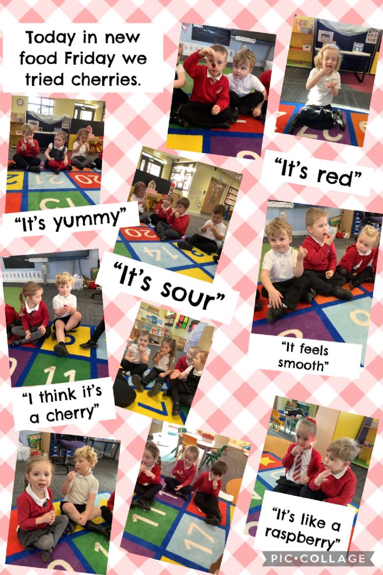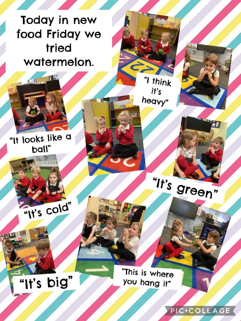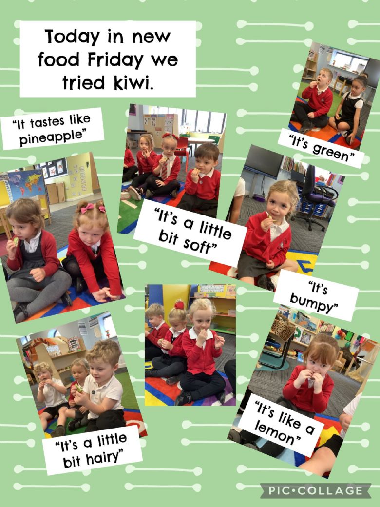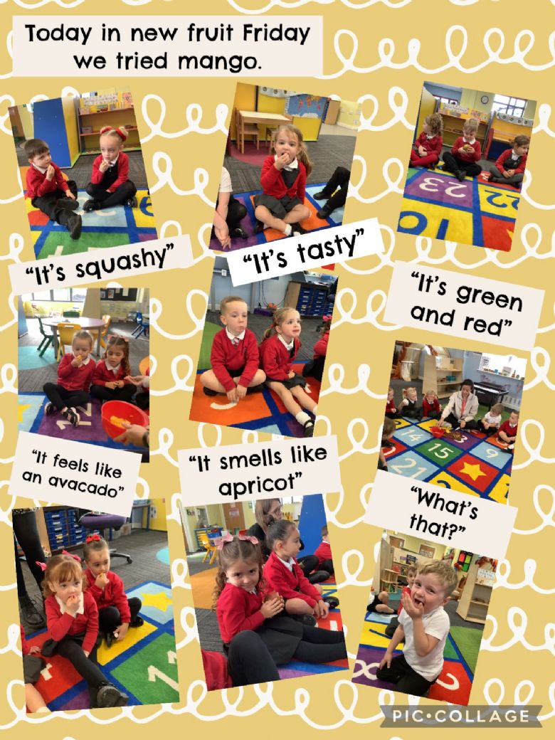 On Friday we enjoy exploring and tasting new foods. As part of this we are able to bring in many aspects of the curriculum. We encourage the children to talk about the smell, what they can see and feel as well as taste. We talk about where the different foods come from and look at these on the world map and where it is in relation to the UK. While preparing the food for tasting with the children we talk about part, part, whole as this introduces the concept in a practical way. We then talk about likes and dislikes and make connections to previous foods tasted.
