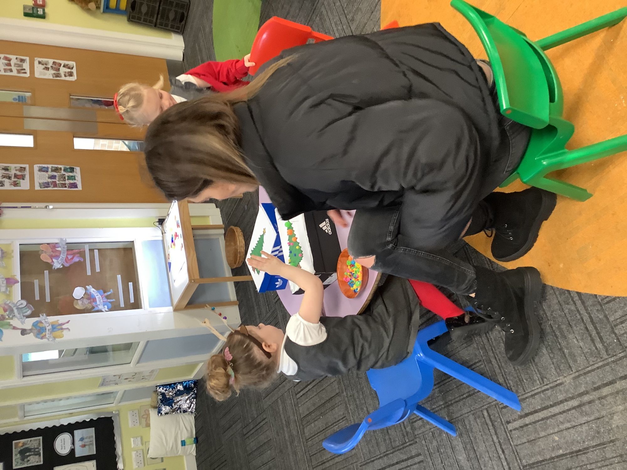 We invited our grown-ups to come and play with us. We did lots of activities together, giving our grown-ups a chance to see the fun learning we do in our class.