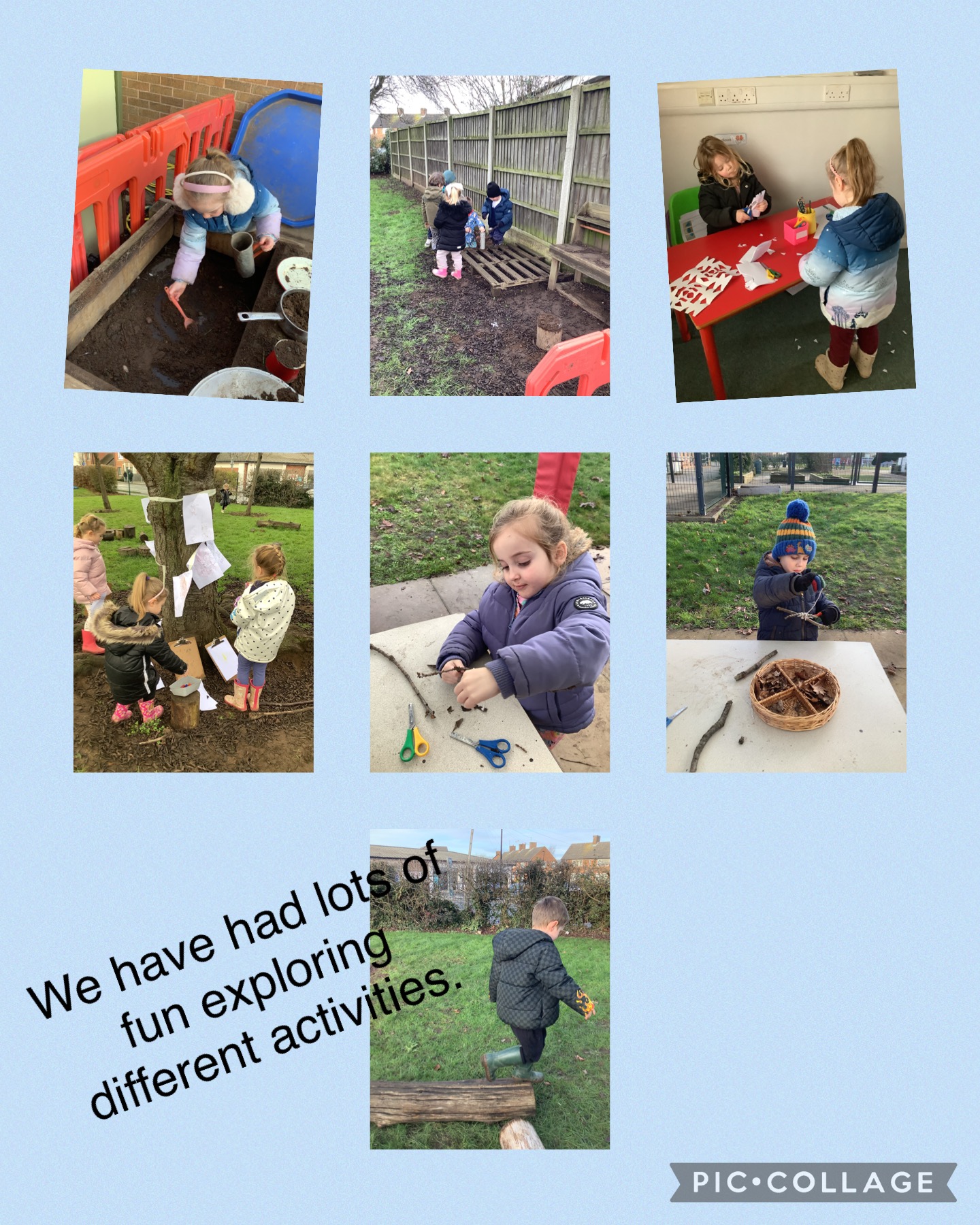 For our next explorer week we looked at the book 'Stick Man' and explored the signs of winter.  We've also been learning about animals that hibernate.