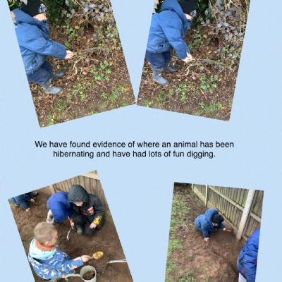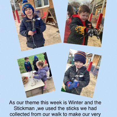 For our next explorer week we looked at the book 'Stick Man' and explored the signs of winter. We've also been learning about animals that hibernate.