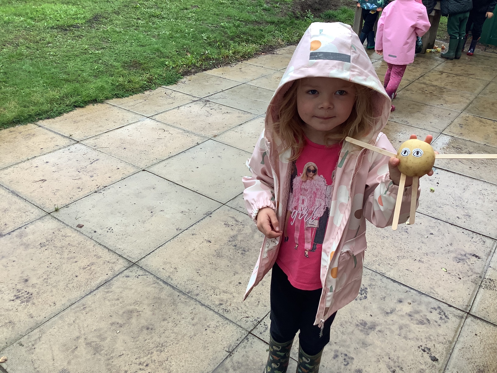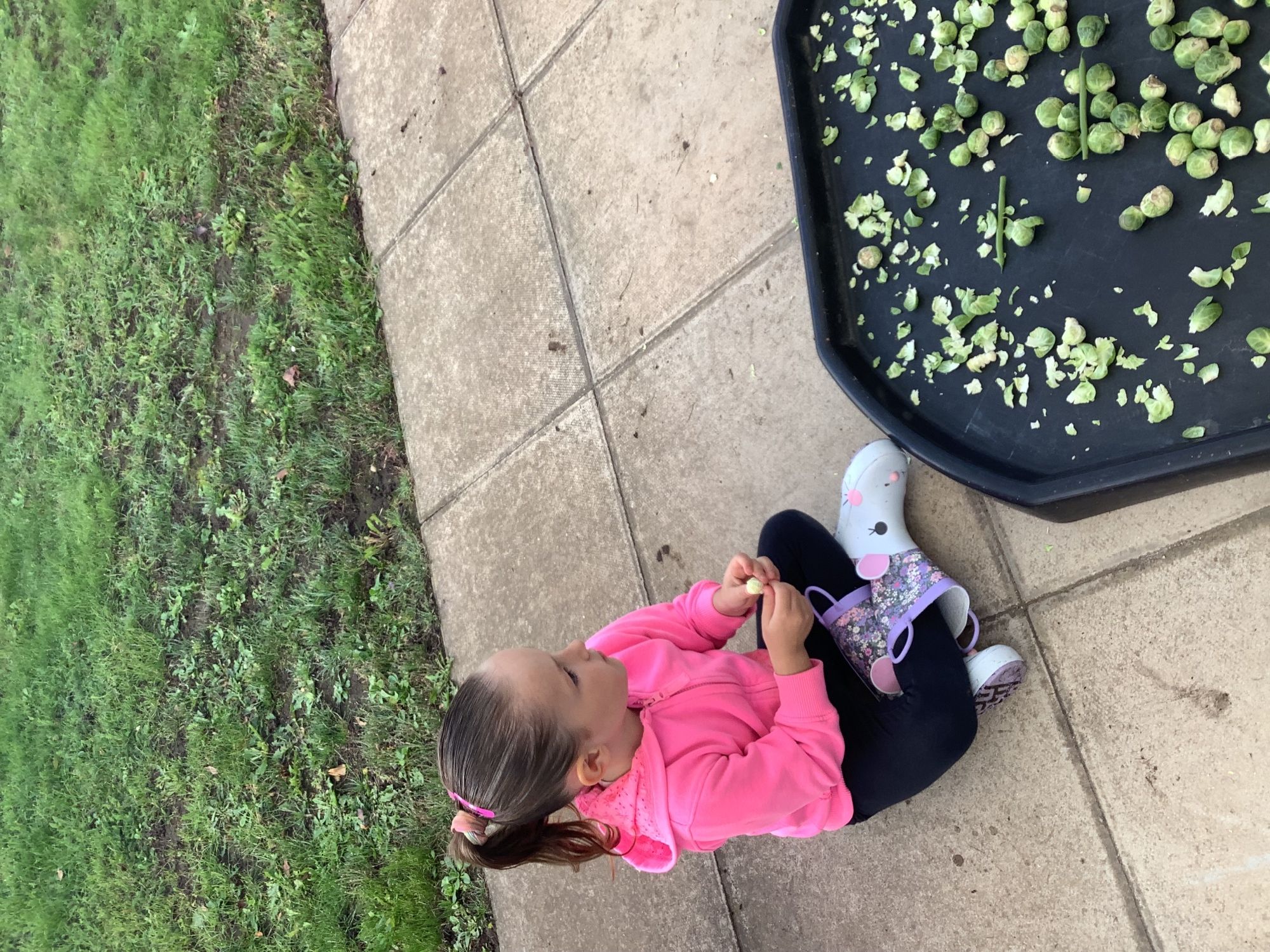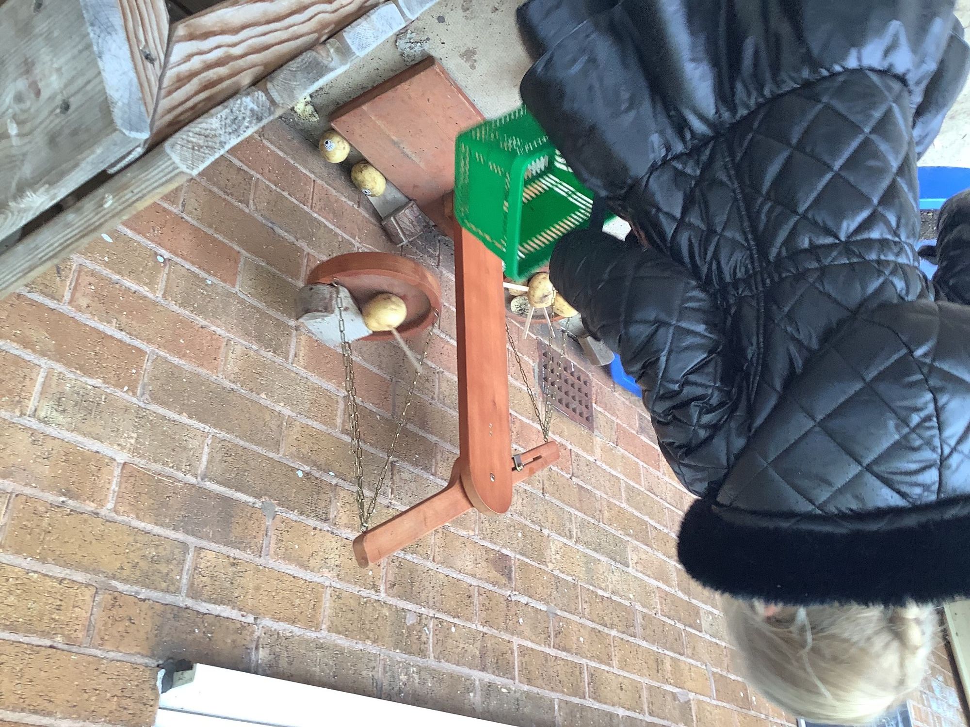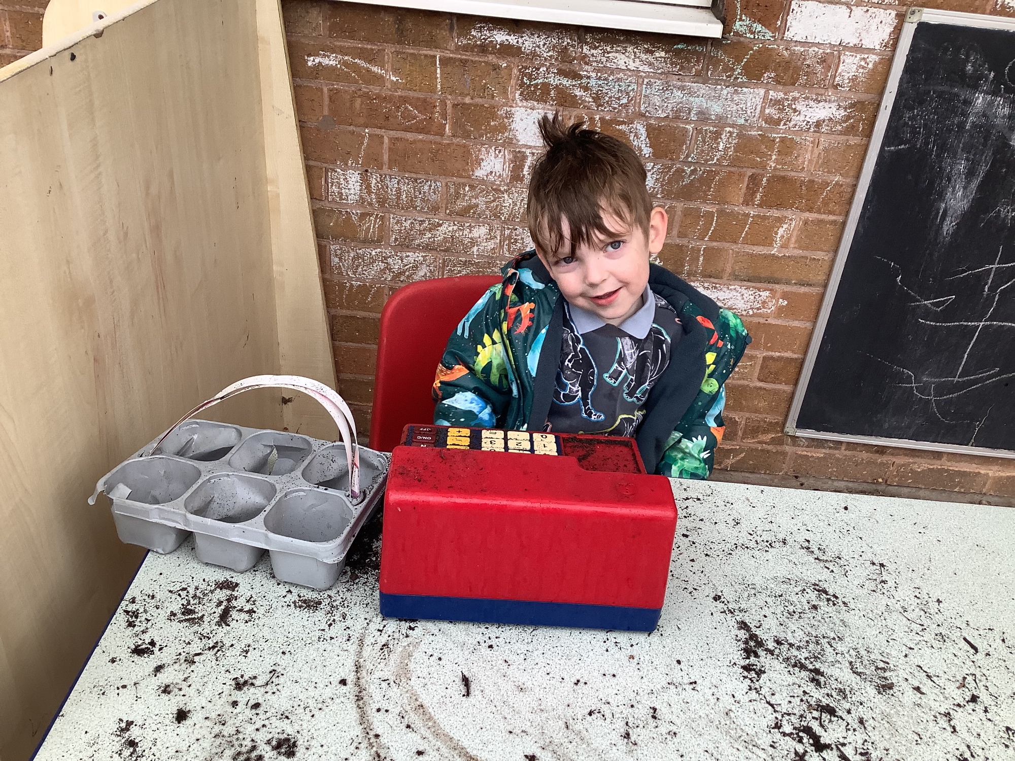 We then went outside to explore lots of activities based around the book. We harvested vegetables, weighed them to sell on our market stall, used our printing skills to create painting using fruit and vegetables, used our fine motor skills to peel sprouts, made a combine harvester out of crates, made potato people, made delicious food in the mud kitchen and enjoyed eating our fruit snacks in the outdoors. We had so much fun while so much learning was happening!