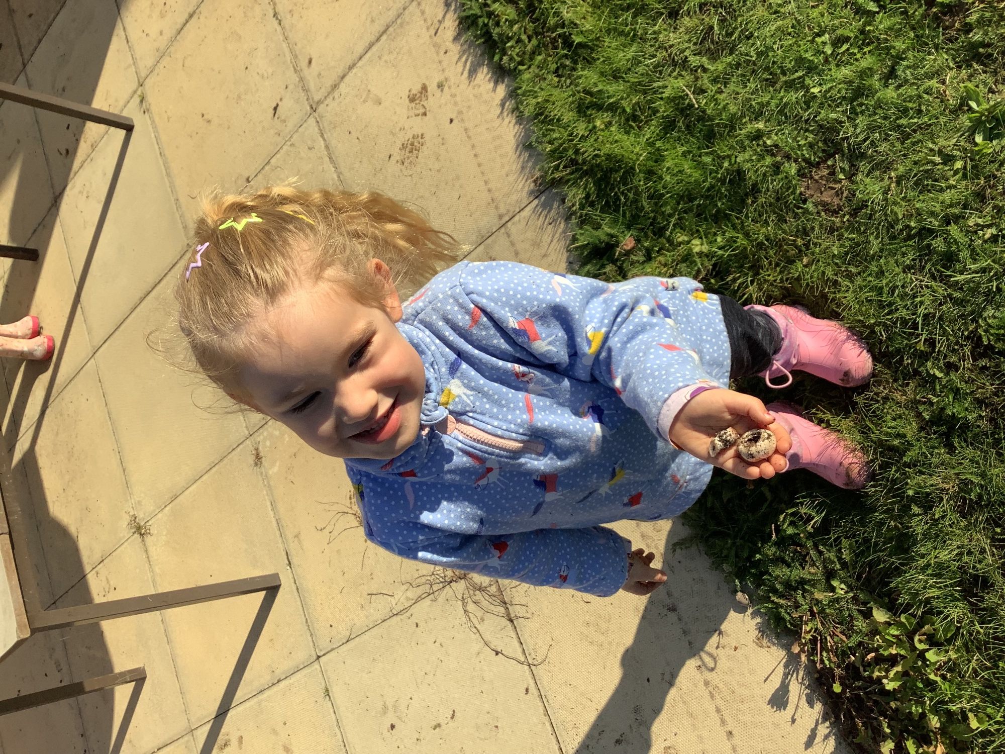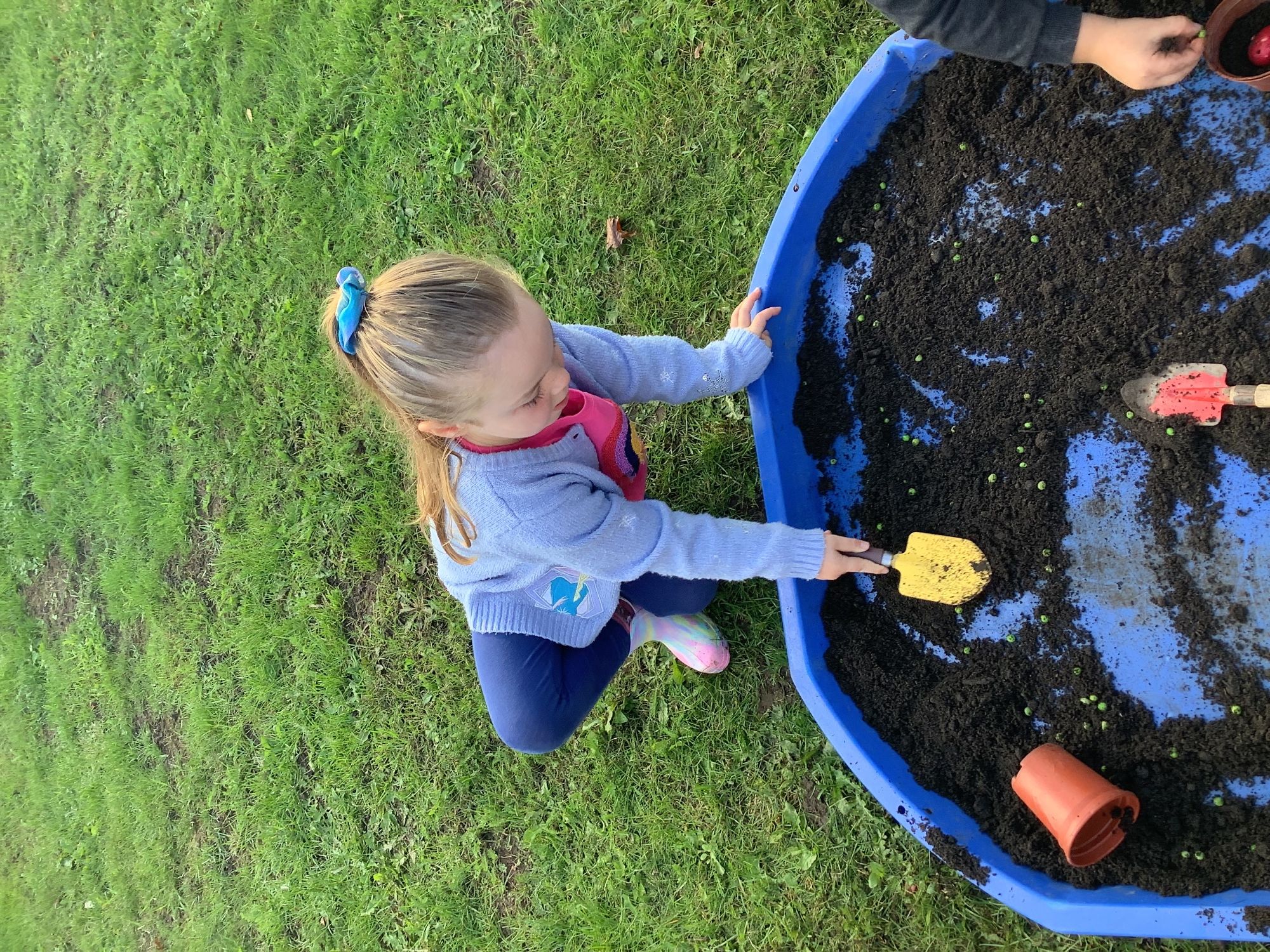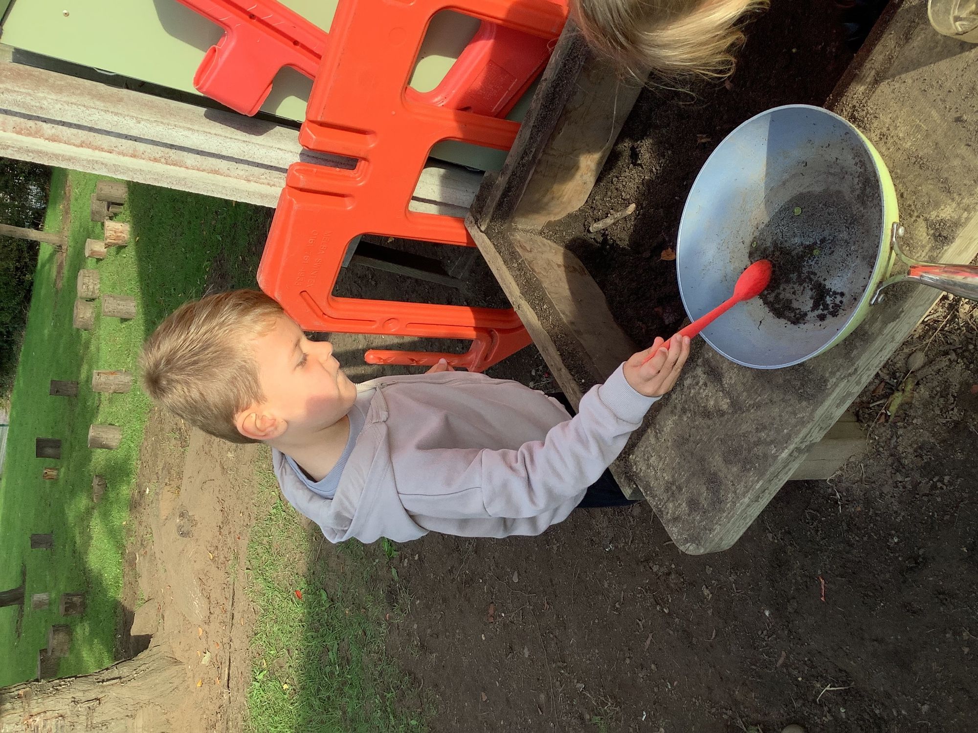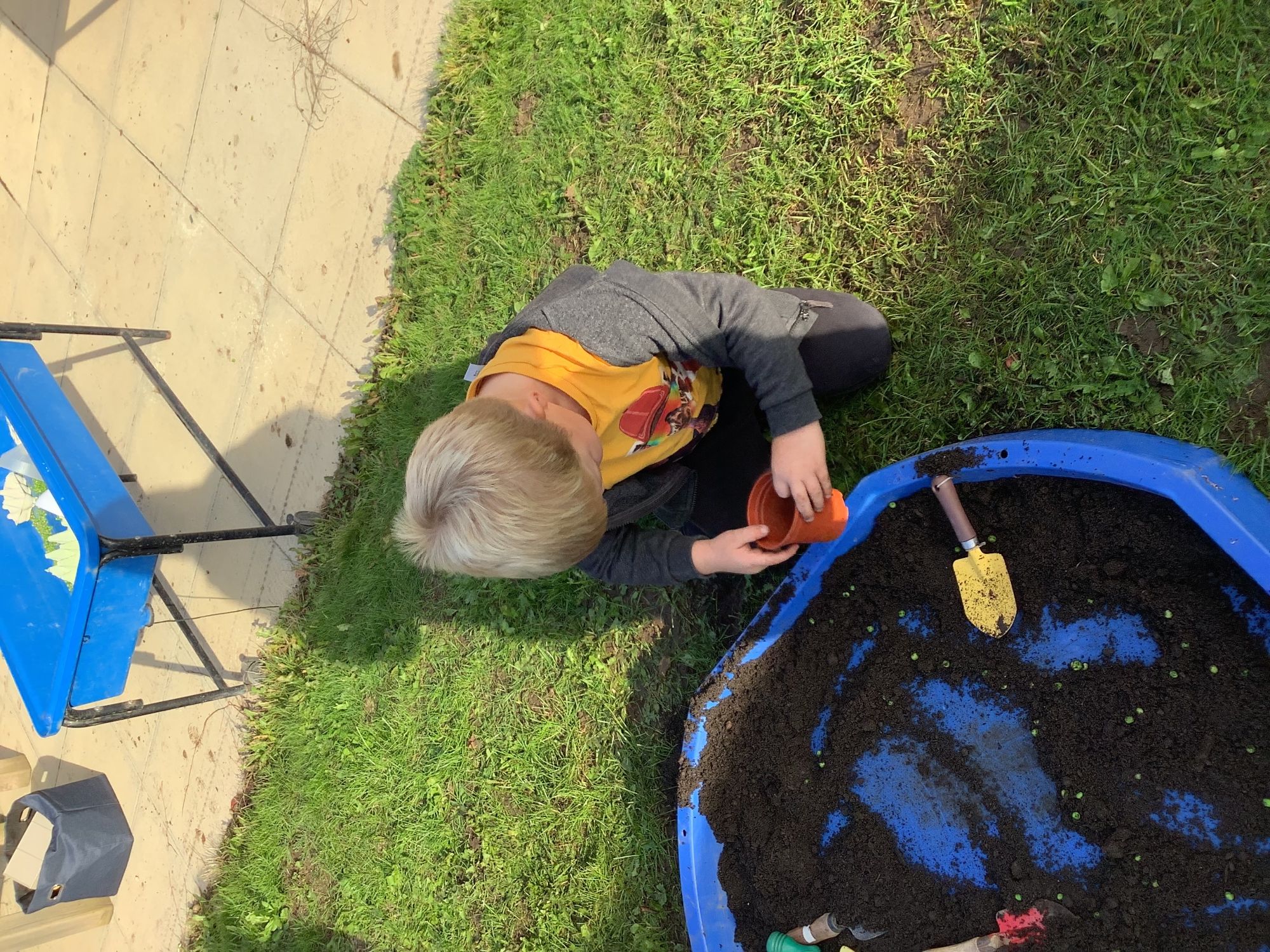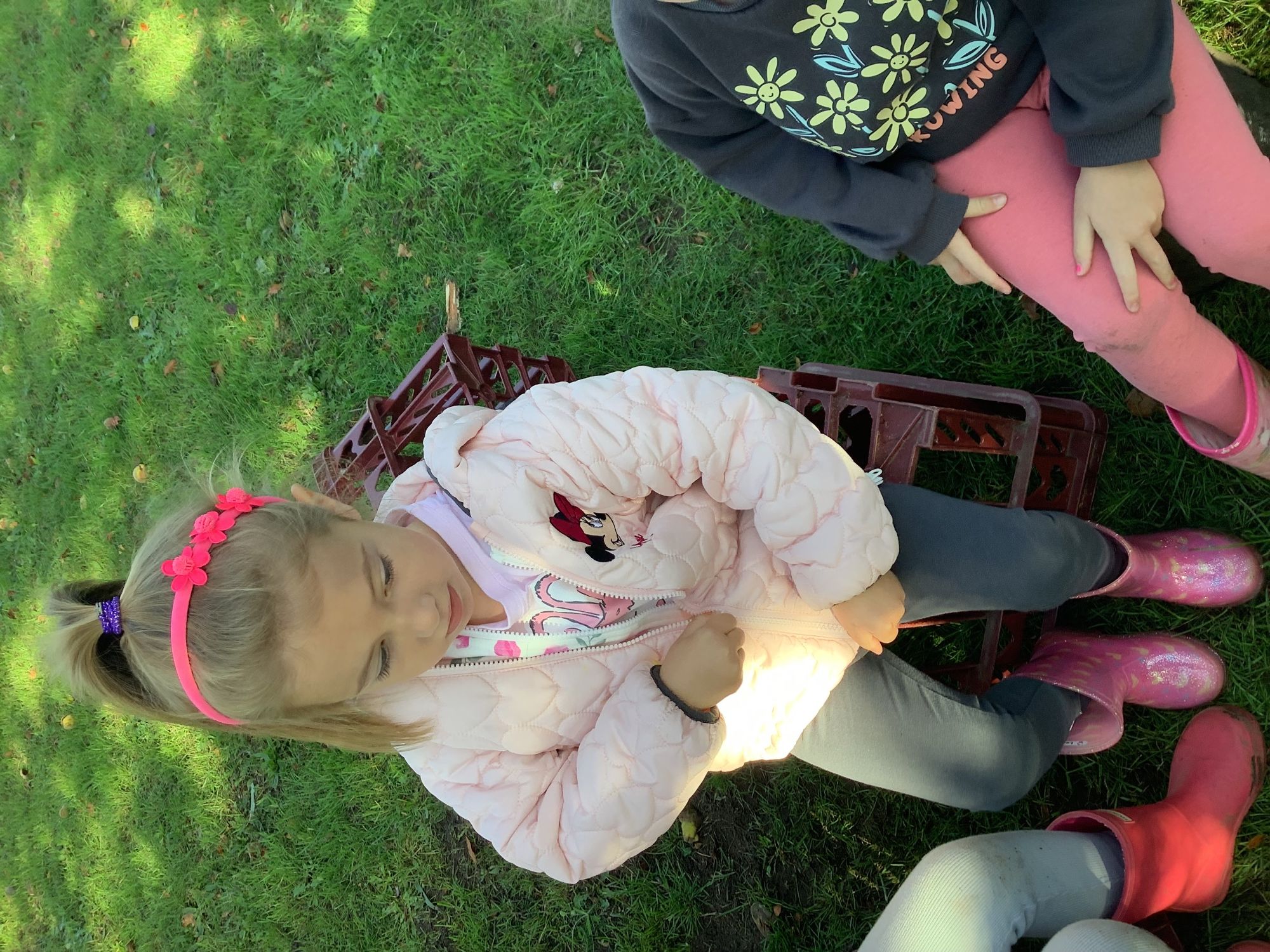 We then went outside to explore lots of activities based around the book. We harvested vegetables, weighed them to sell on our market stall, used our printing skills to create painting using fruit and vegetables, used our fine motor skills to peel sprouts, made a combine harvester out of crates, made potato people, made delicious food in the mud kitchen and enjoyed eating our fruit snacks in the outdoors. We had so much fun while so much learning was happening!