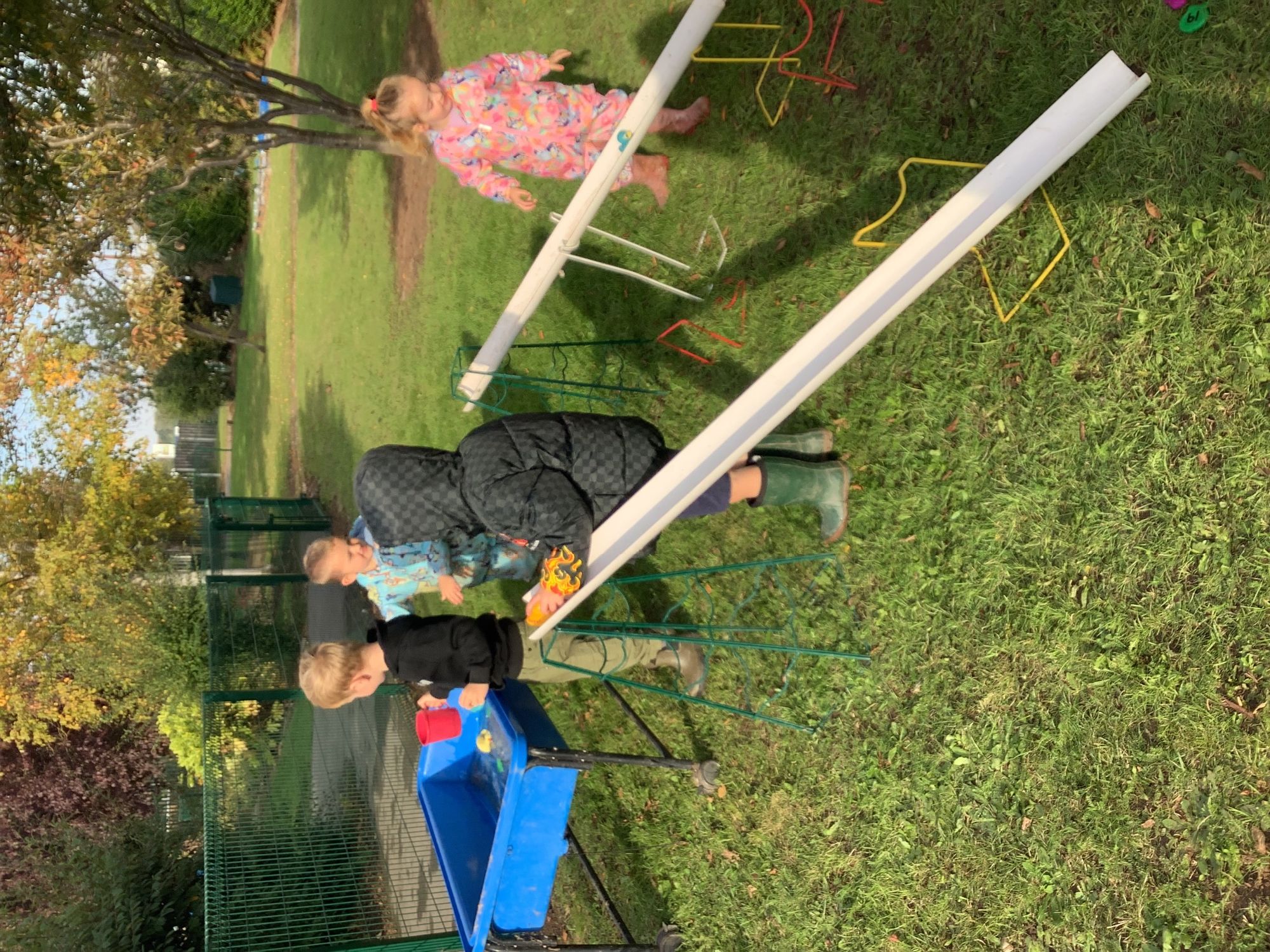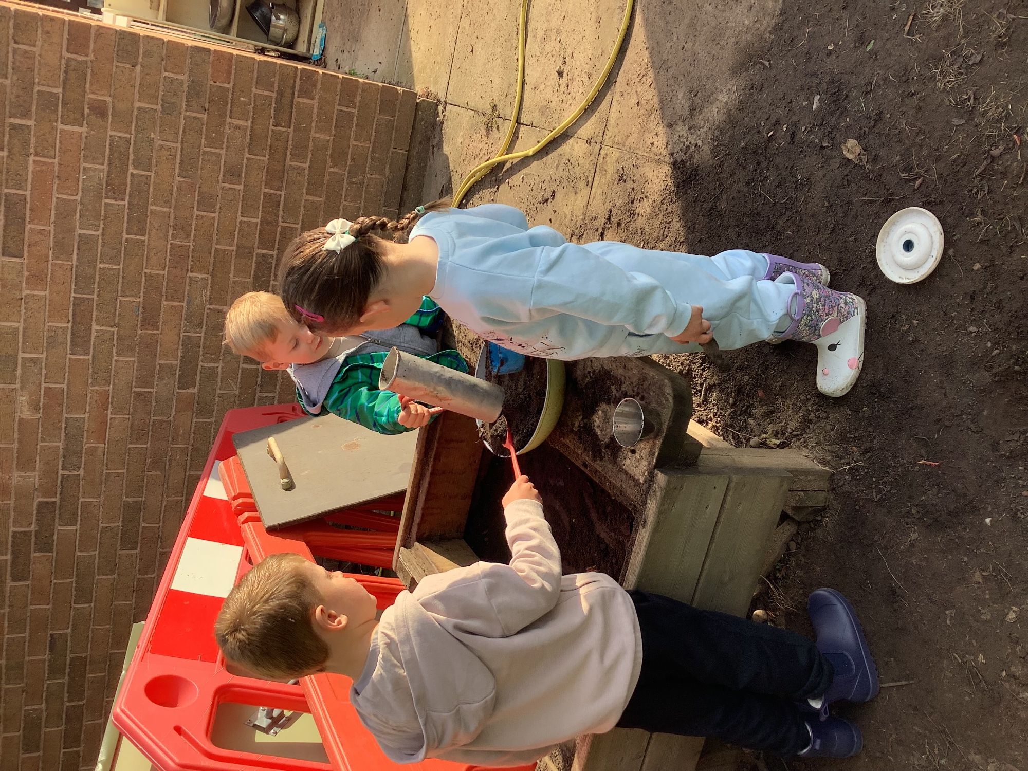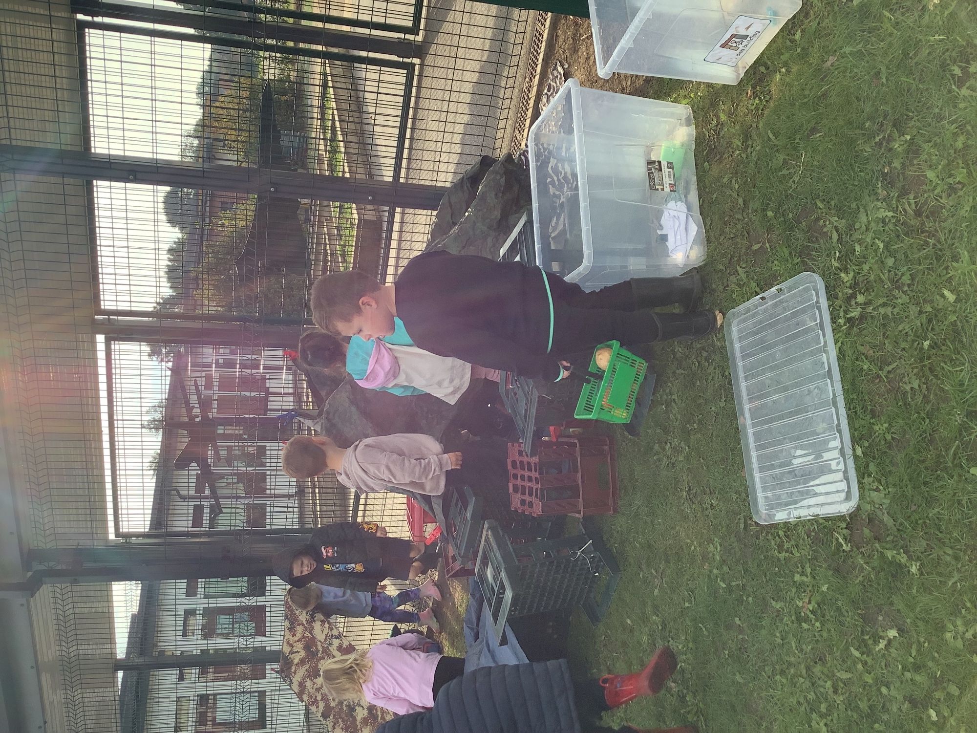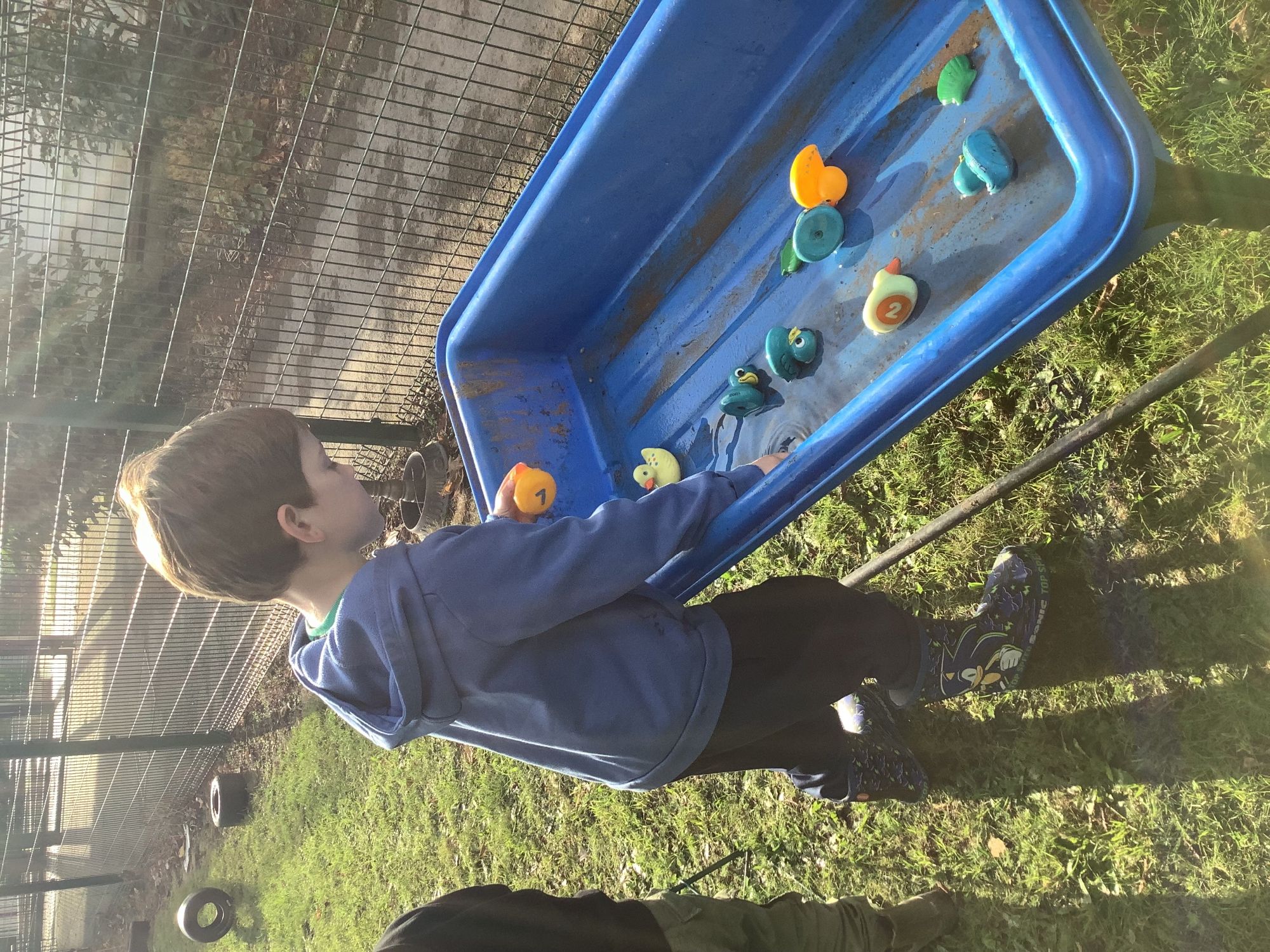 We used our team-work skills to build a slide for the ducks and then put them in number order. We worked together to make a super den and found lots of worms while we worked!