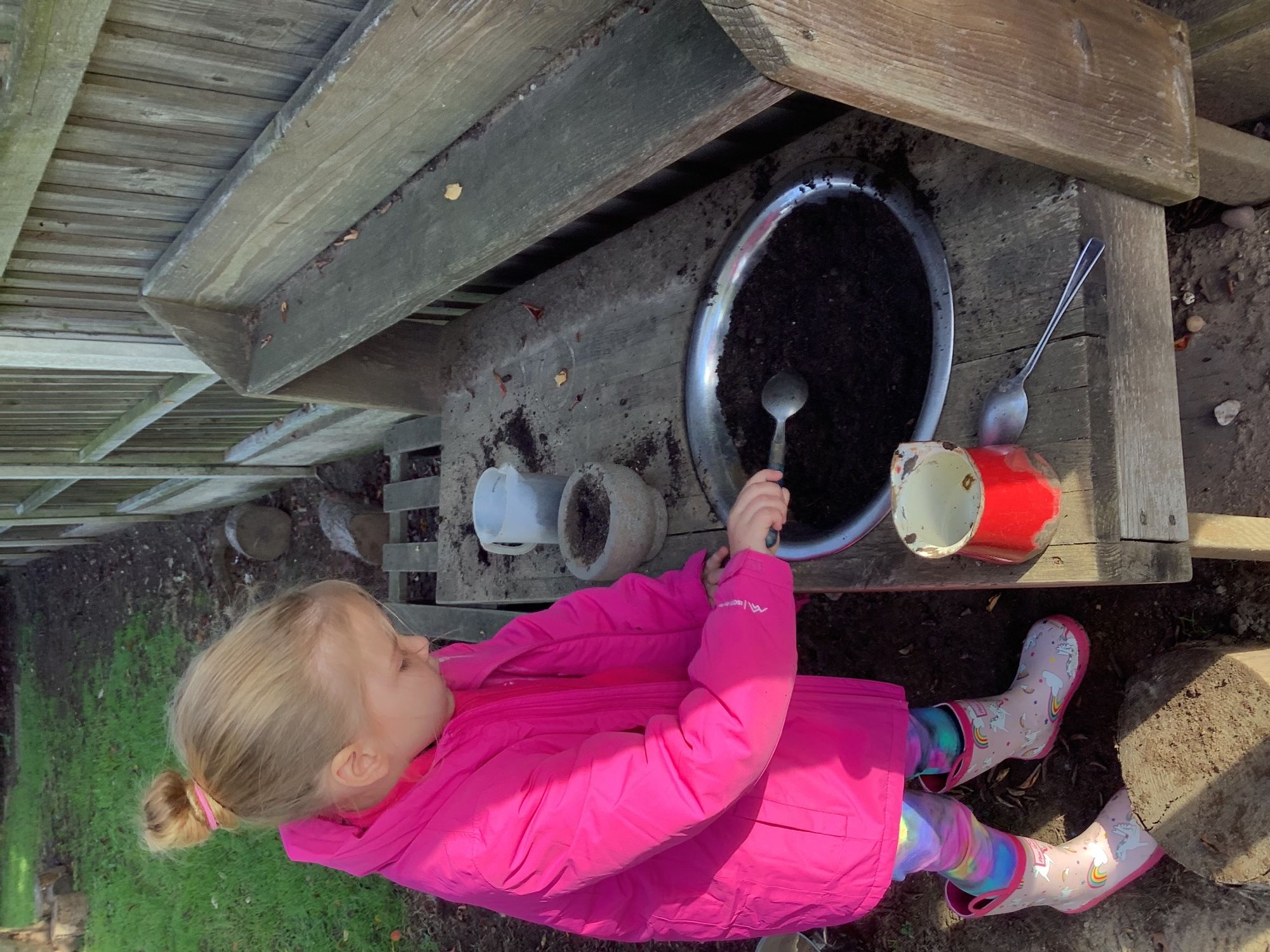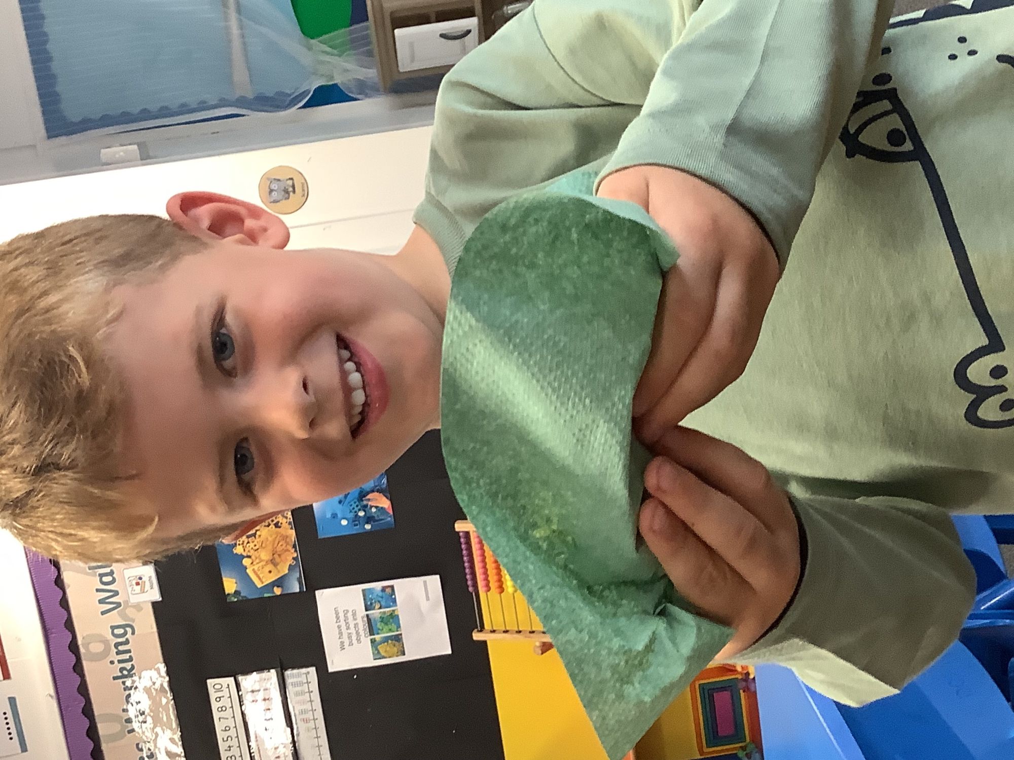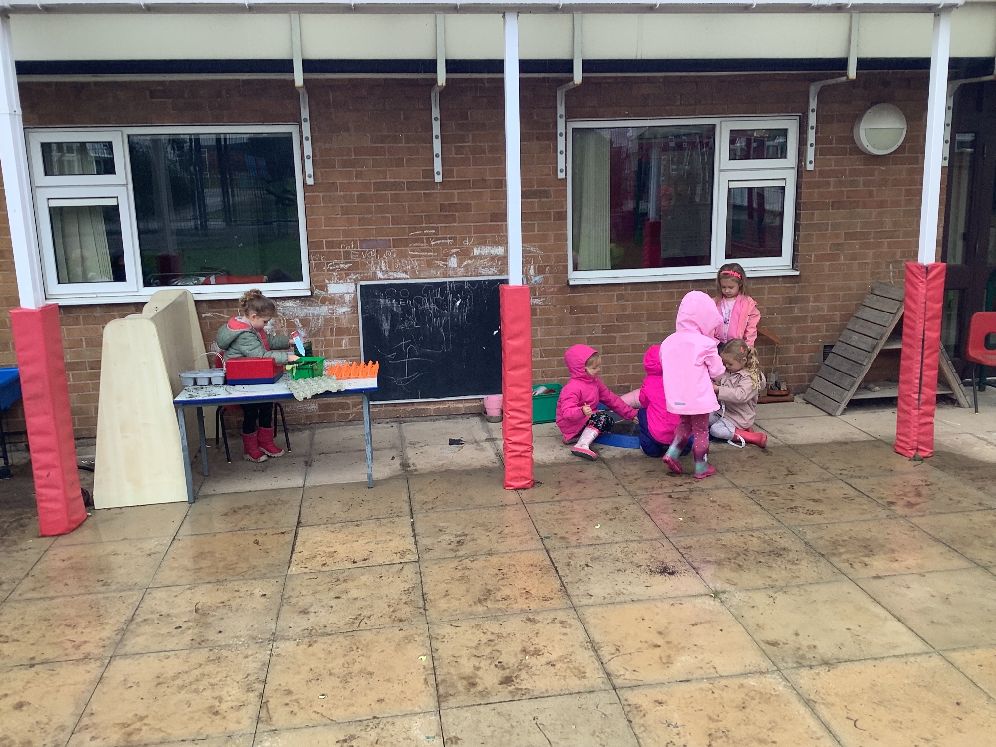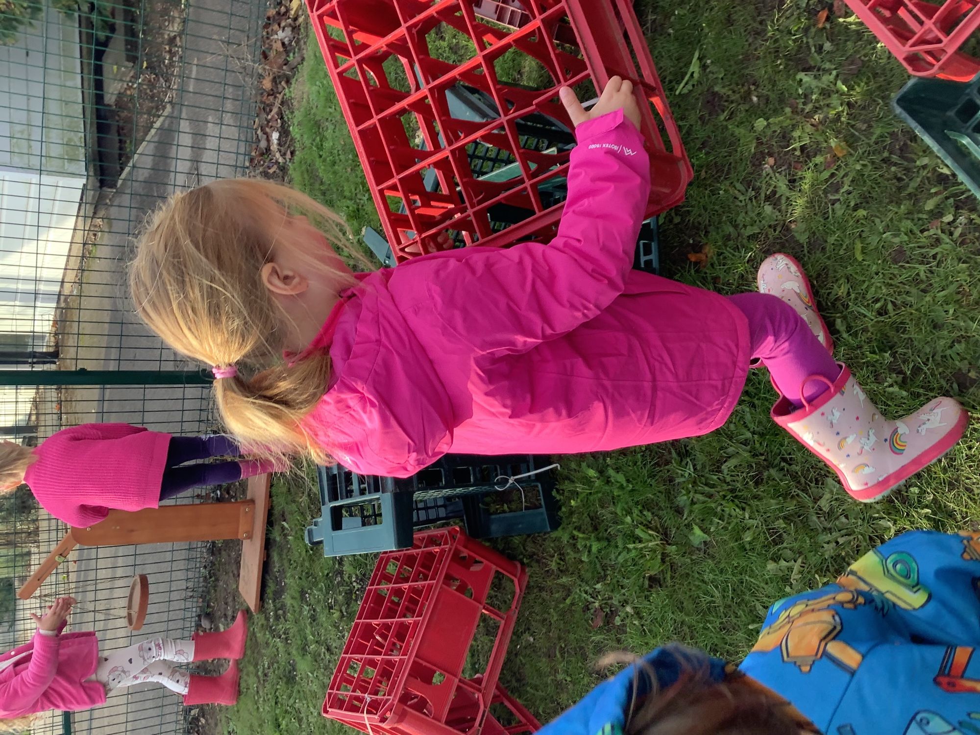 We used our team-work skills to build a slide for the ducks and then put them in number order. We worked together to make a super den and found lots of worms while we worked!