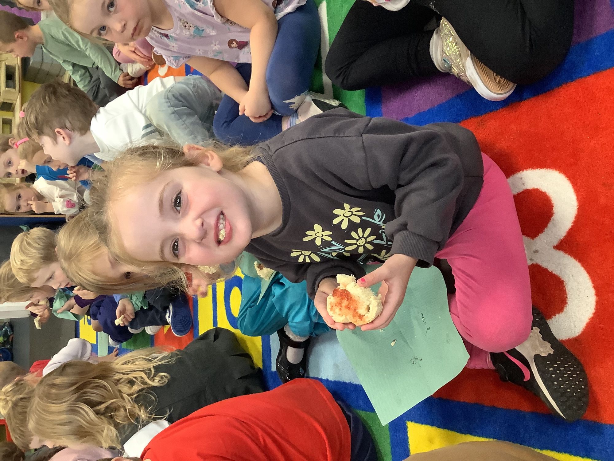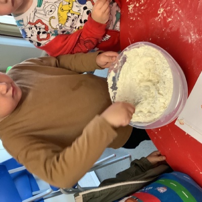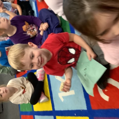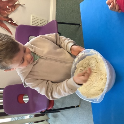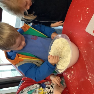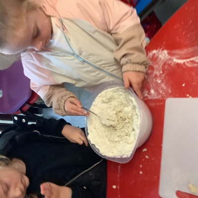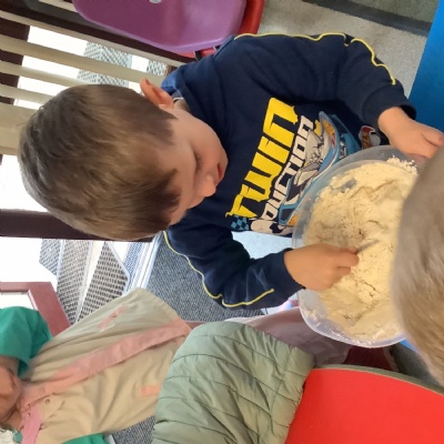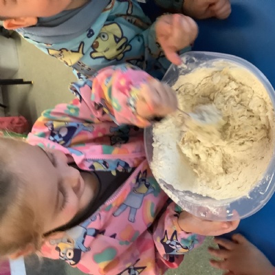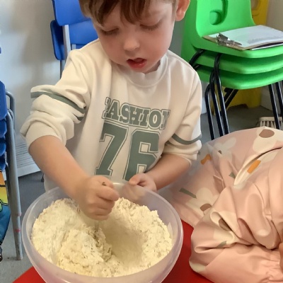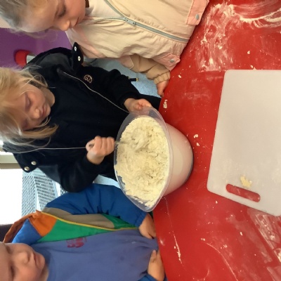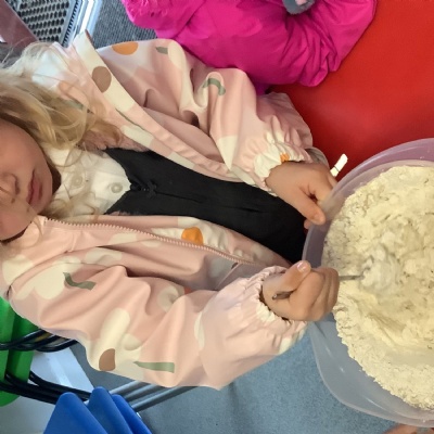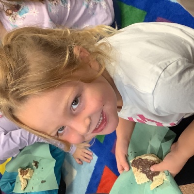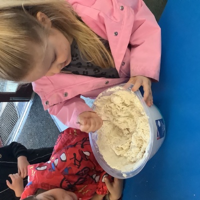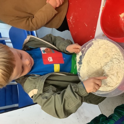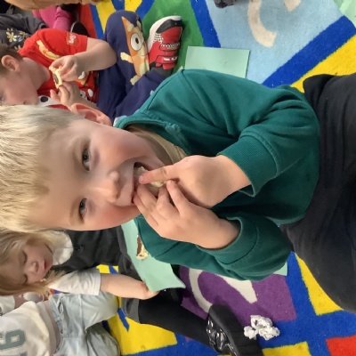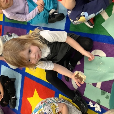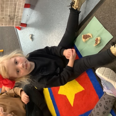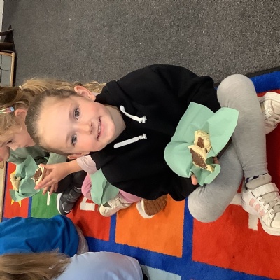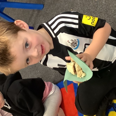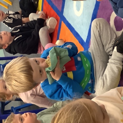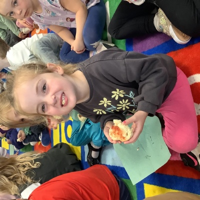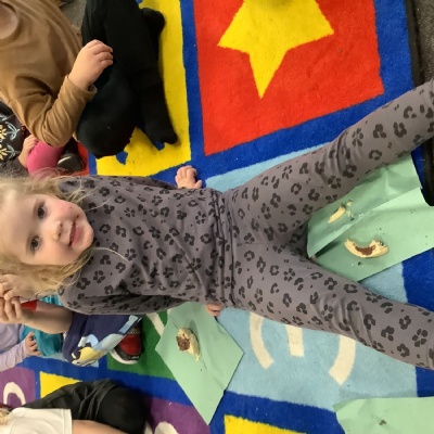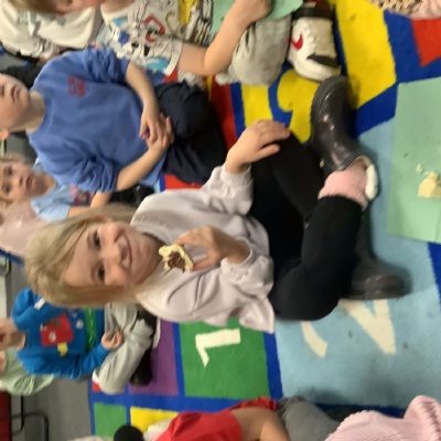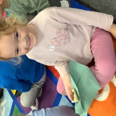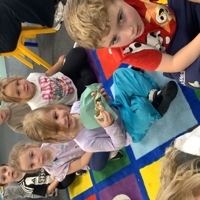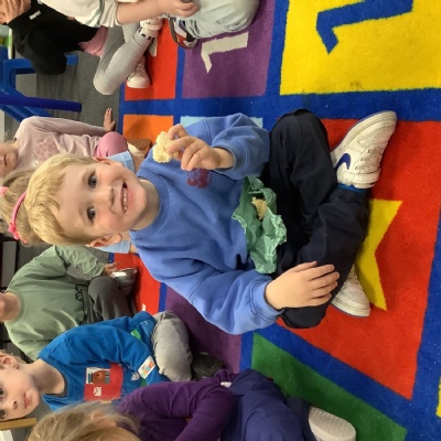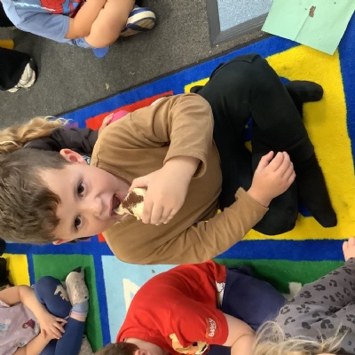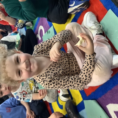 We read the book 'The Little Red Hen' and learnt about the process of harvesting wheat, taking it to the mill to grind into flour and then using the flour to make bread. We had a go at making our own bread, then we had a taste! It was yummy!! We chose our own topping from a choice of butter, jam or chocolate spread, and it's safe to say the chocolate spread was a firm favourite.