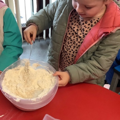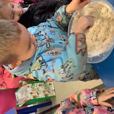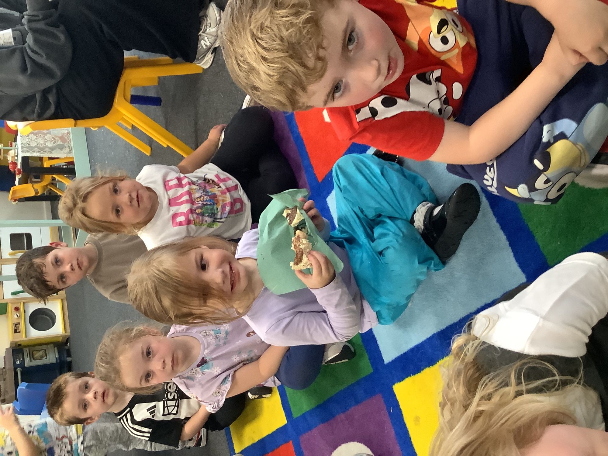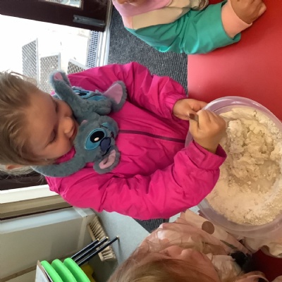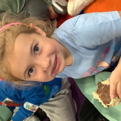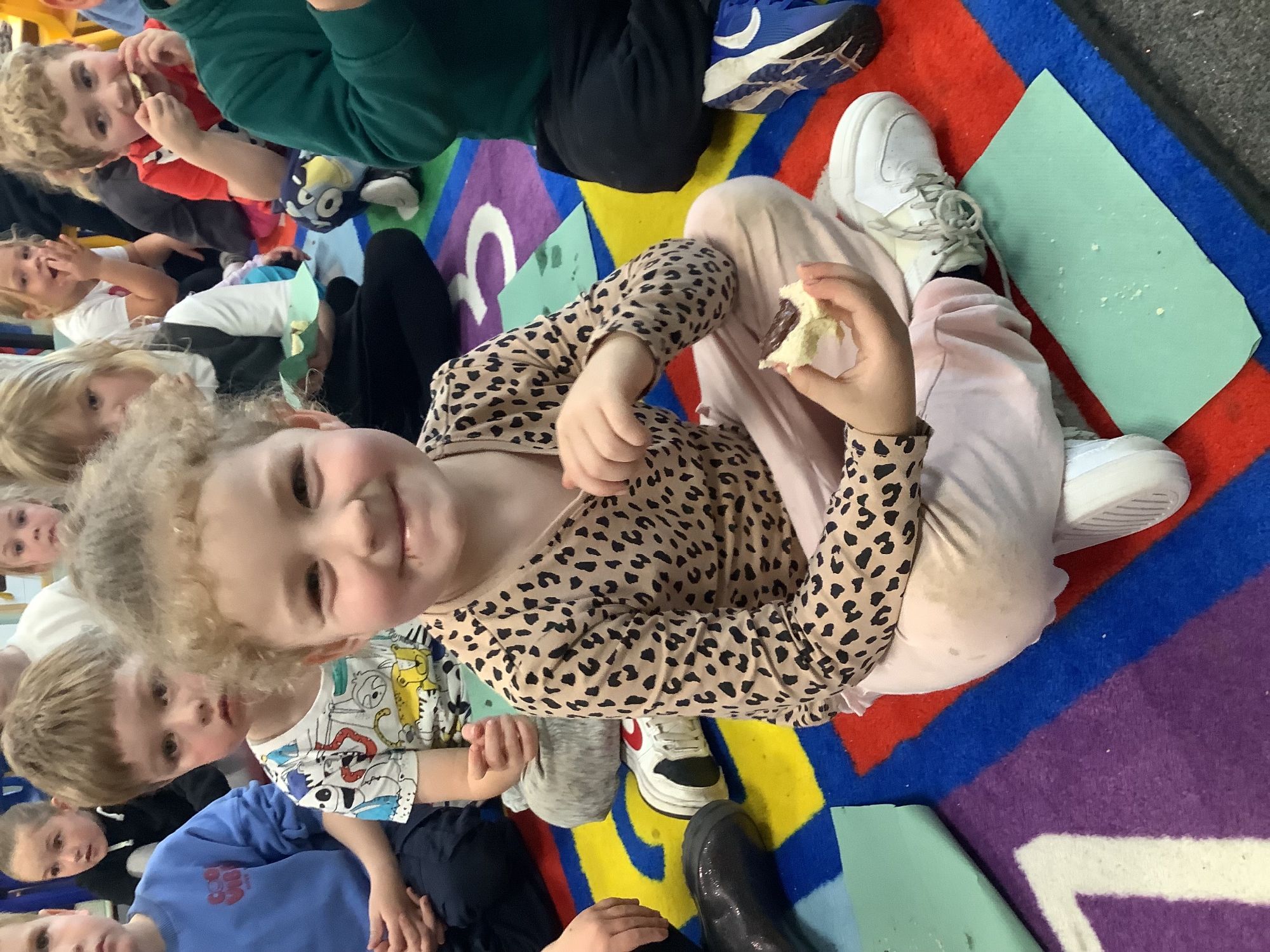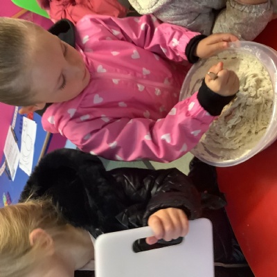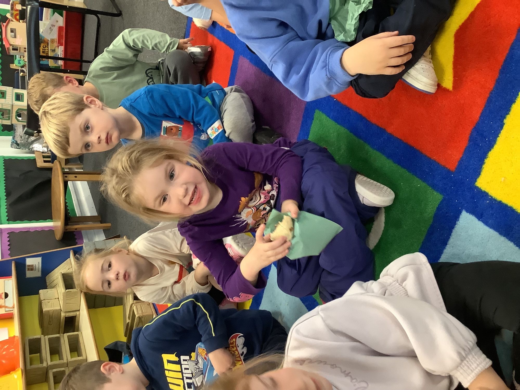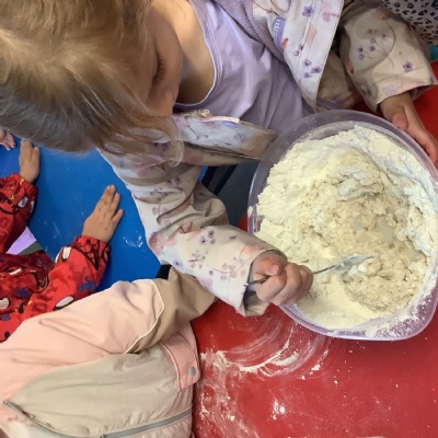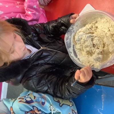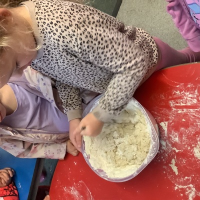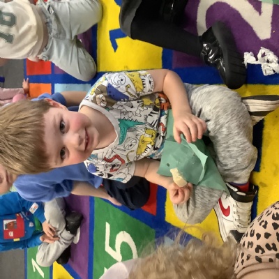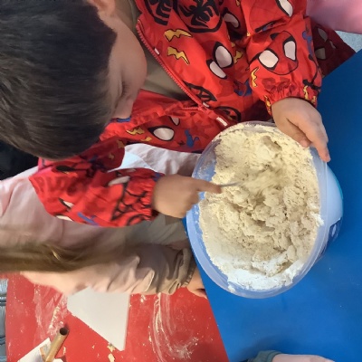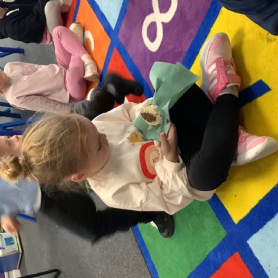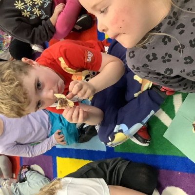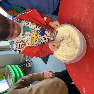 We read the book 'The Little Red Hen' and learnt about the process of harvesting wheat, taking it to the mill to grind into flour and then using the flour to make bread. We had a go at making our own bread, then we had a taste! It was yummy!! We chose our own topping from a choice of butter, jam or chocolate spread, and it's safe to say the chocolate spread was a firm favourite.