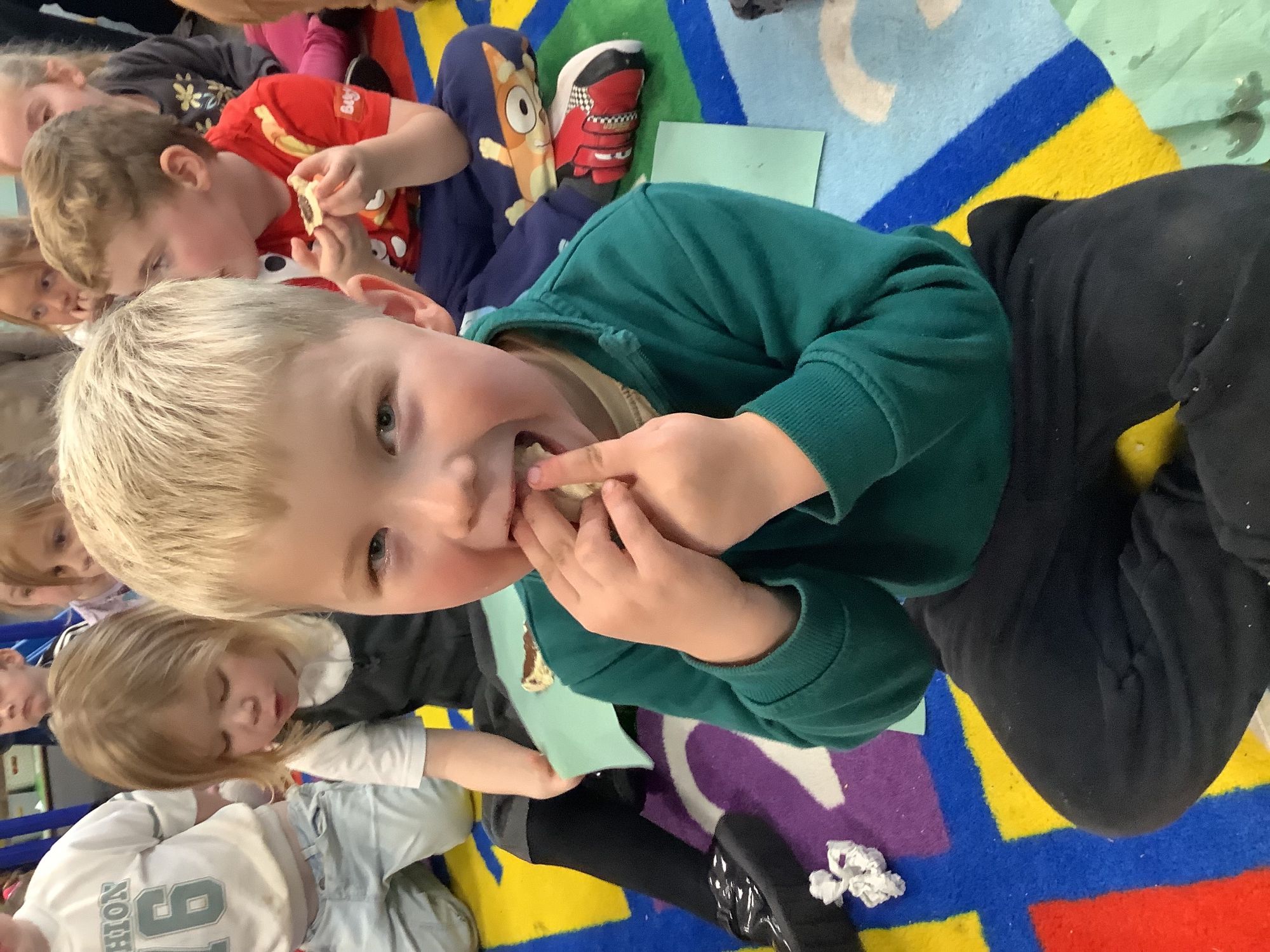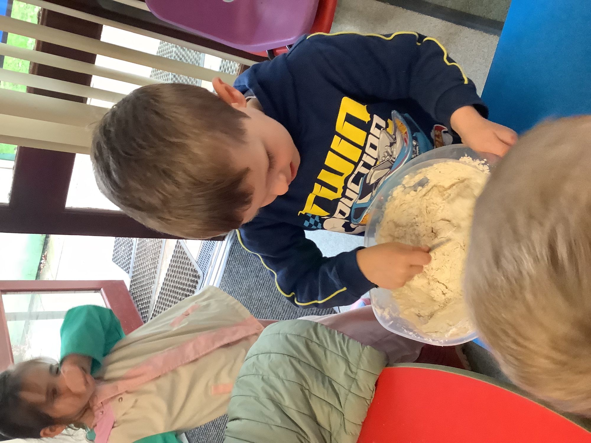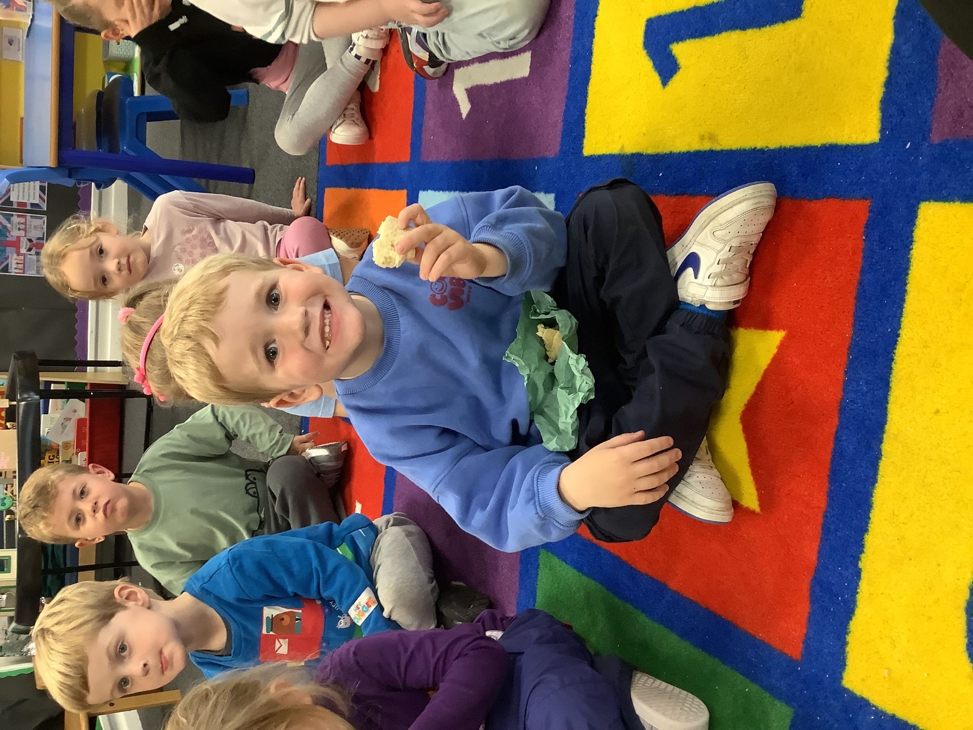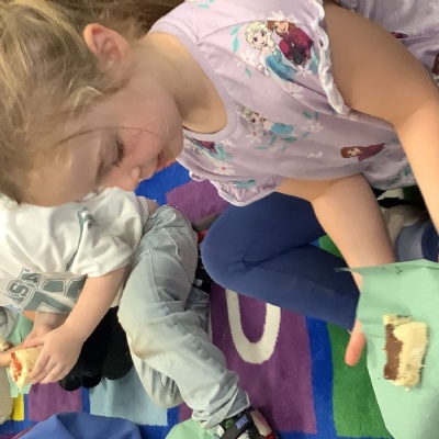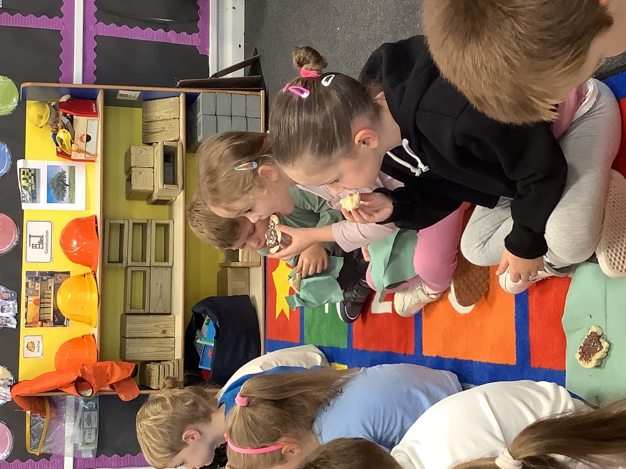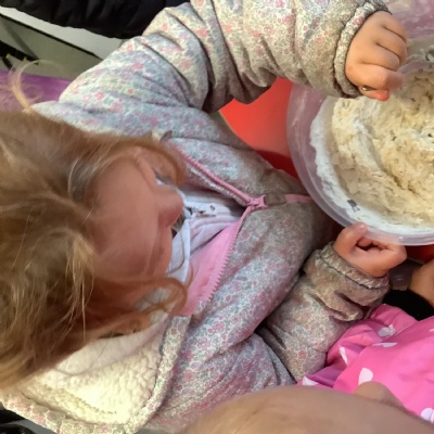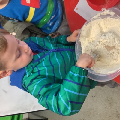 We read the book 'The Little Red Hen' and learnt about the process of harvesting wheat, taking it to the mill to grind into flour and then using the flour to make bread. We had a go at making our own bread, then we had a taste! It was yummy!! We chose our own topping from a choice of butter, jam or chocolate spread, and it's safe to say the chocolate spread was a firm favourite.