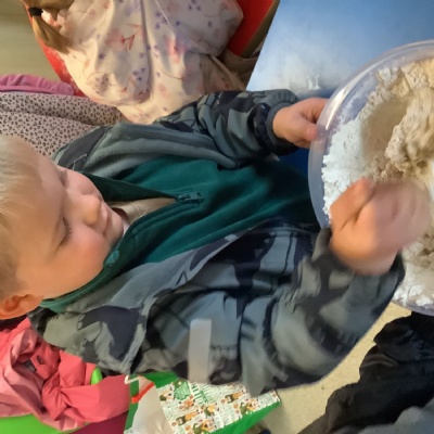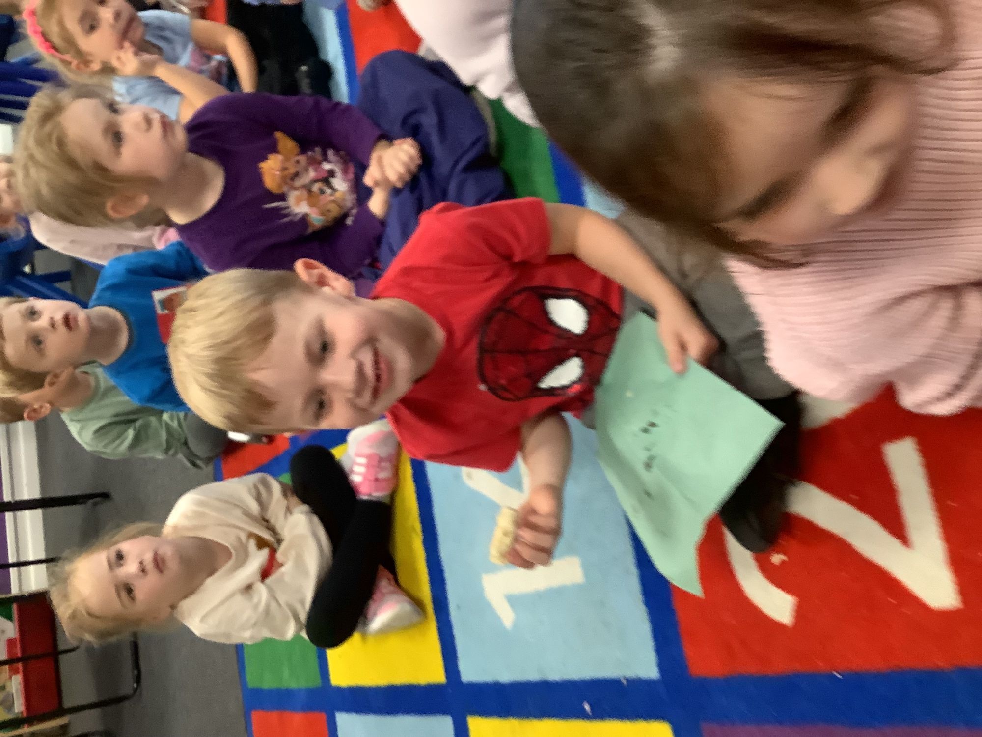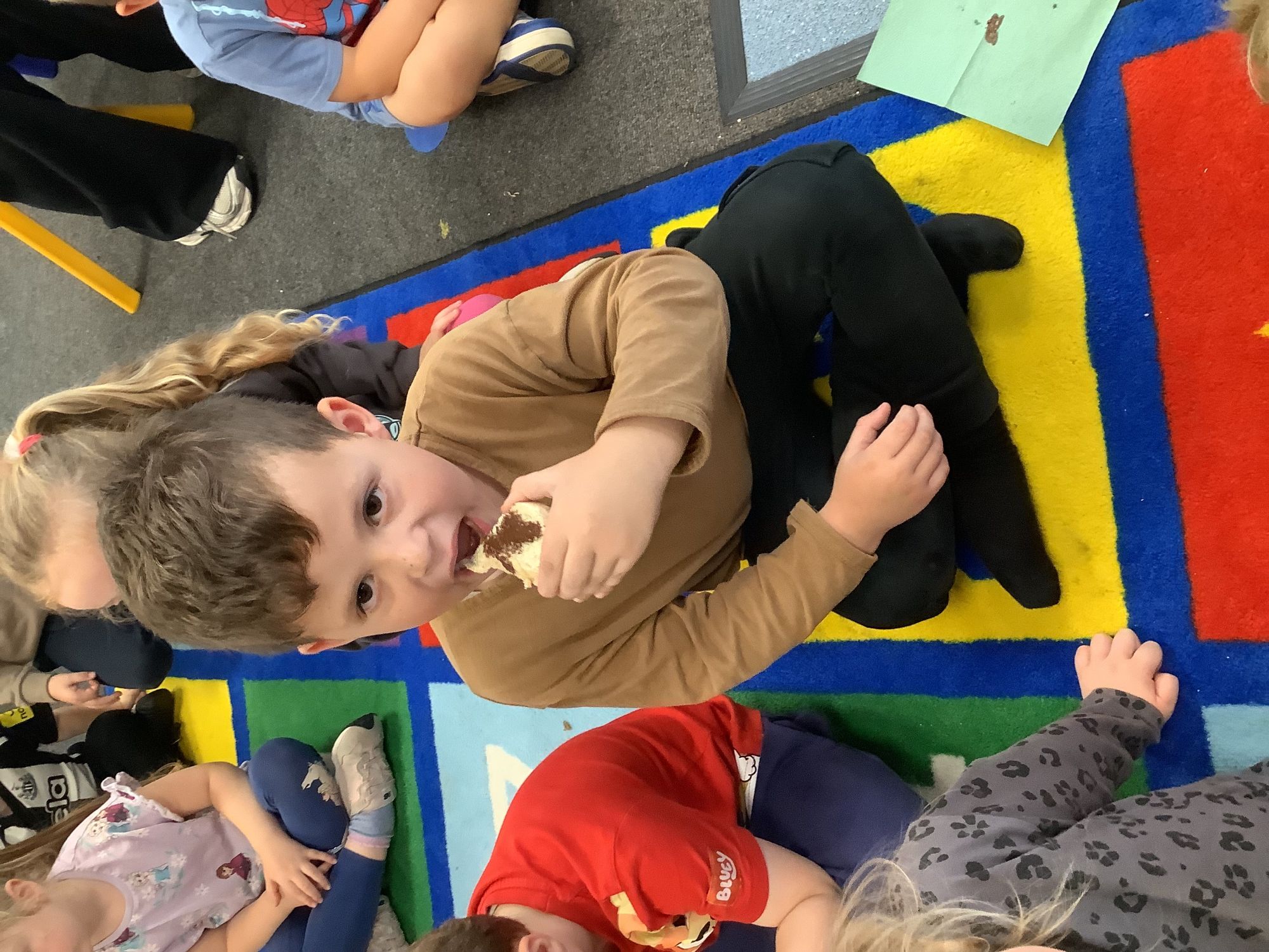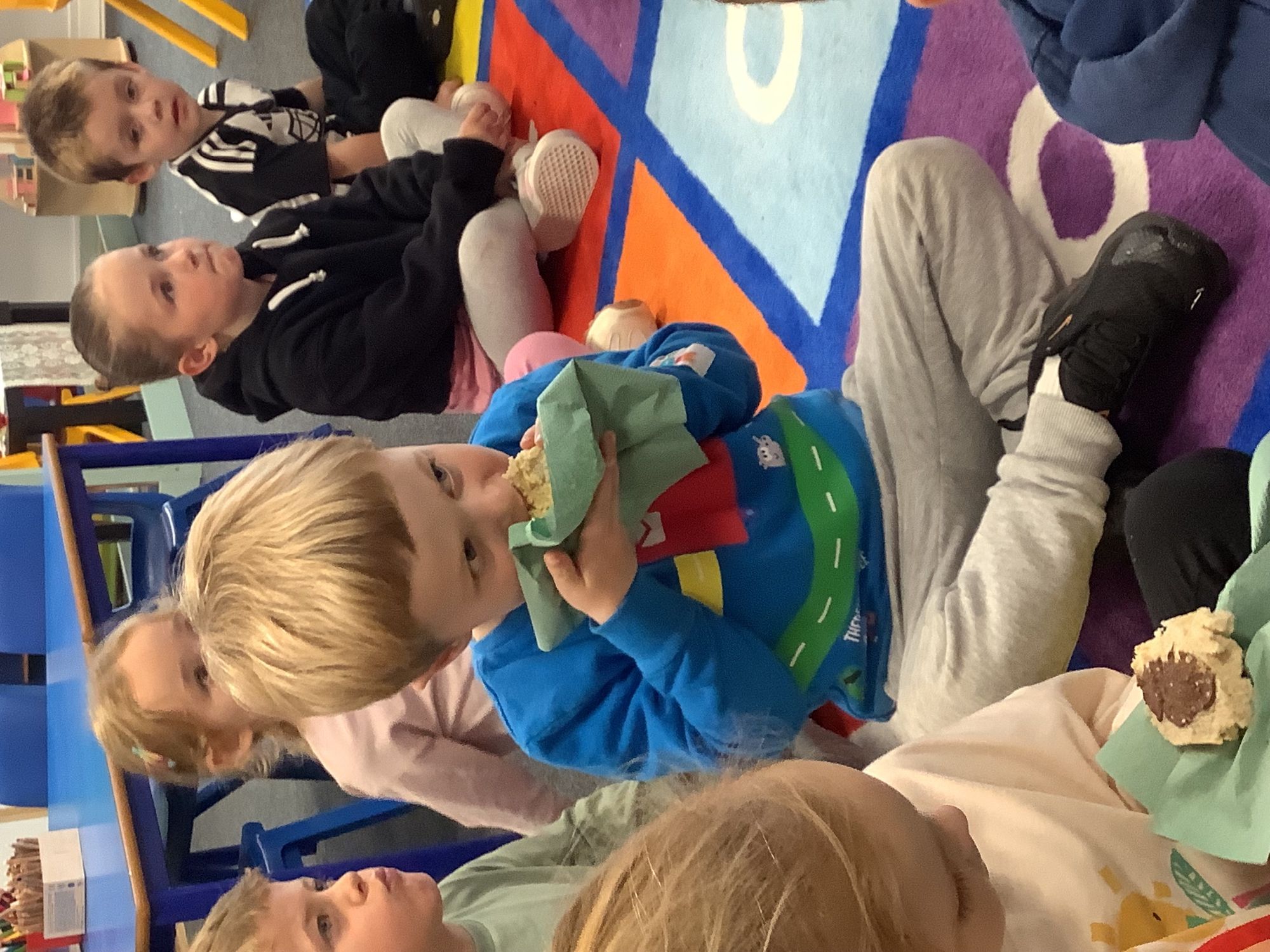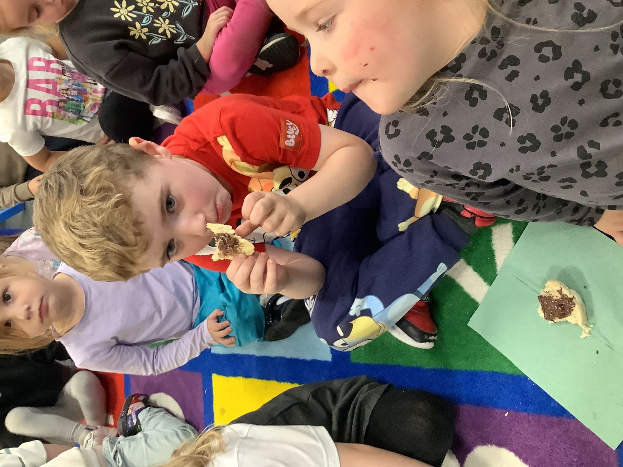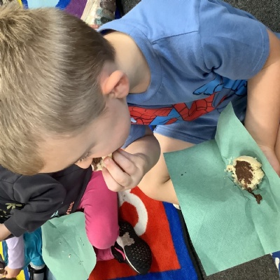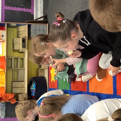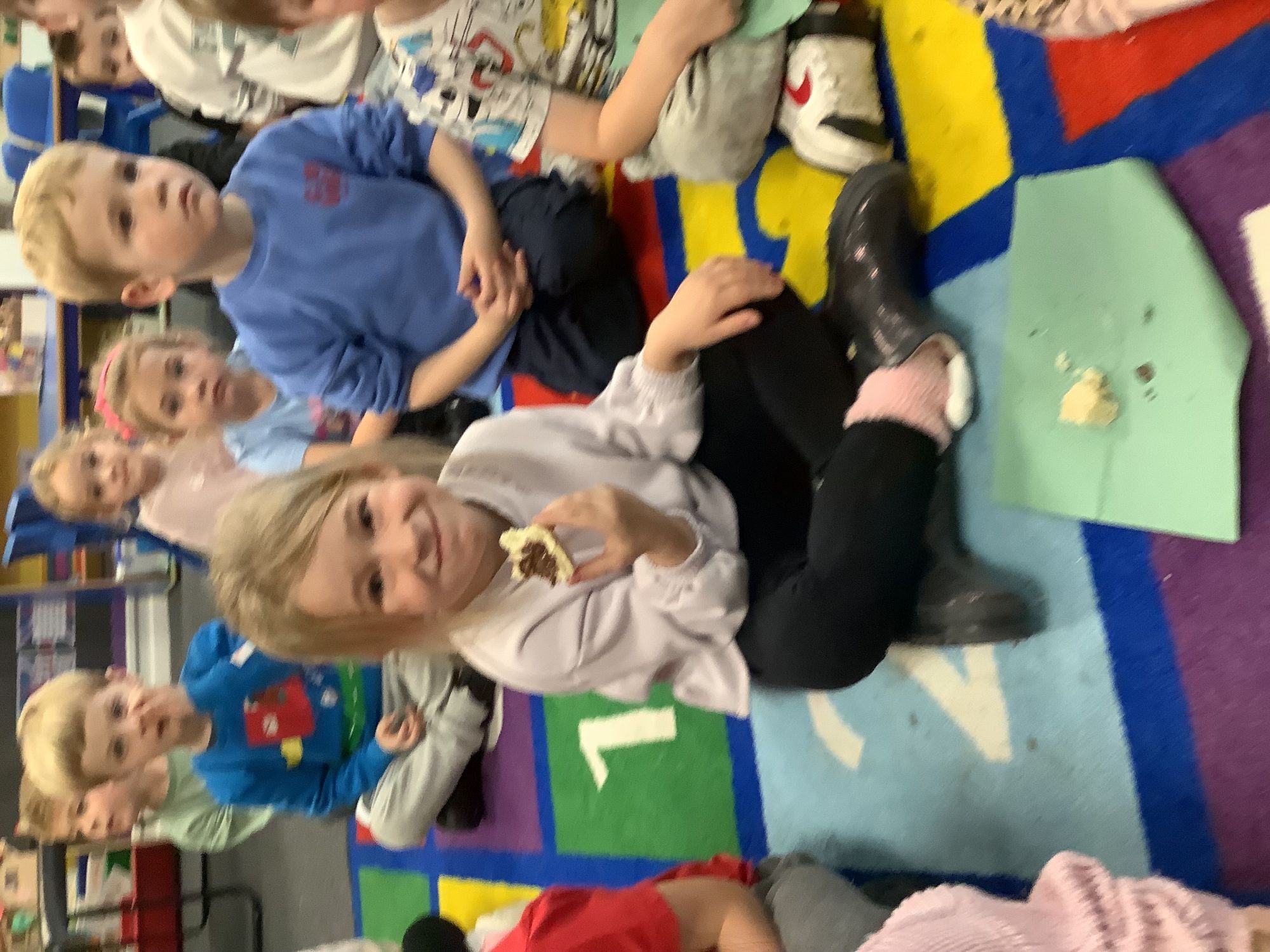 We read the book 'The Little Red Hen' and learnt about the process of harvesting wheat, taking it to the mill to grind into flour and then using the flour to make bread. We had a go at making our own bread, then we had a taste! It was yummy!! We chose our own topping from a choice of butter, jam or chocolate spread, and it's safe to say the chocolate spread was a firm favourite.