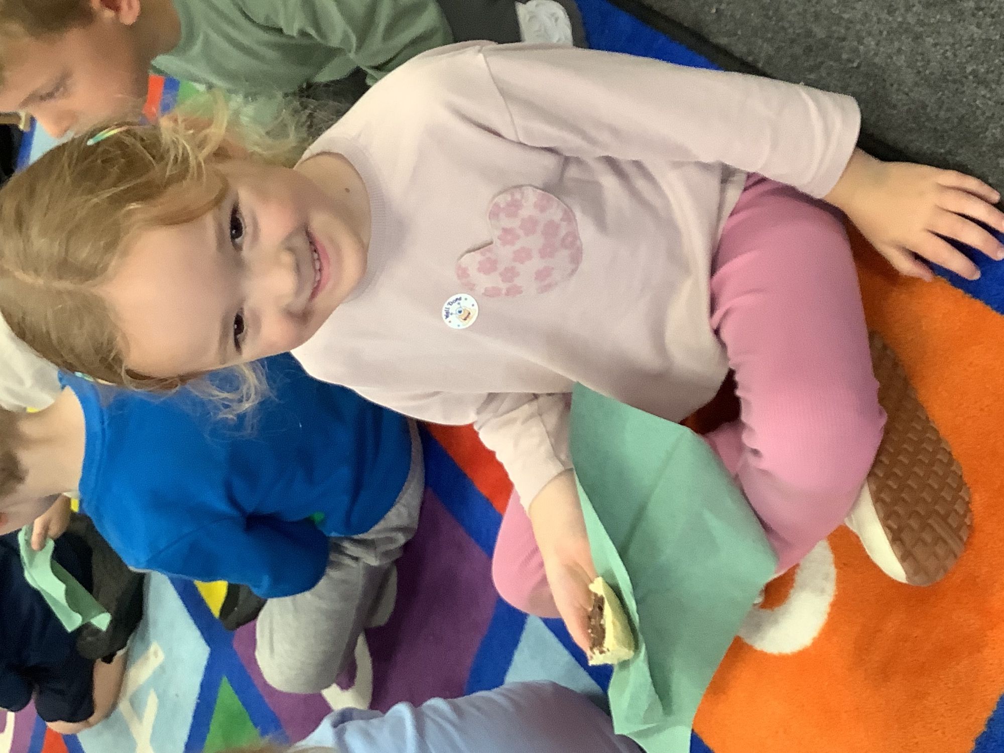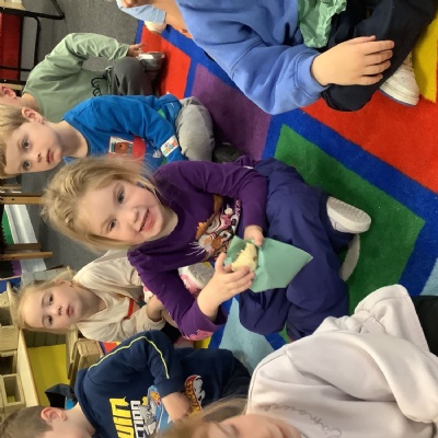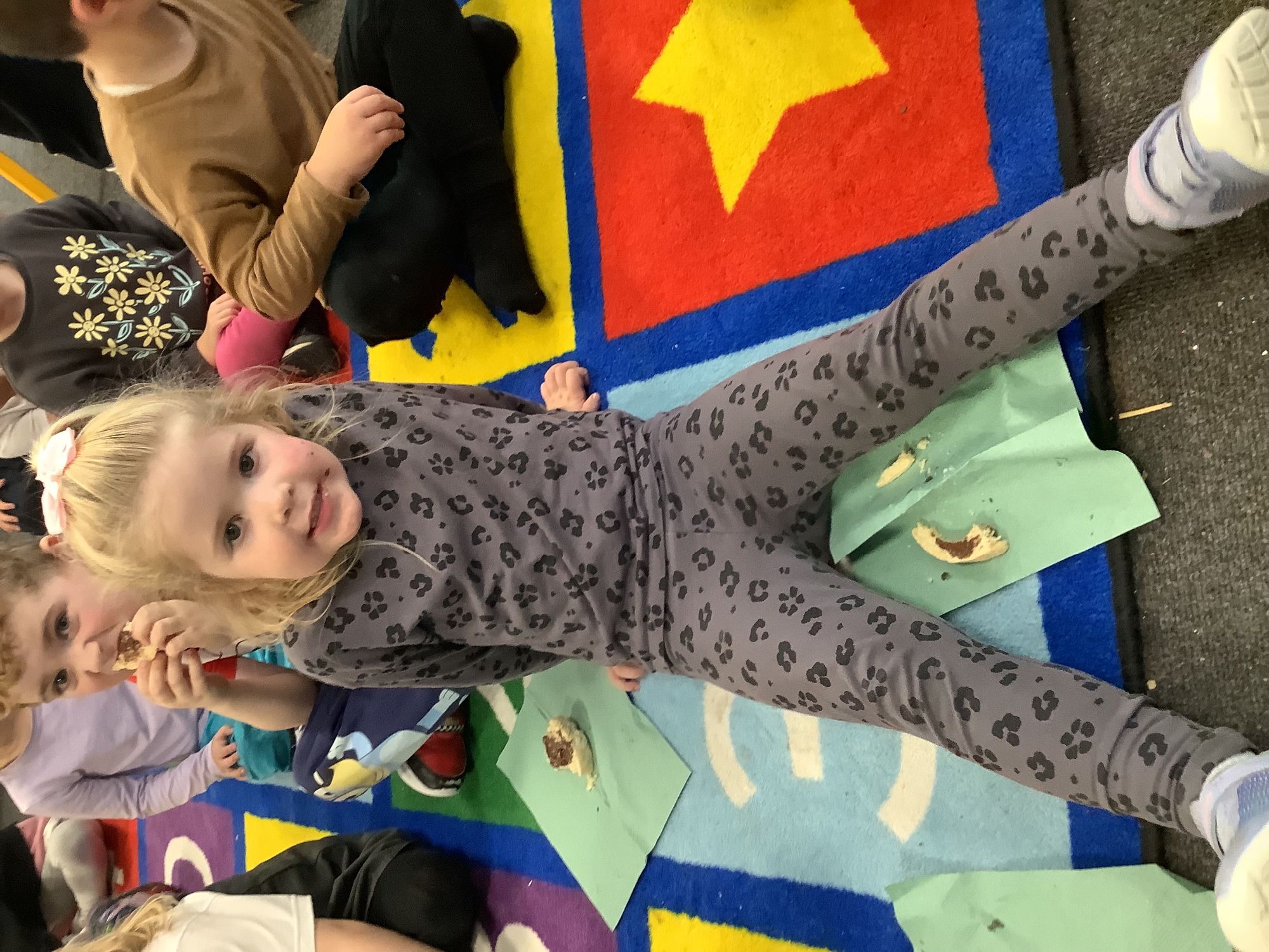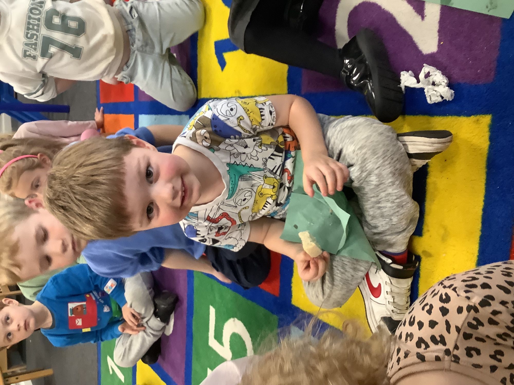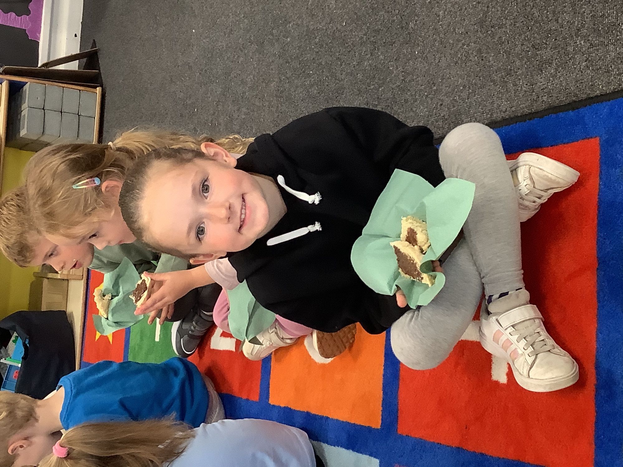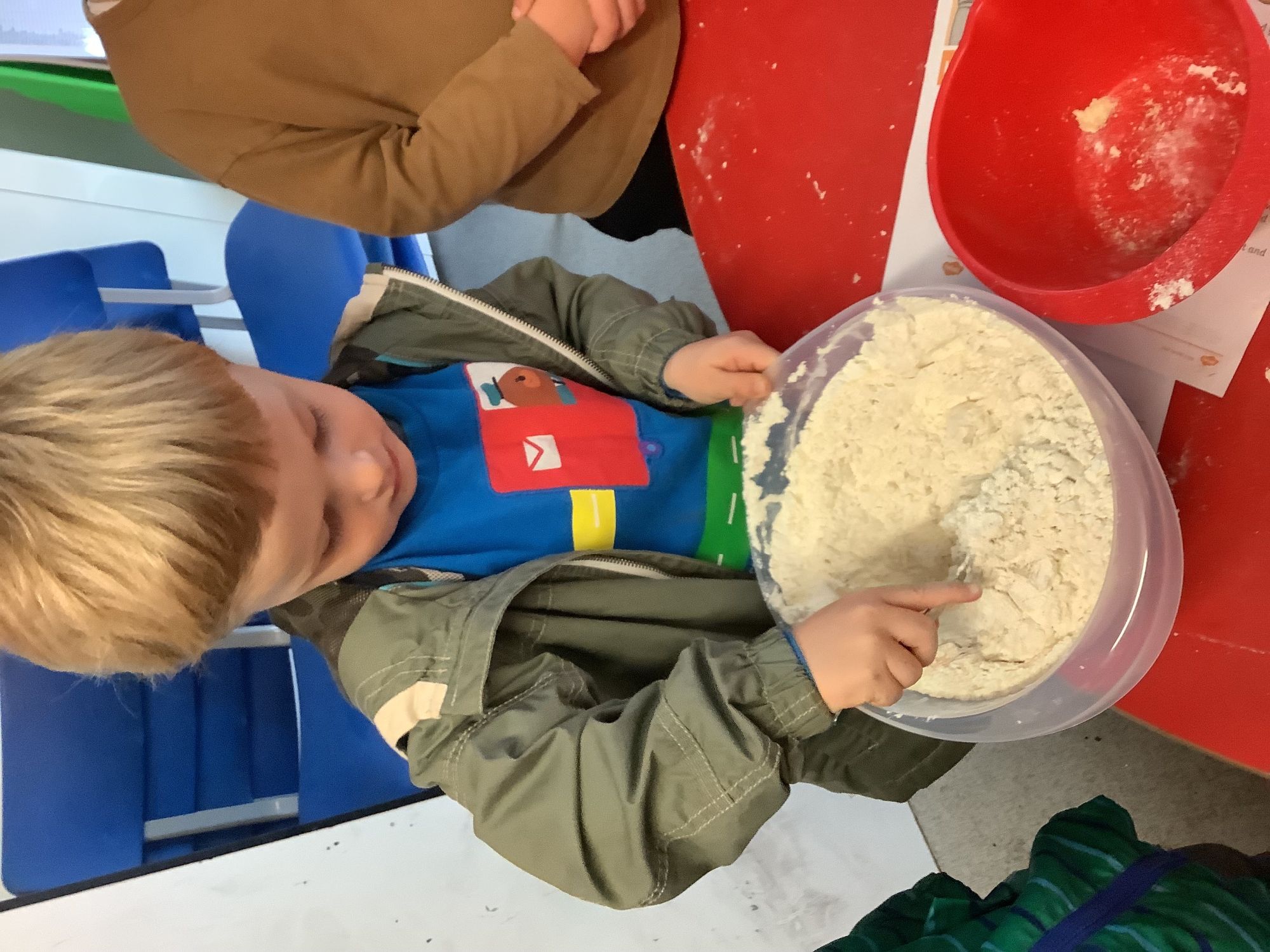We read the book 'The Little Red Hen' and learnt about the process of harvesting wheat, taking it to the mill to grind into flour and then using the flour to make bread. We had a go at making our own bread, then we had a taste! It was yummy!! We chose our own topping from a choice of butter, jam or chocolate spread, and it's safe to say the chocolate spread was a firm favourite.
