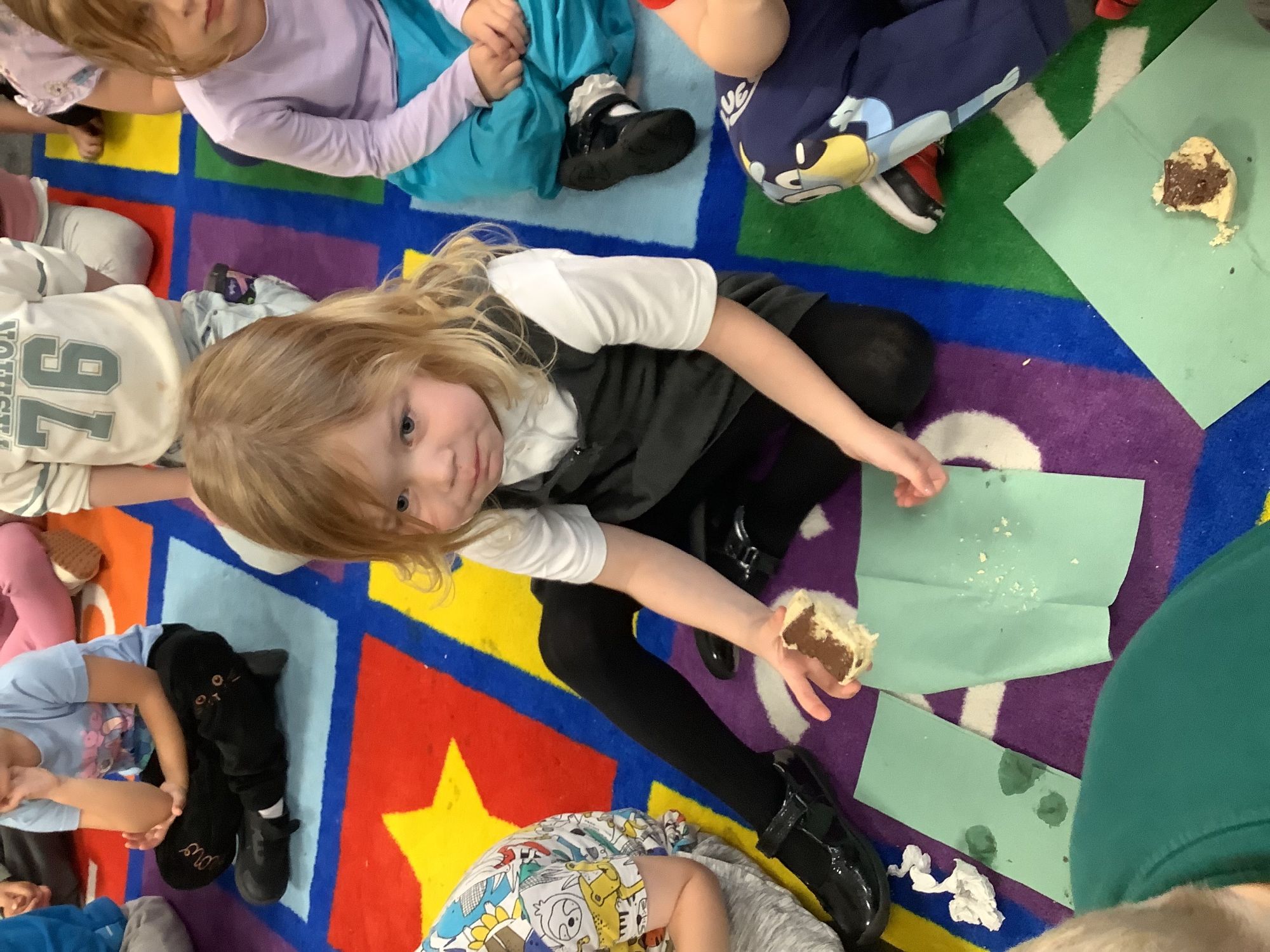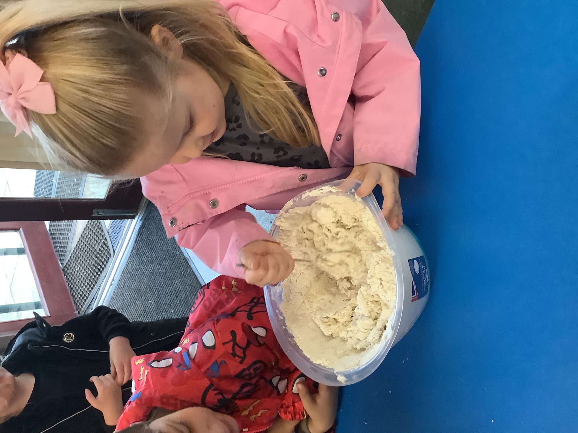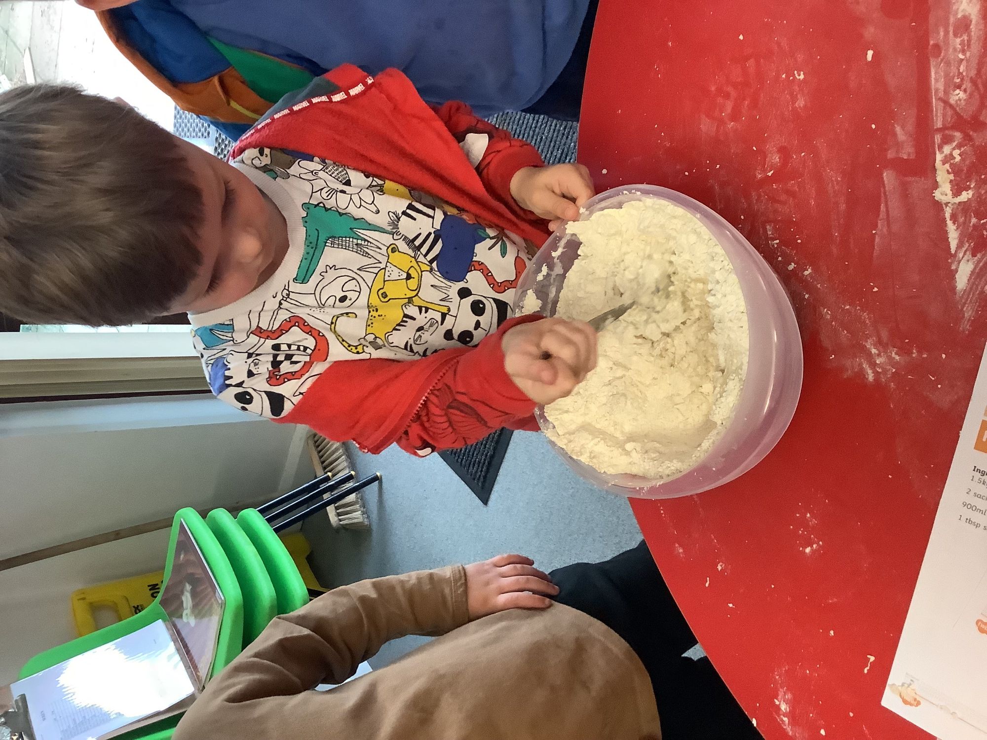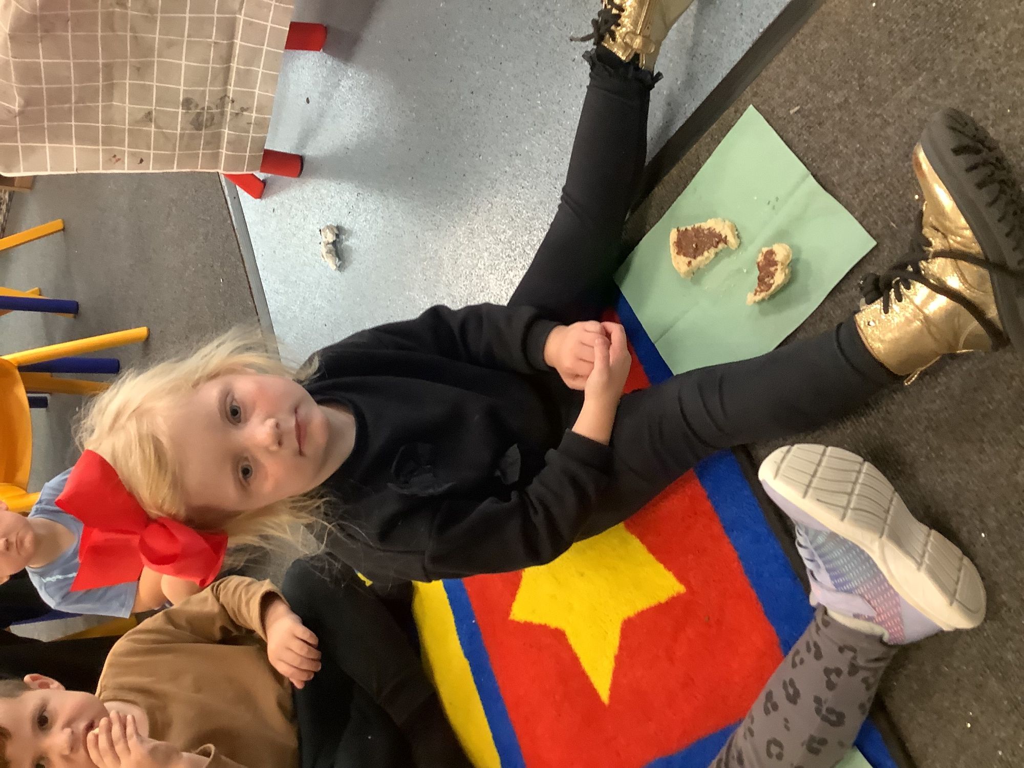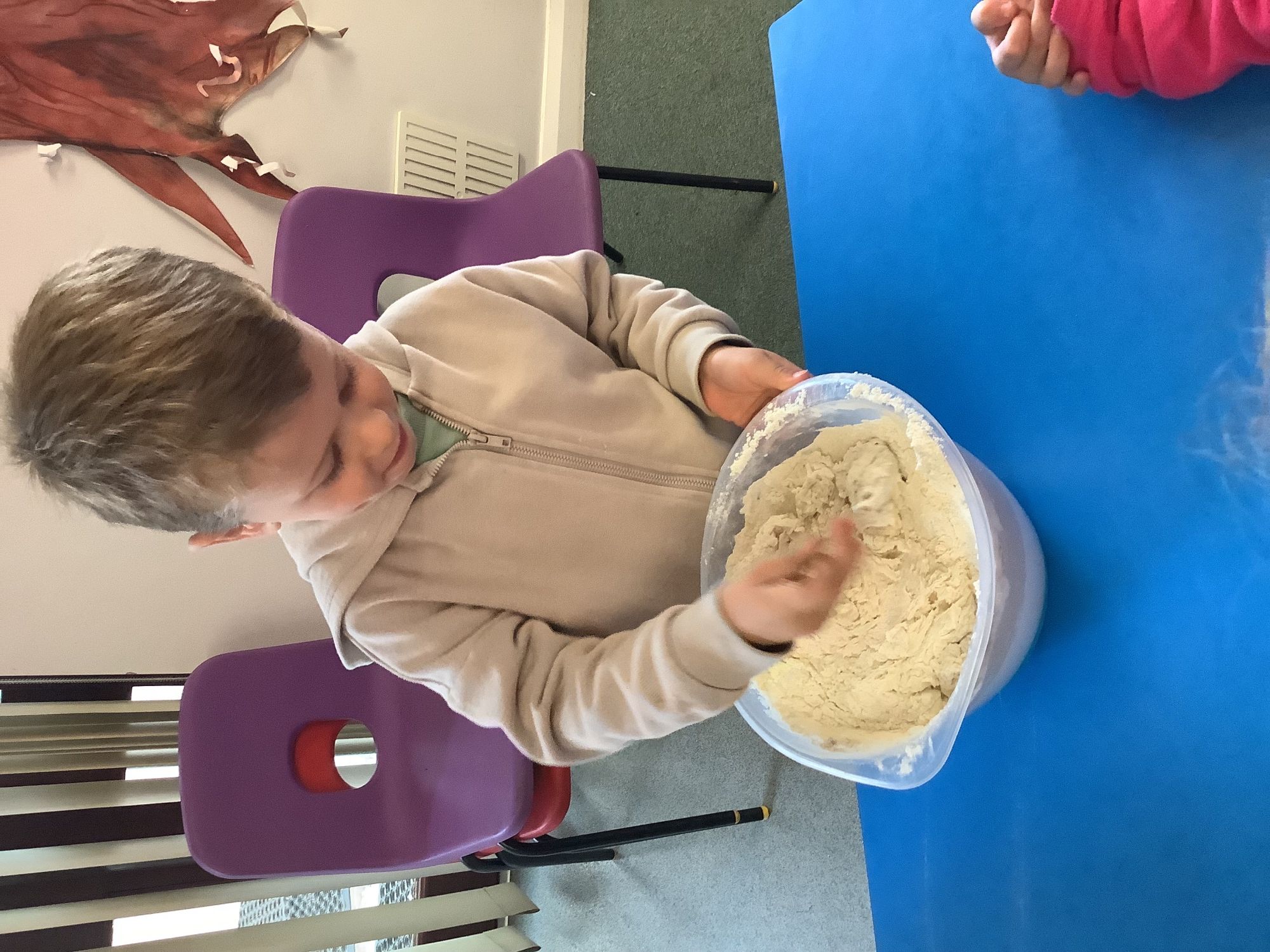 We read the book 'The Little Red Hen' and learnt about the process of harvesting wheat, taking it to the mill to grind into flour and then using the flour to make bread. We had a go at making our own bread, then we had a taste! It was yummy!! We chose our own topping from a choice of butter, jam or chocolate spread, and it's safe to say the chocolate spread was a firm favourite.