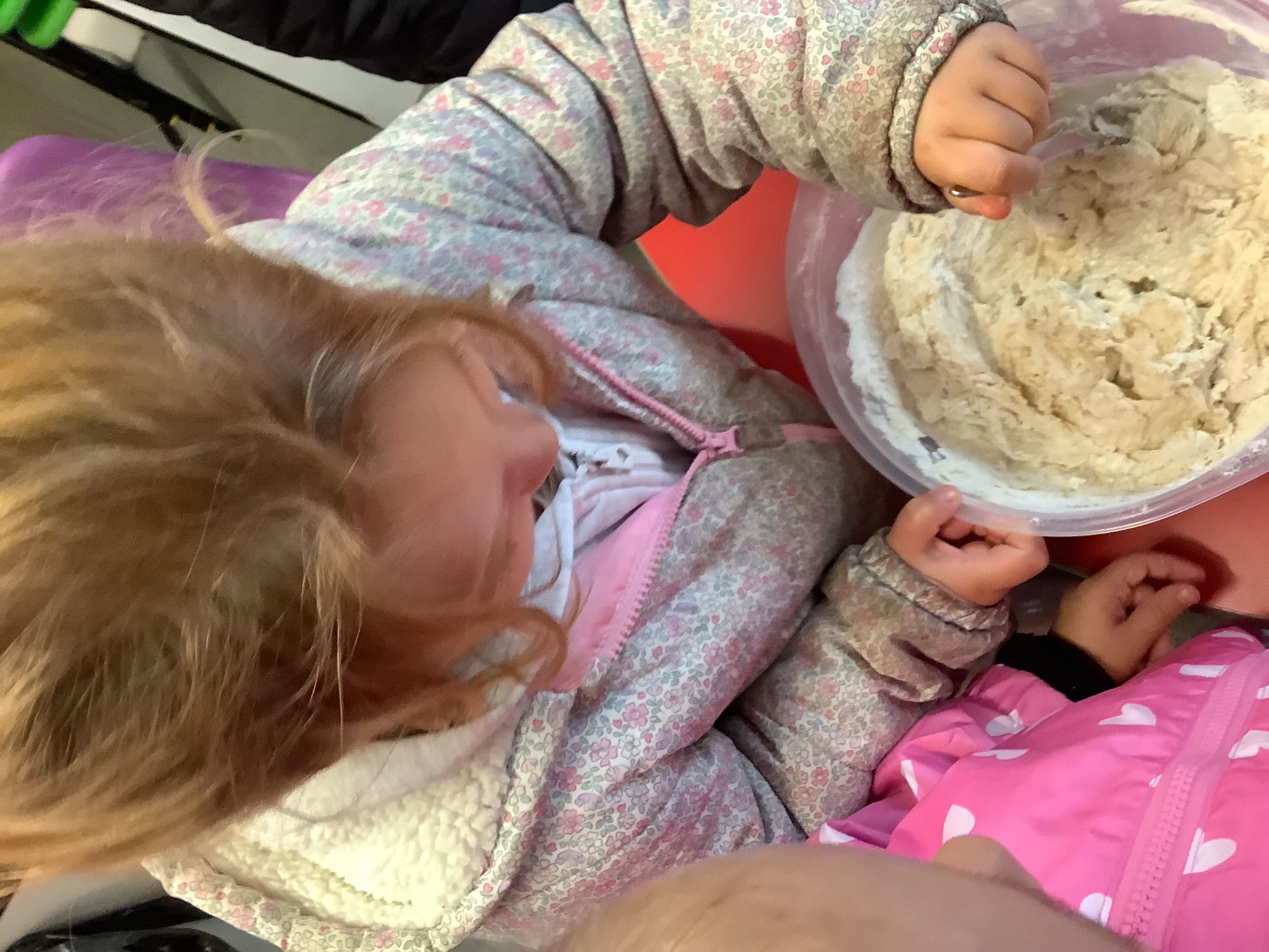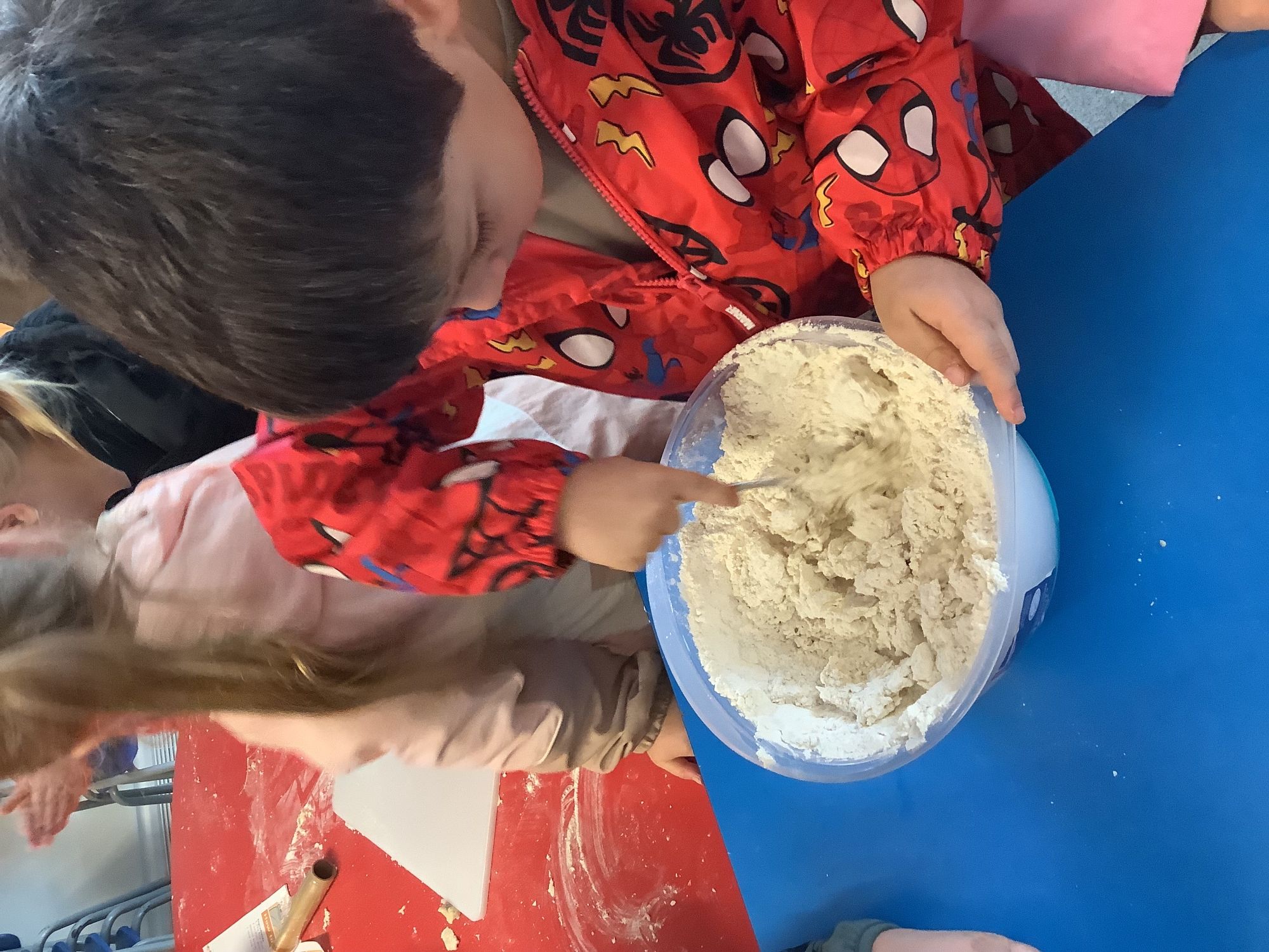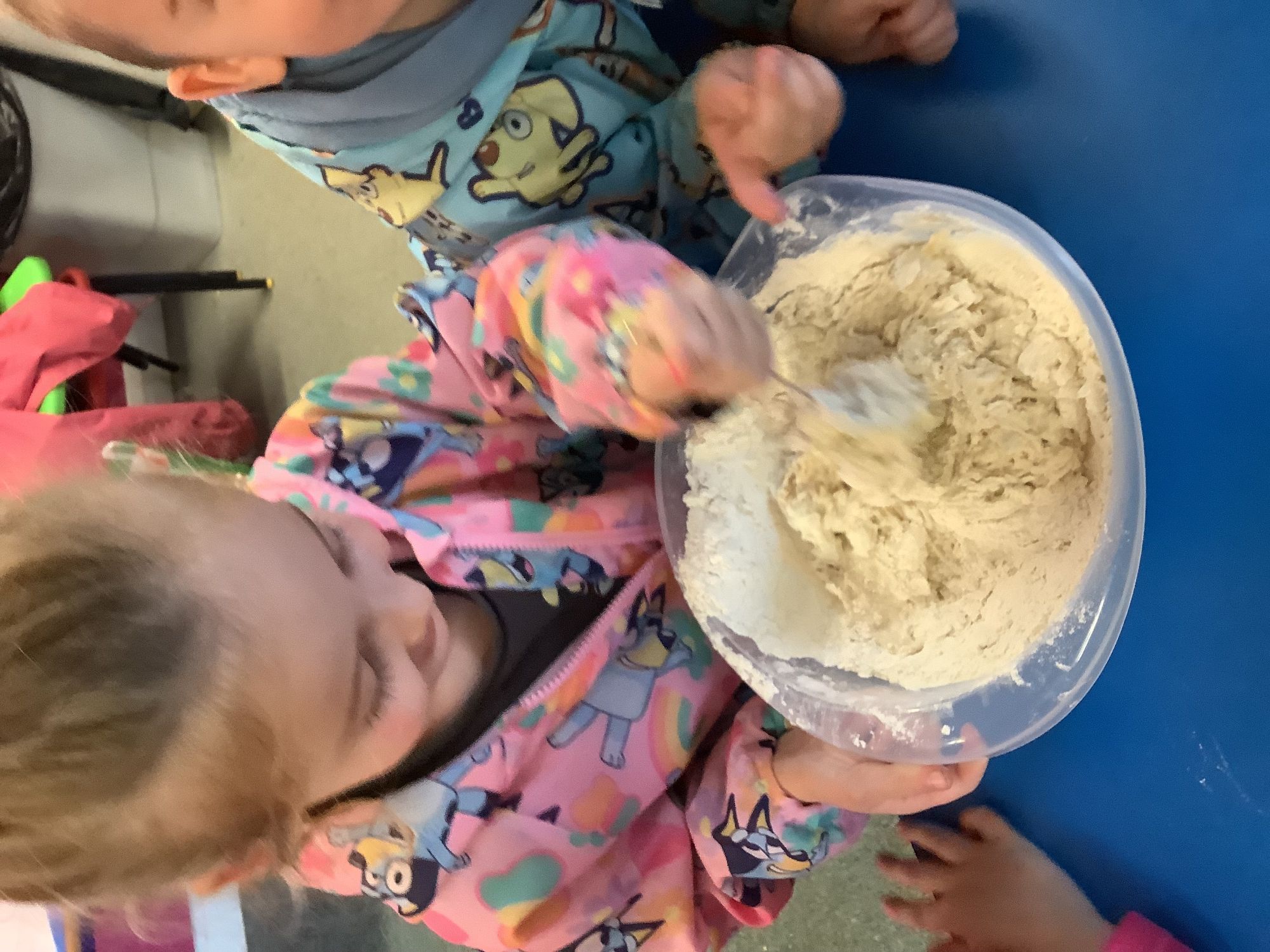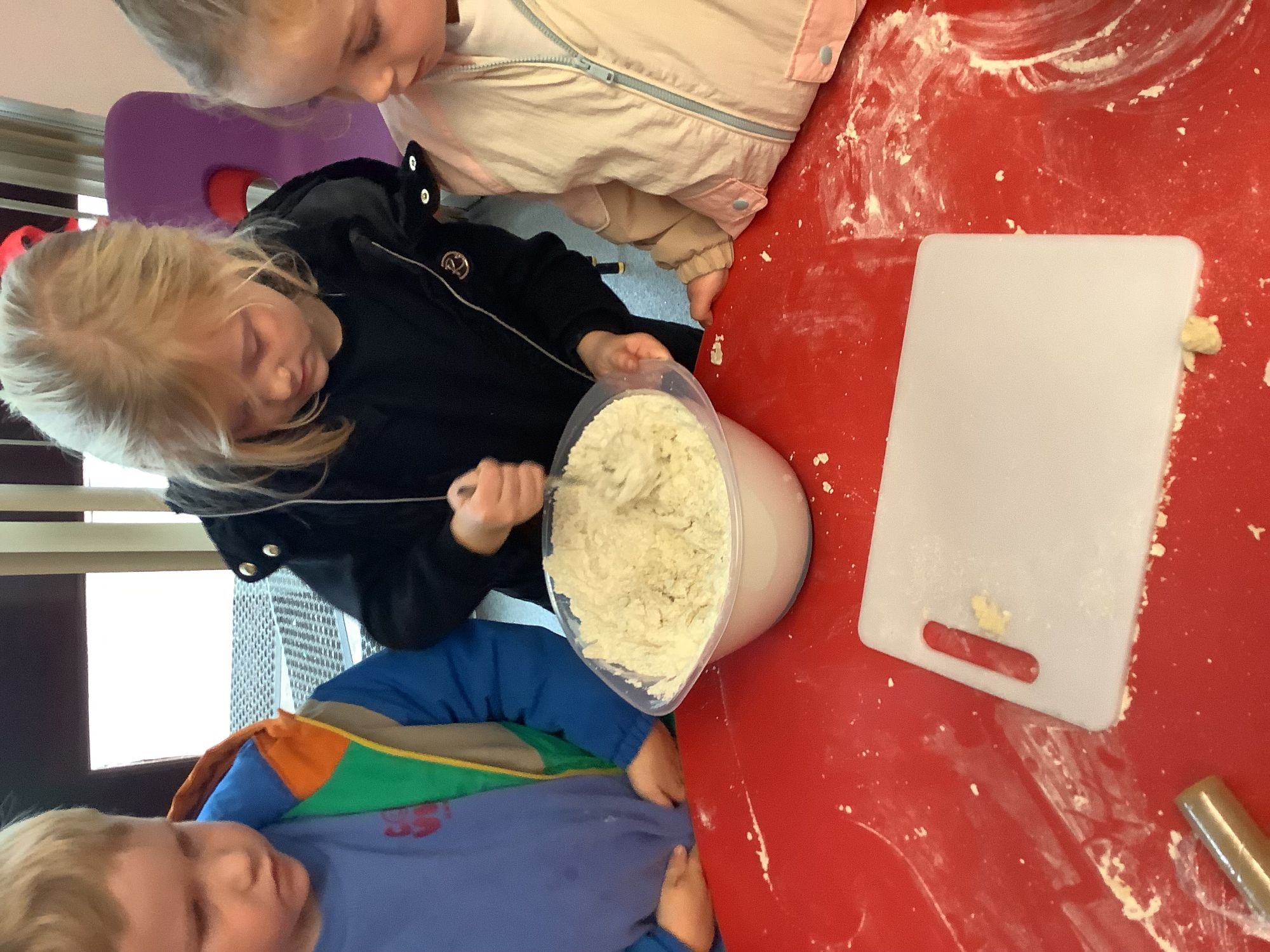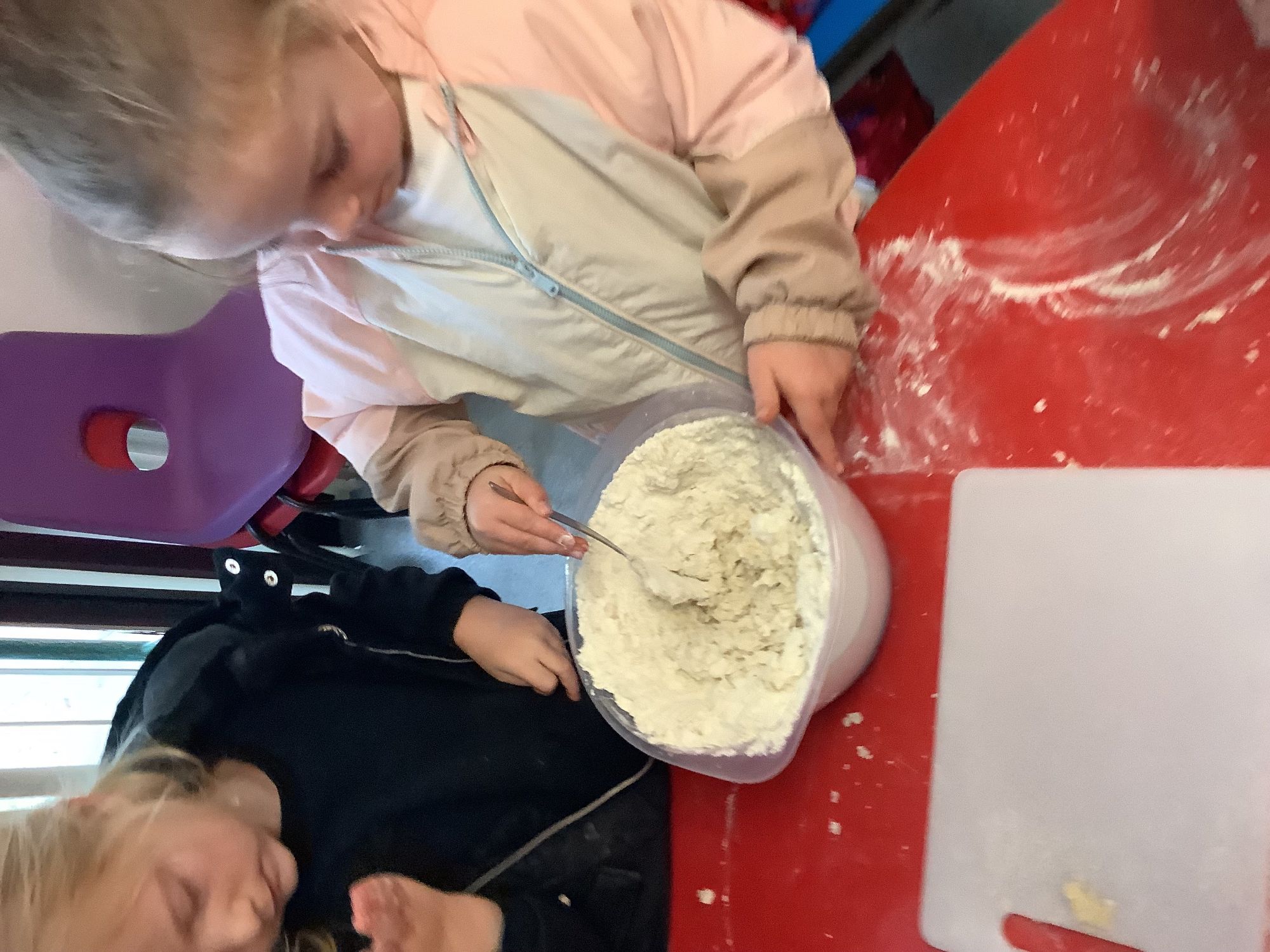 We read the book 'The Little Red Hen' and learnt about the process of harvesting wheat, taking it to the mill to grind into flour and then using the flour to make bread. We had a go at making our own bread, then we had a taste! It was yummy!! We chose our own topping from a choice of butter, jam or chocolate spread, and it's safe to say the chocolate spread was a firm favourite.