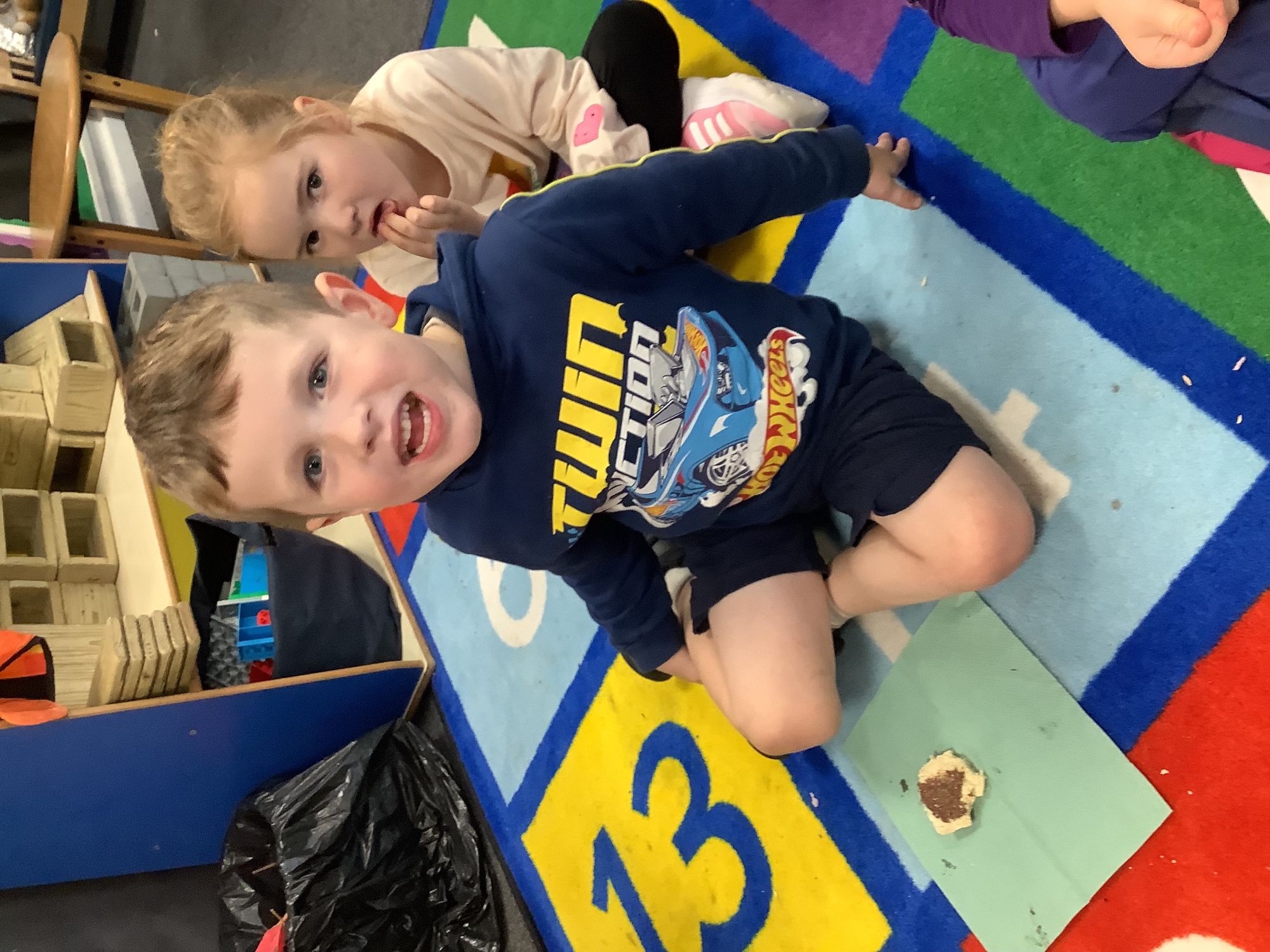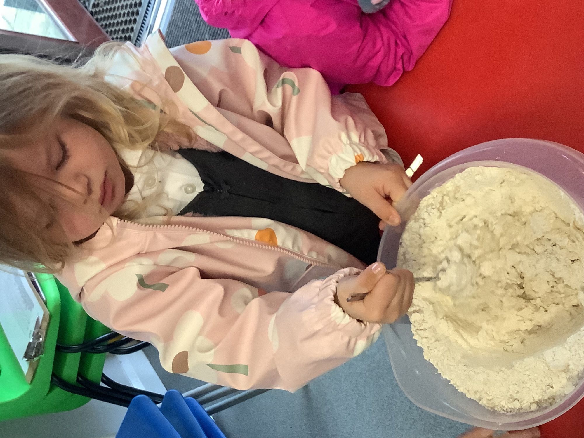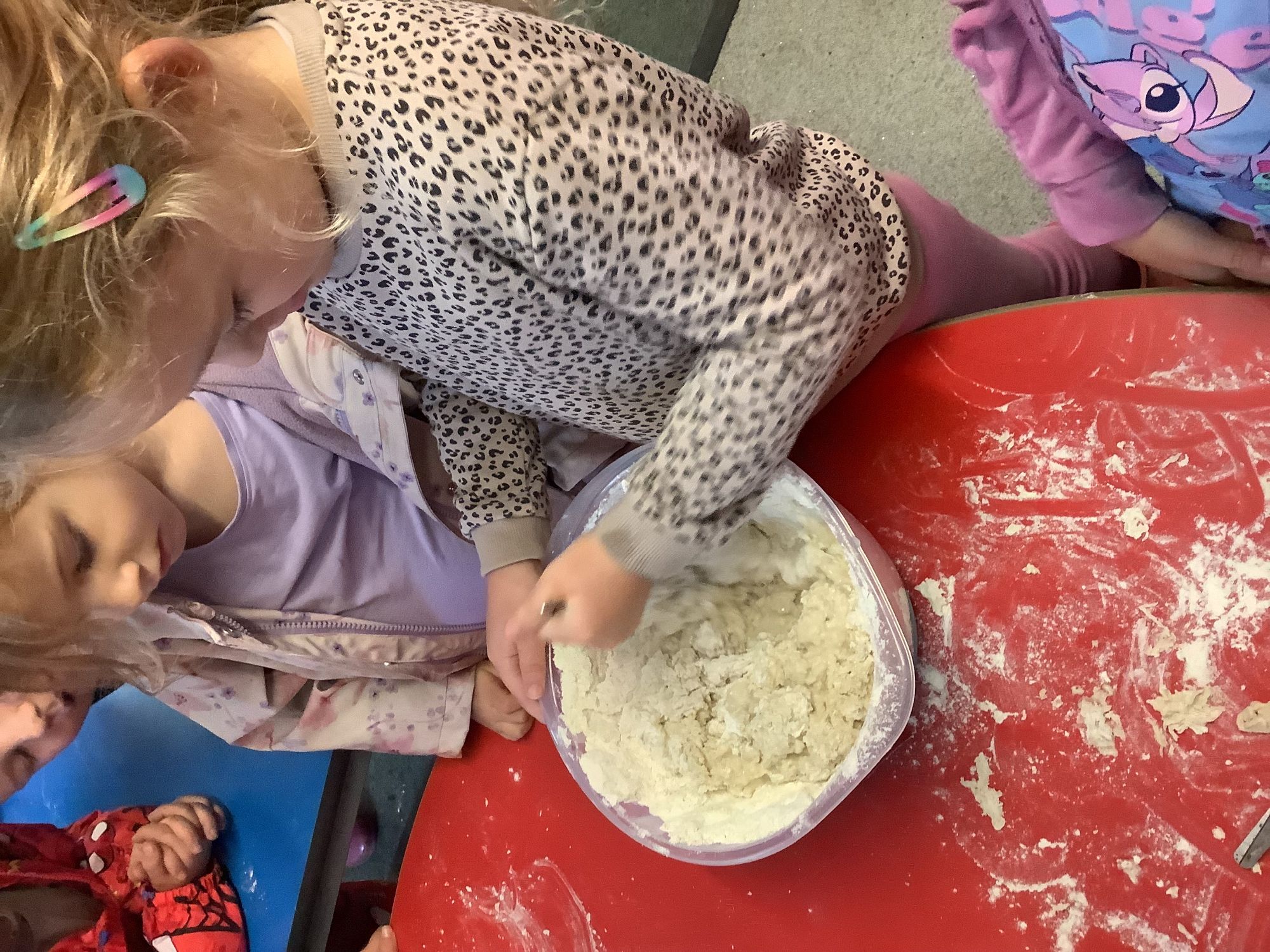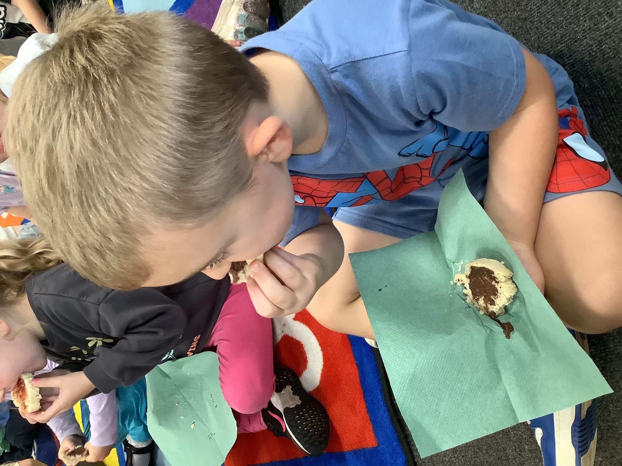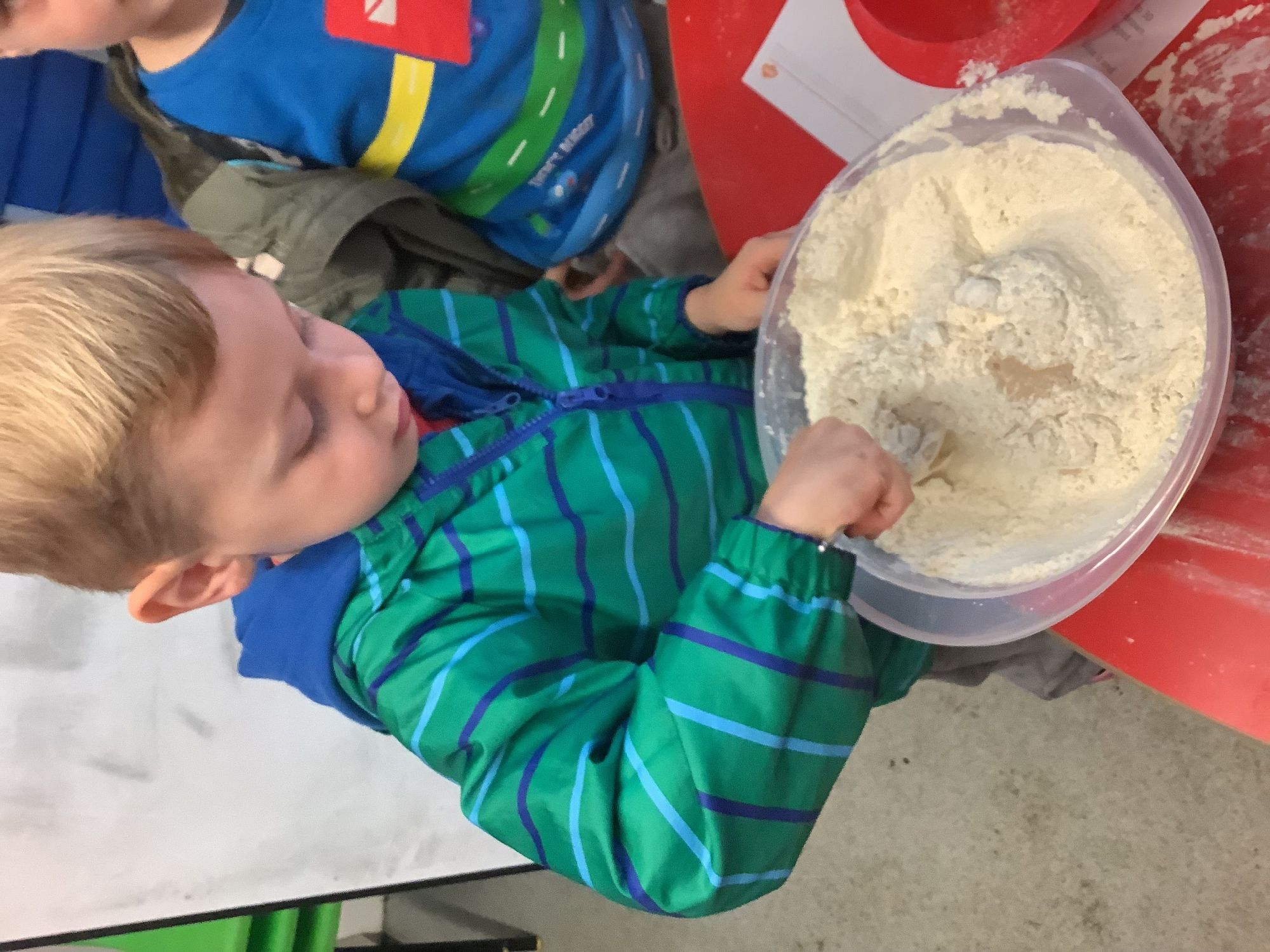 We read the book 'The Little Red Hen' and learnt about the process of harvesting wheat, taking it to the mill to grind into flour and then using the flour to make bread. We had a go at making our own bread, then we had a taste! It was yummy!! We chose our own topping from a choice of butter, jam or chocolate spread, and it's safe to say the chocolate spread was a firm favourite.