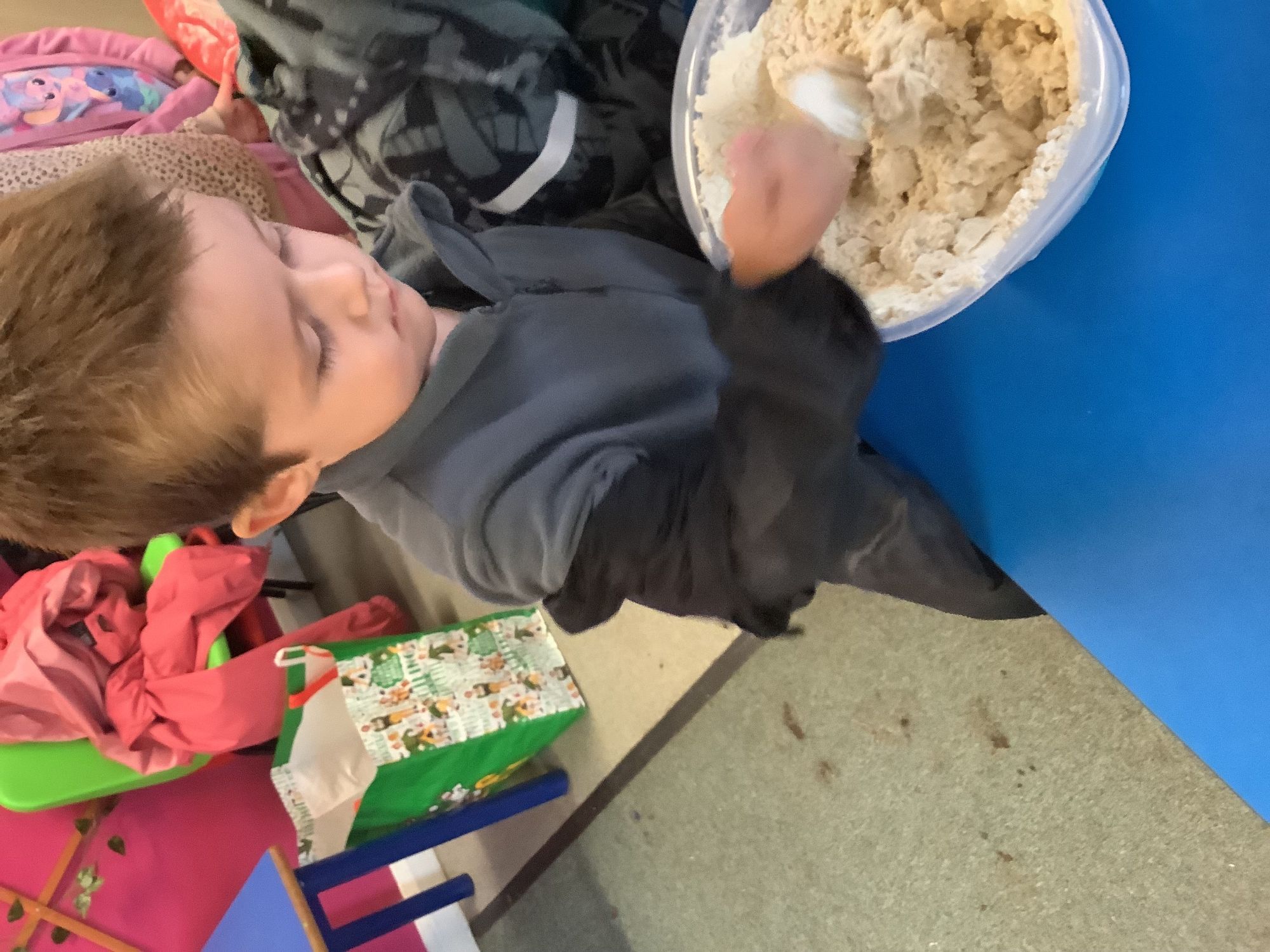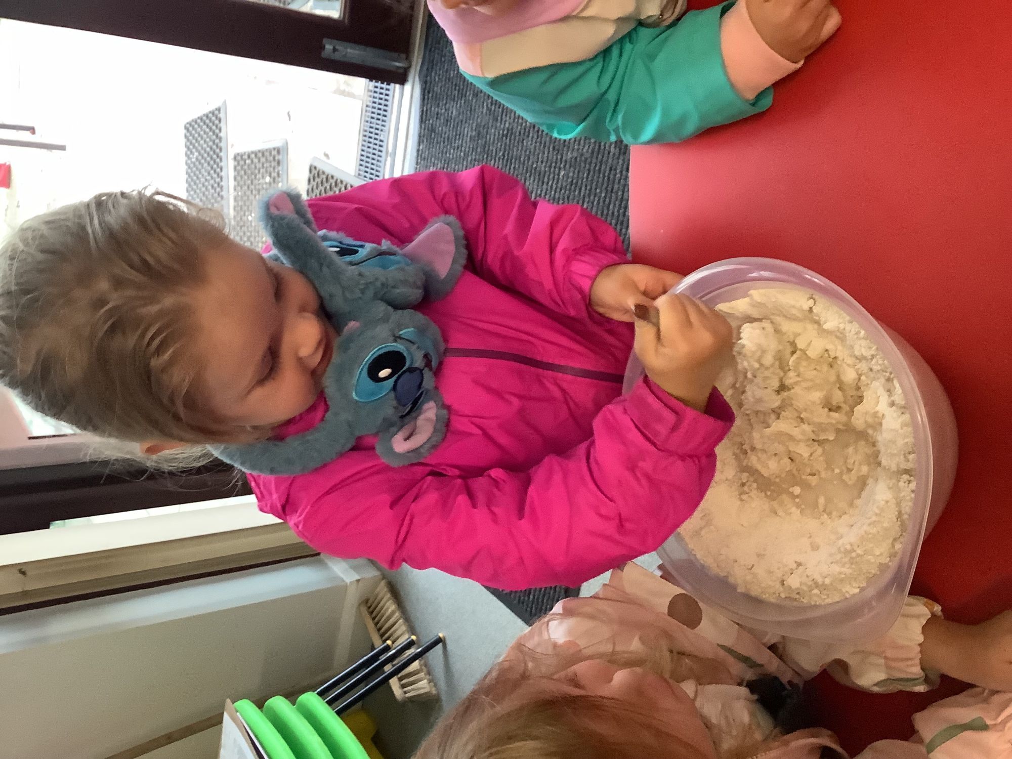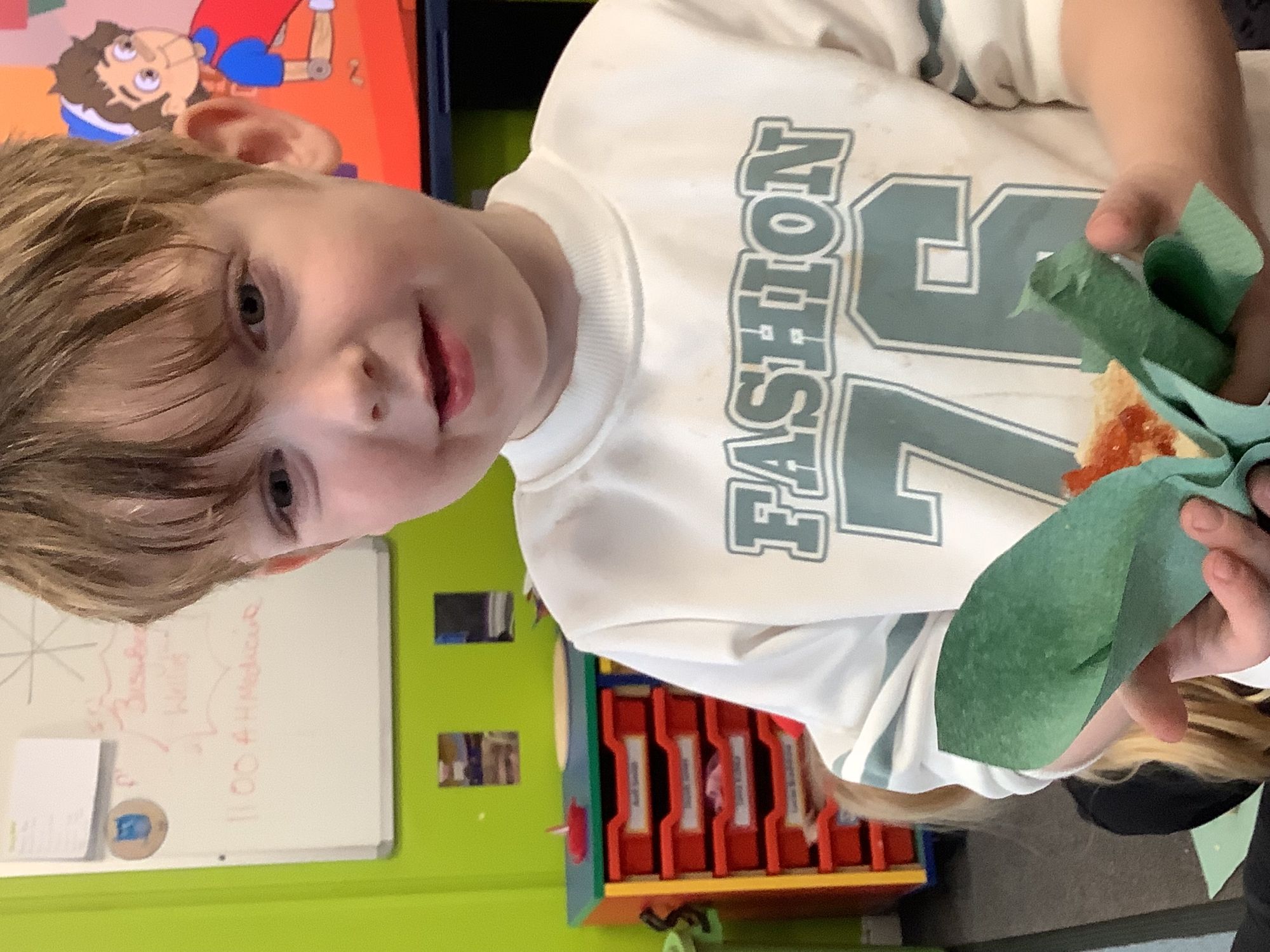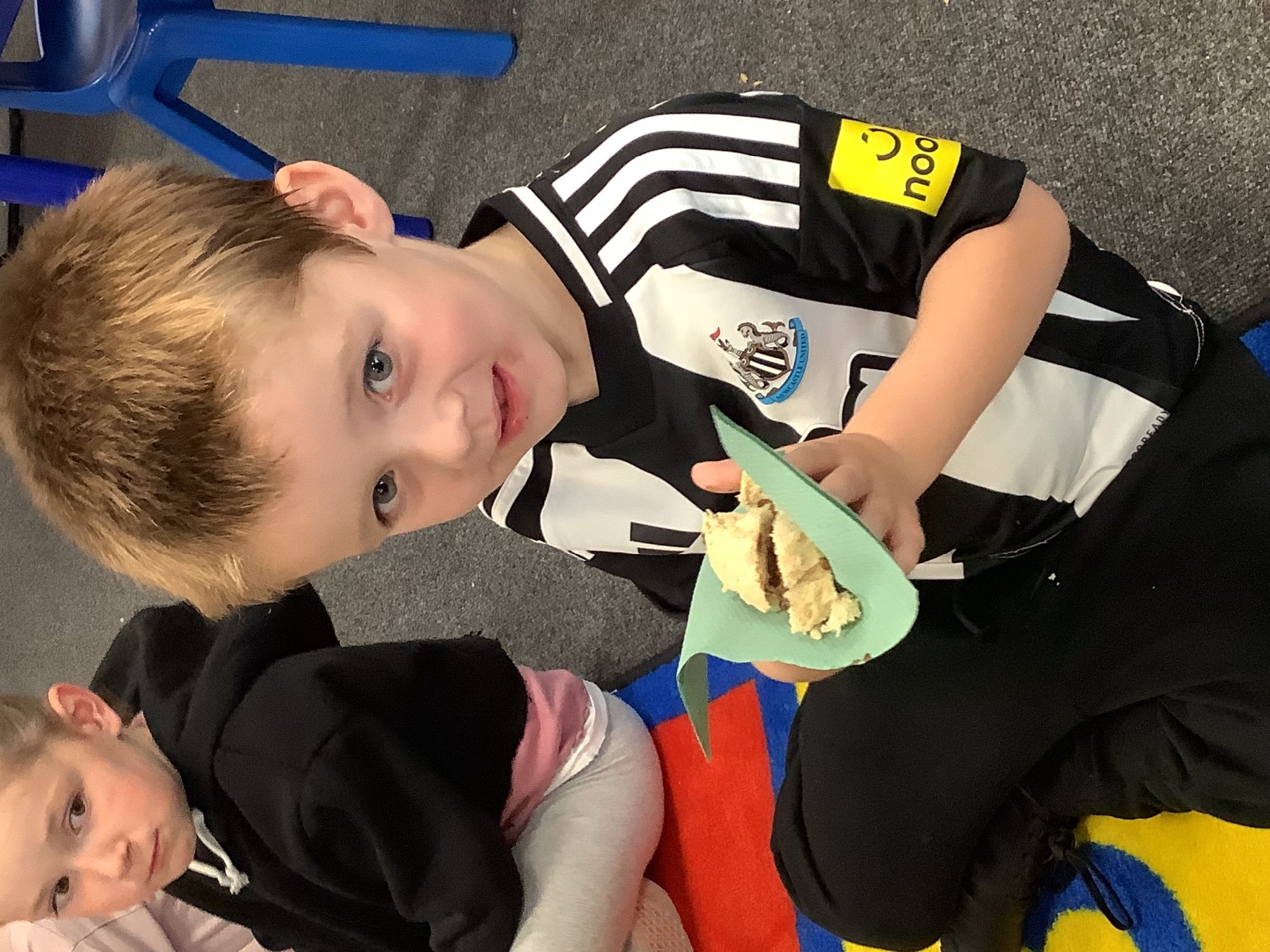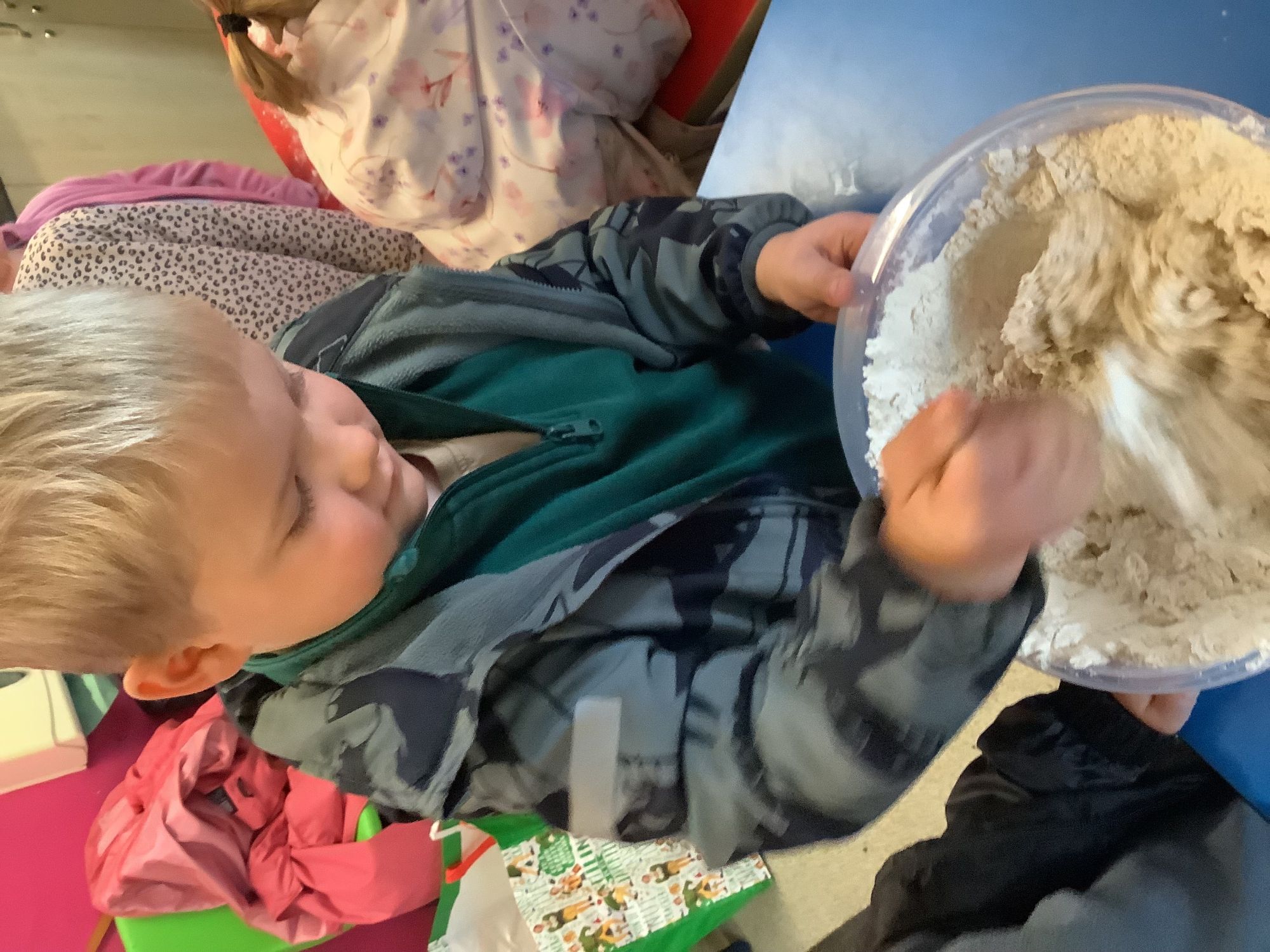 We read the book 'The Little Red Hen' and learnt about the process of harvesting wheat, taking it to the mill to grind into flour and then using the flour to make bread. We had a go at making our own bread, then we had a taste! It was yummy!! We chose our own topping from a choice of butter, jam or chocolate spread, and it's safe to say the chocolate spread was a firm favourite.