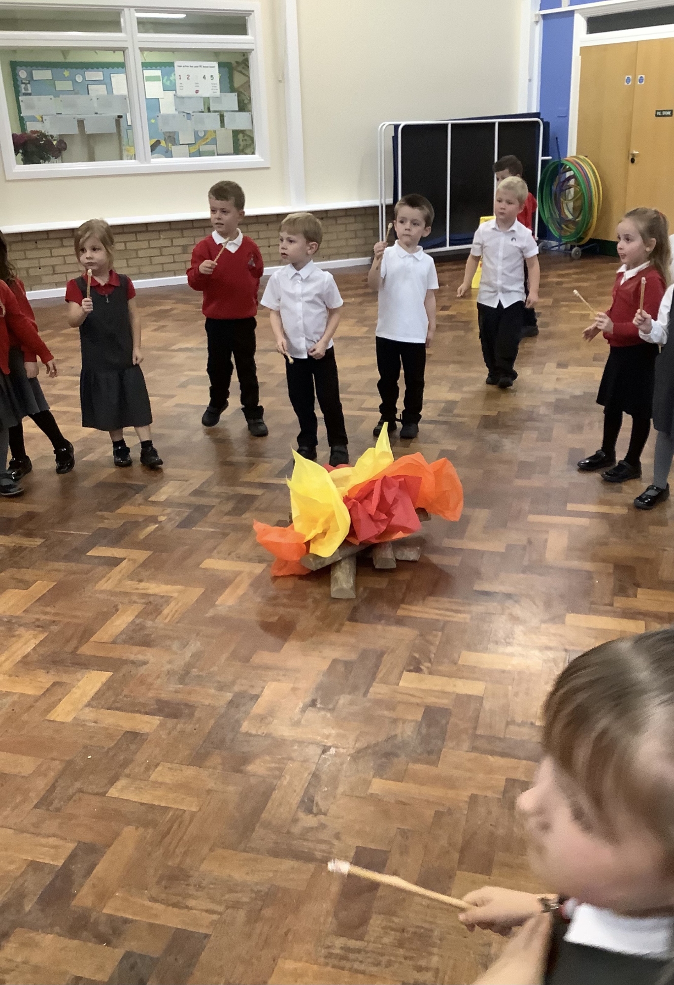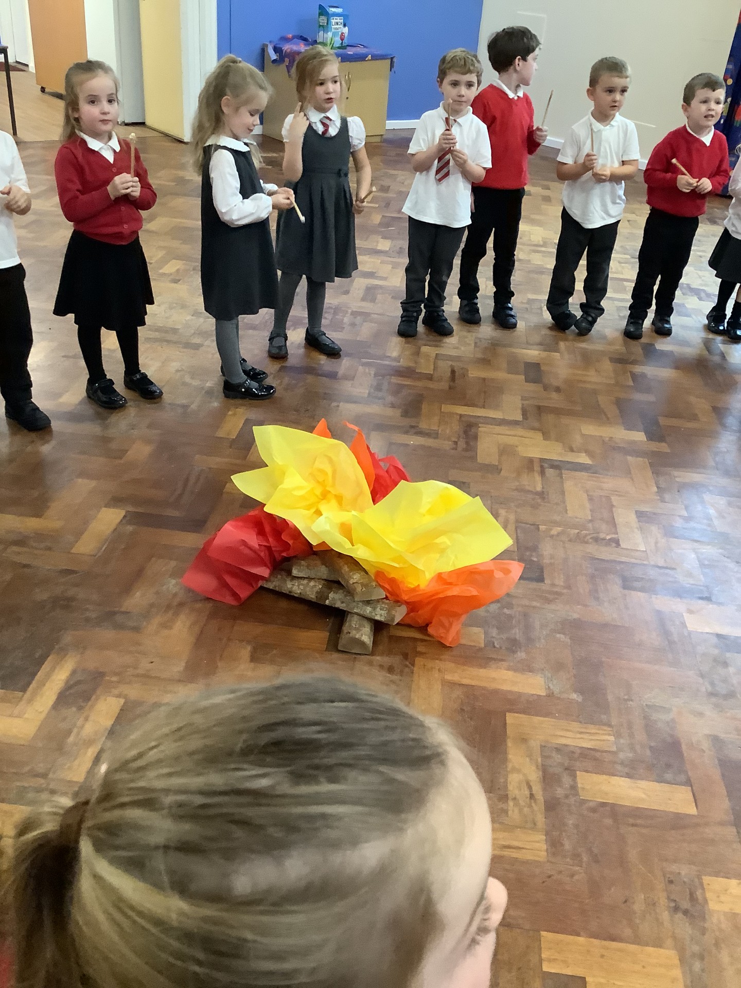 We kicked off our 'Celebrations' topic with Bonfire Night. We have been learning all about Guy Fawkes and how he tried to blow up the Houses of Parliament. We looked at how we celebrate by lighting fires and watching fireworks. We made our own edible sparklers using breadsticks, icing and sprinkles and went into the hall to gather round our bonfire.