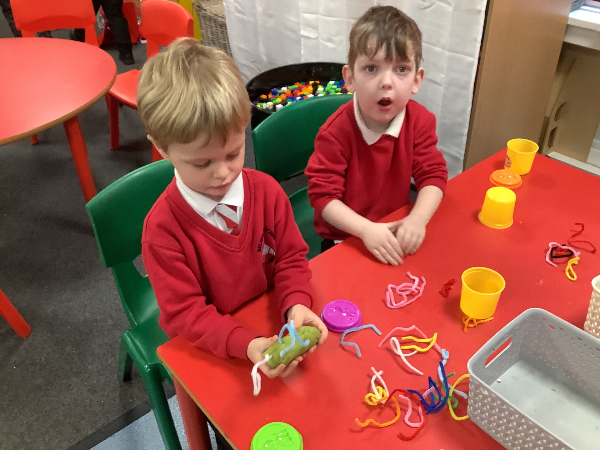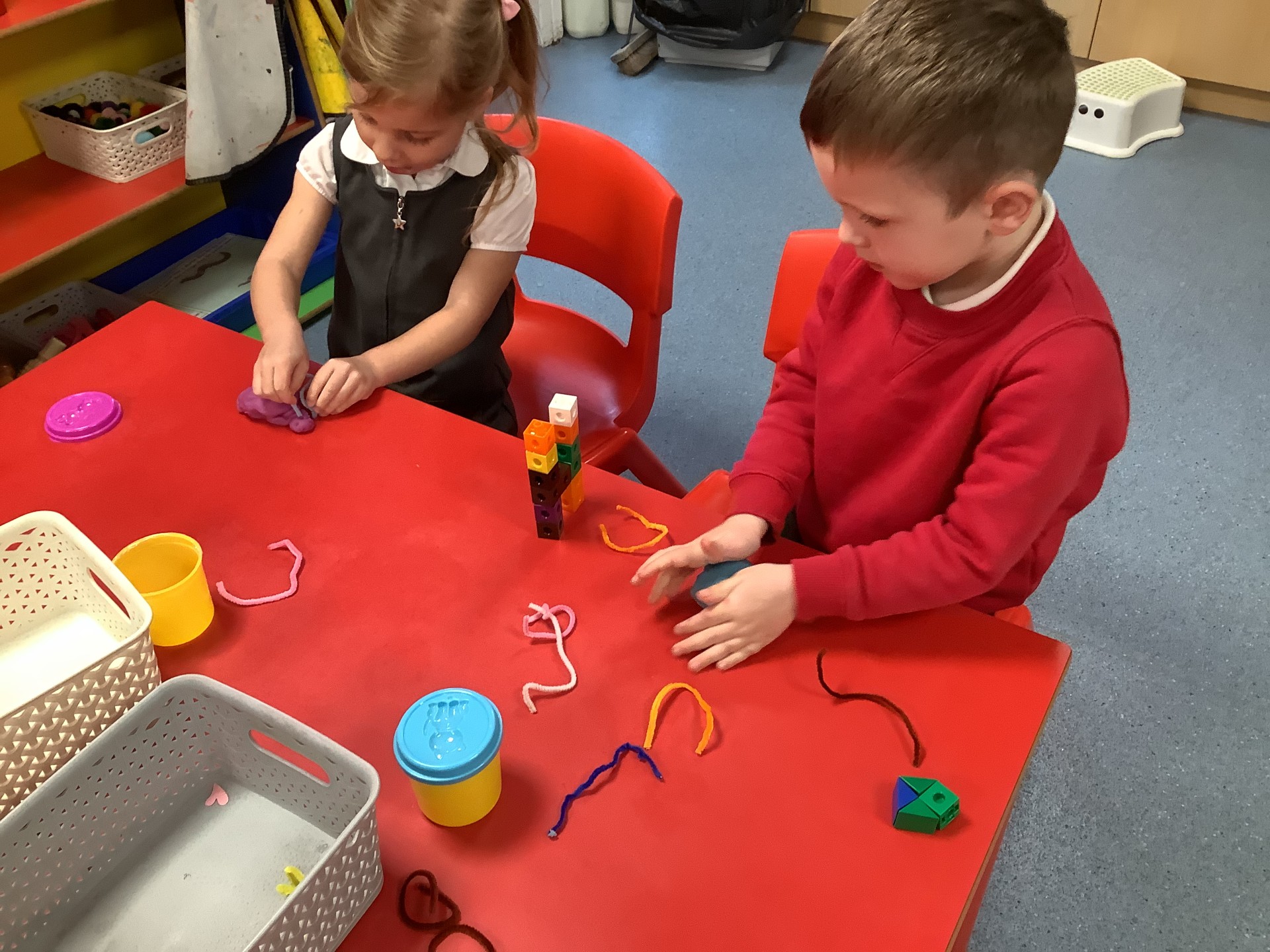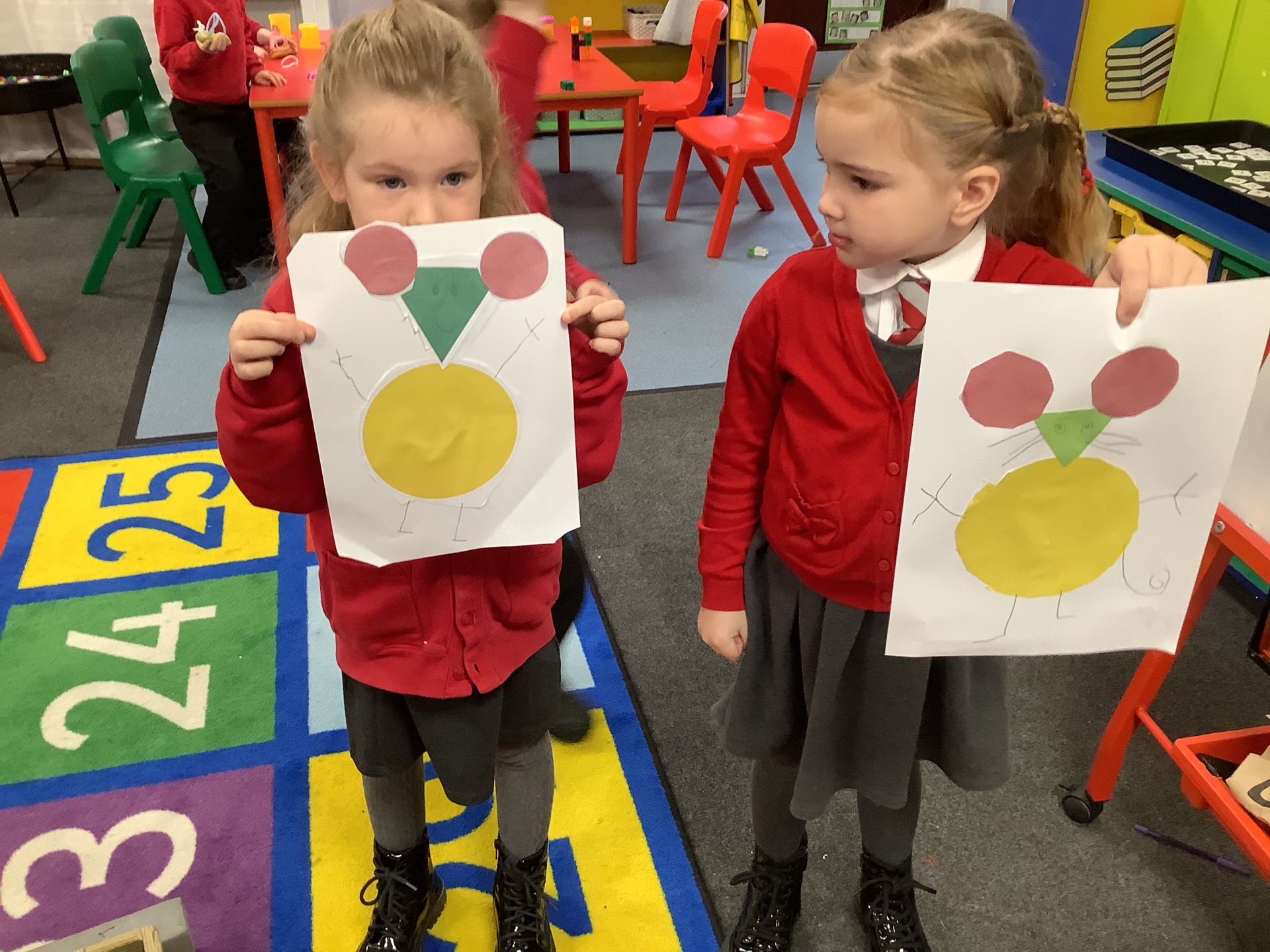 We love a spooky story in Wren class so we got really excited to get stuck into our learning. We had wind up mice that whizzed around and landed on a CVC word which we had to read, We made playdough mice, we made mice in maths using circles and triangles and talked about the properties of the shapes as we worked and in construction we made dark houses and staircases.