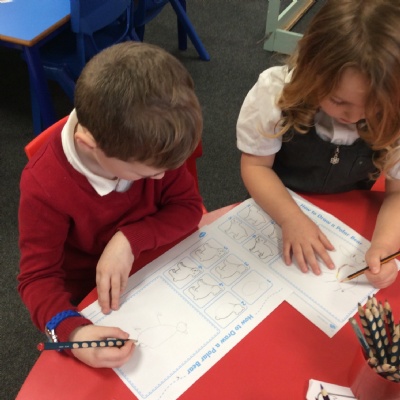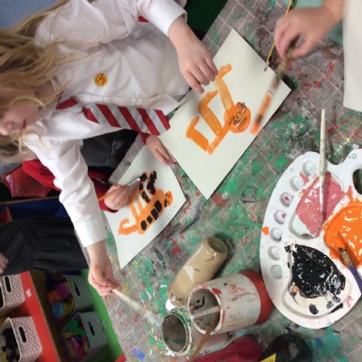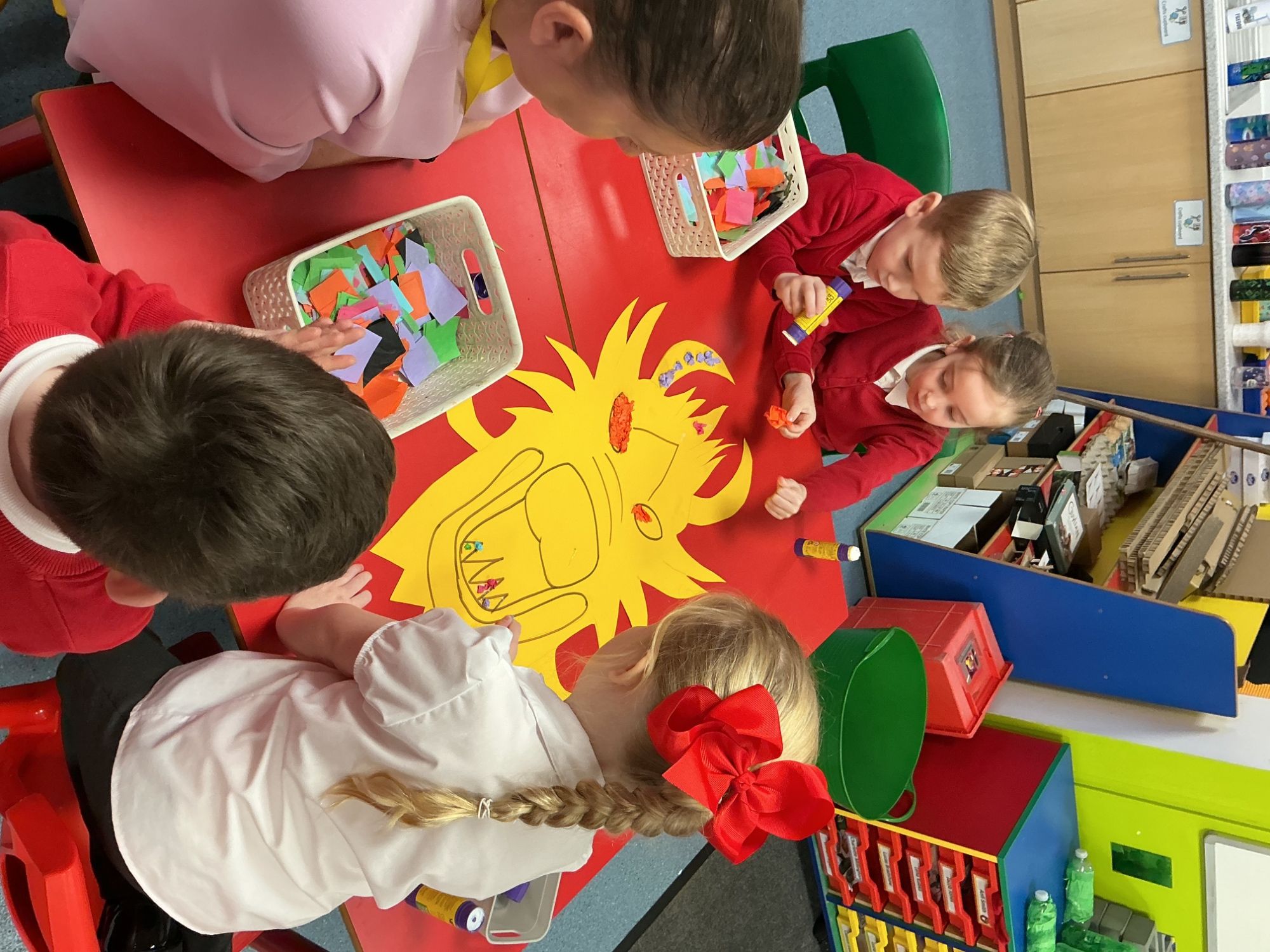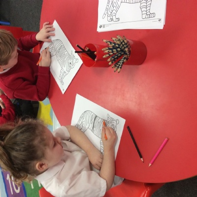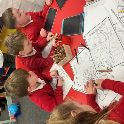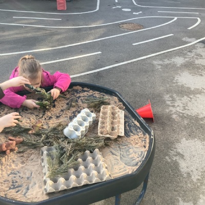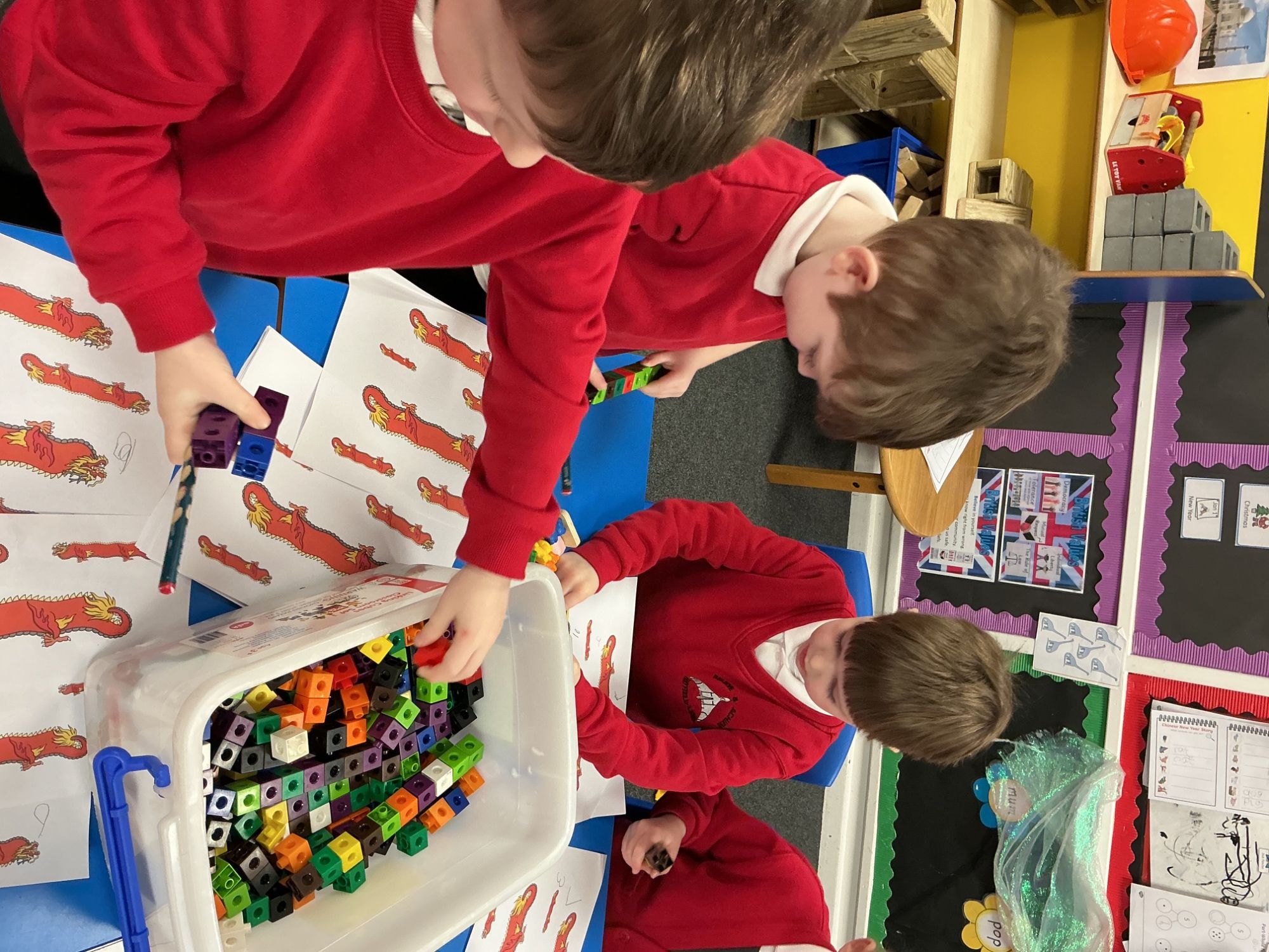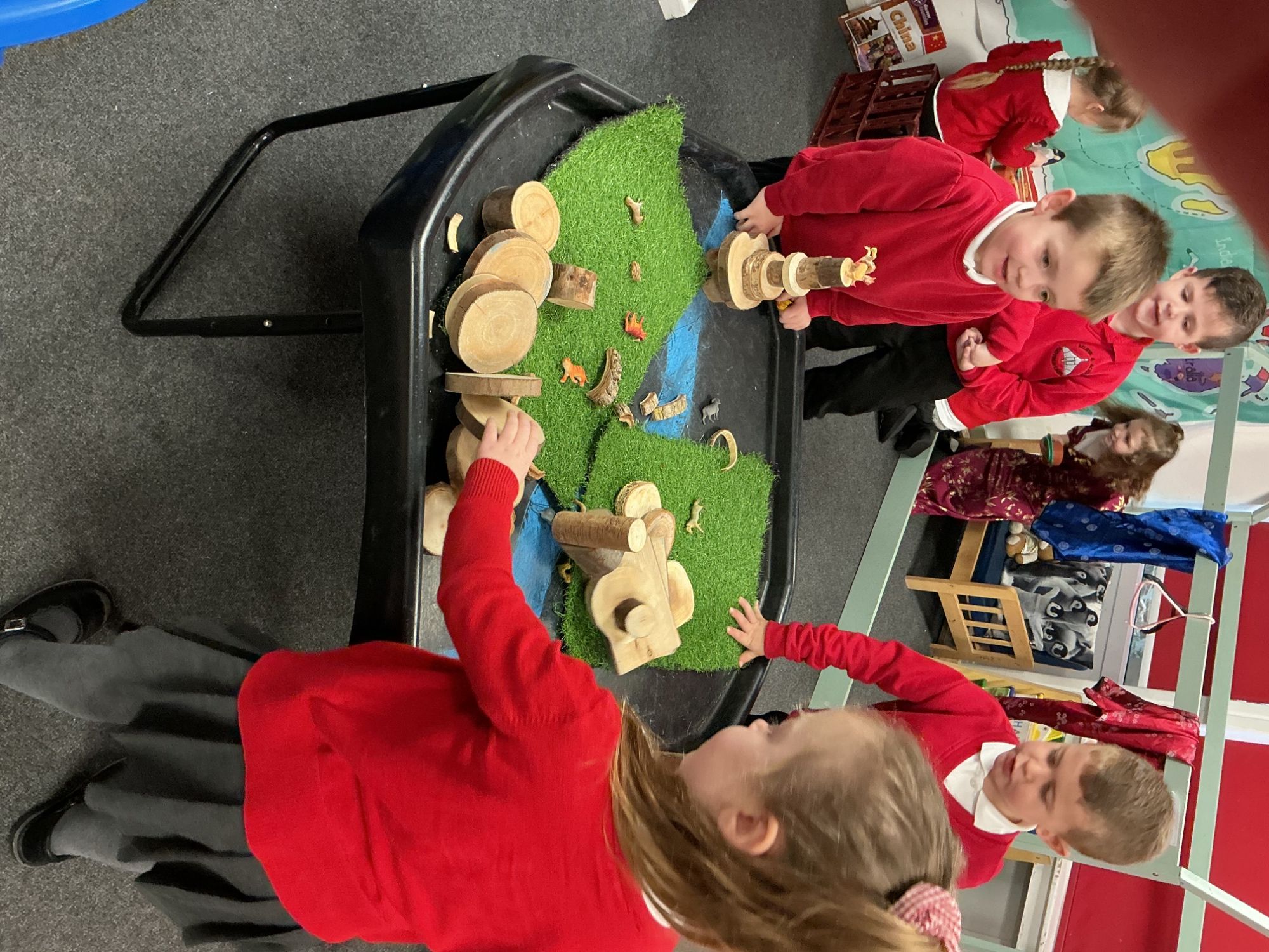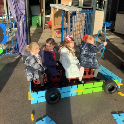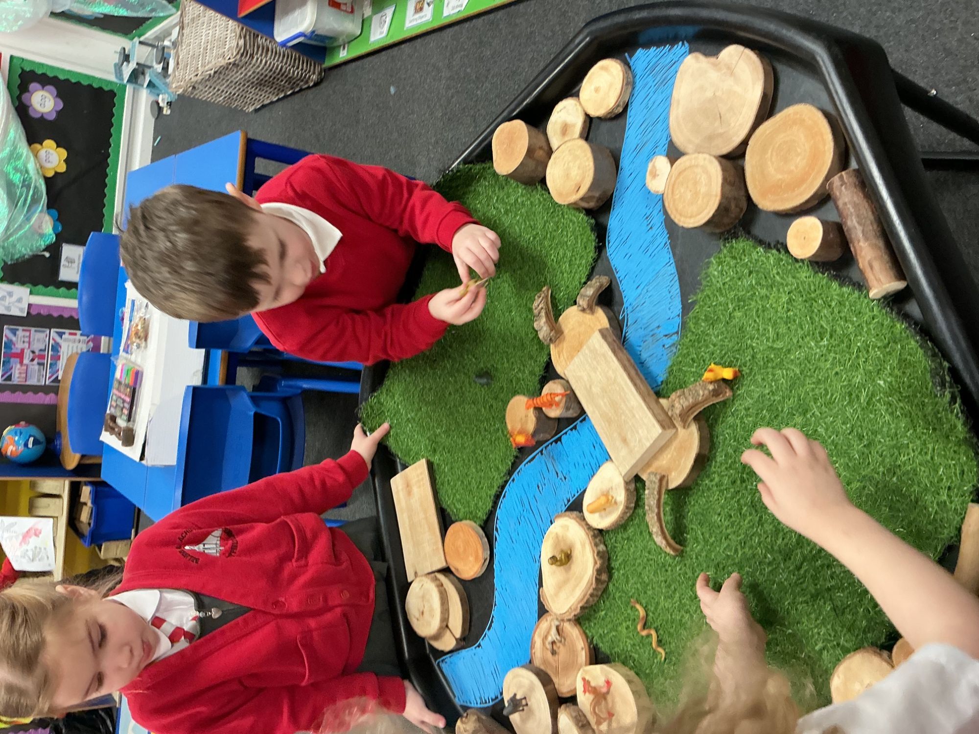 This week has been a 'Drawing Club' week and we have been reading the book 'Dinosaurs Don't Draw.' We have been imagining what we would like to find in the magical cave (Mrs Nottage wanted it to be filled with boxes of chocolates.) We also created a way to scare away the T-Rex and invented interesting objects to draw with. Inside, we have been creating dinosaur worlds and outside, we've been making jeeps to go on a dinosaur safari and magical caves where the dinosaurs live. We've been digging for dinosaur bones and carefully walking on the bridge over the volcano.