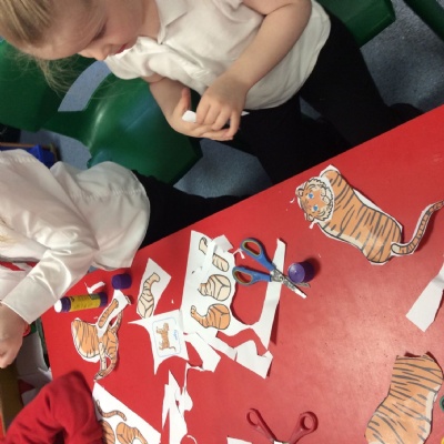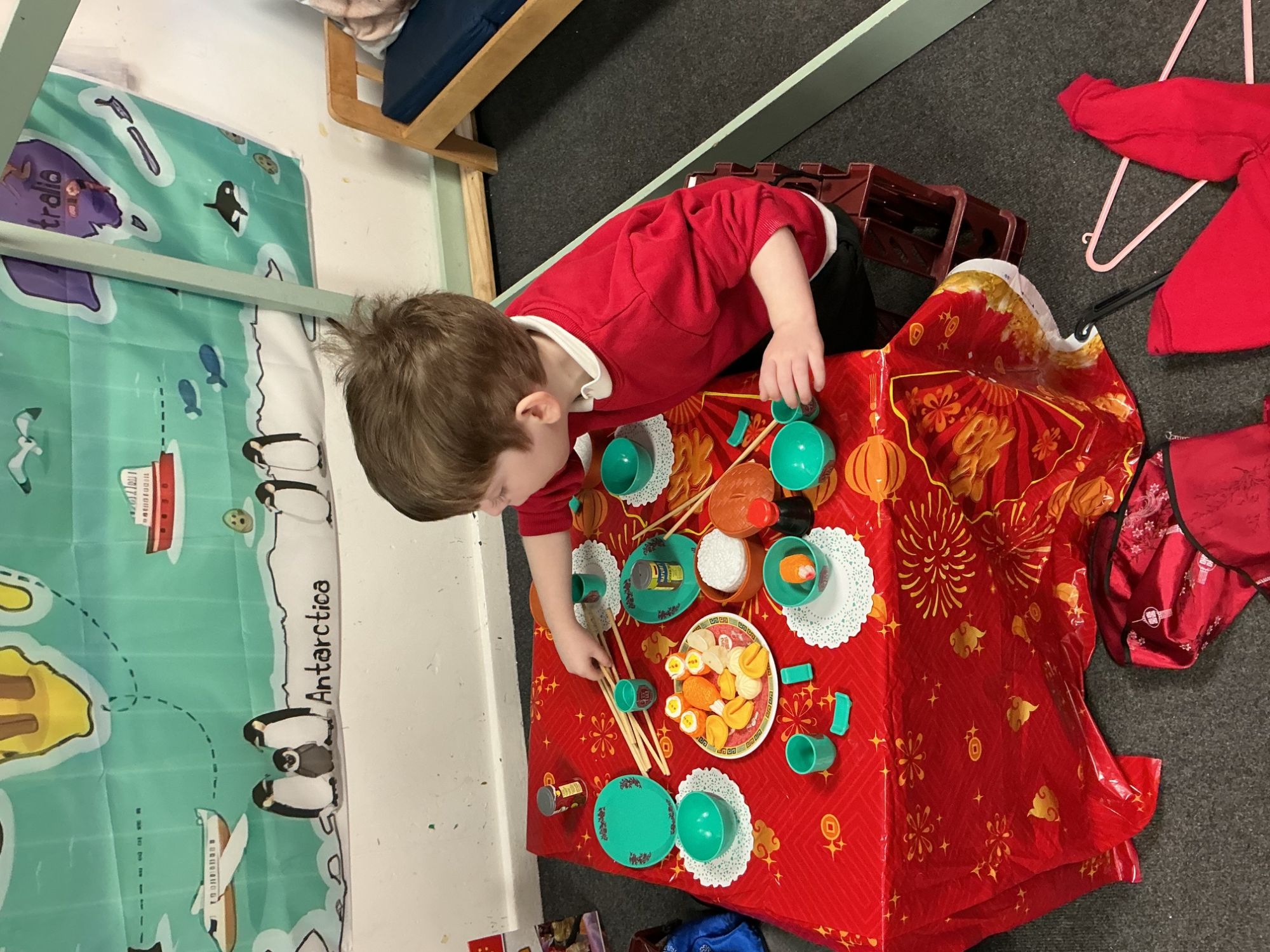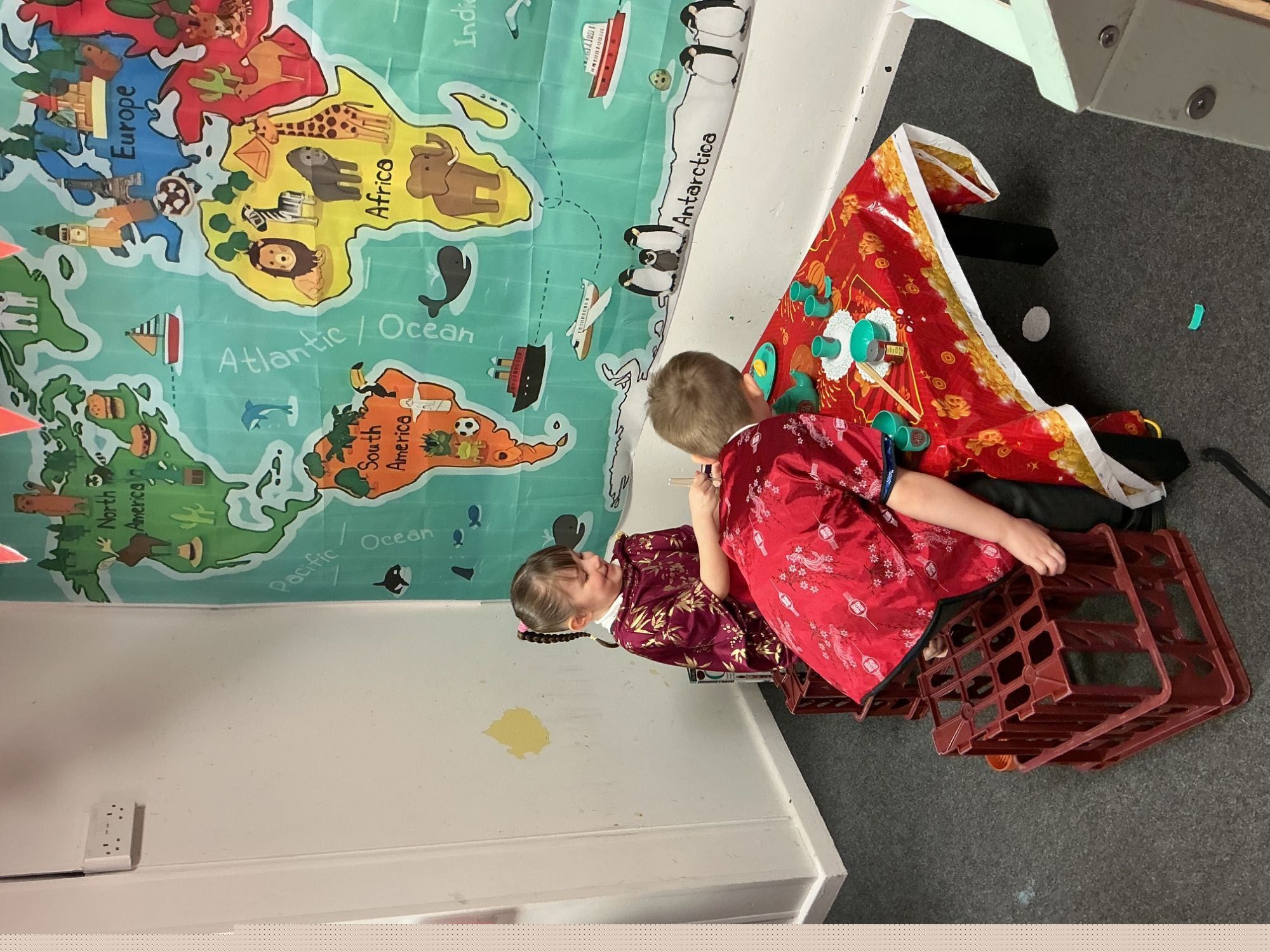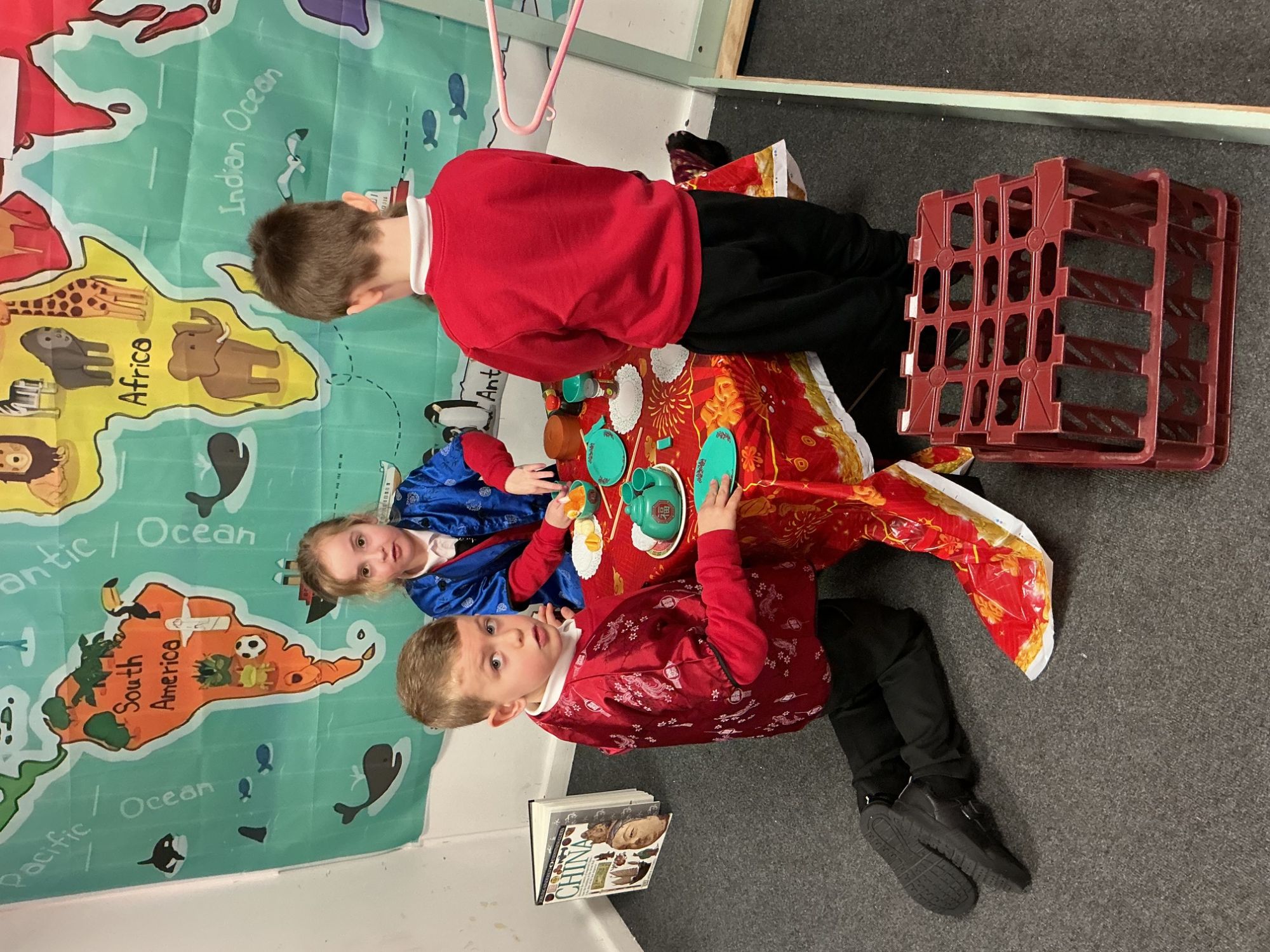 We finished our topic by looking at how Chinese New Year is celebrated. We looked at the story 'The Great Race' which explains why each year belongs to a different animal. We then made our very own Chinese restaurant and decorated our classroom with red lanterns, which is a lucky colour in China.