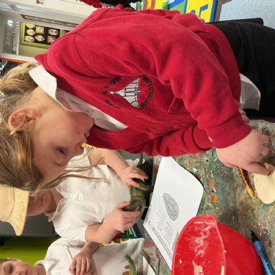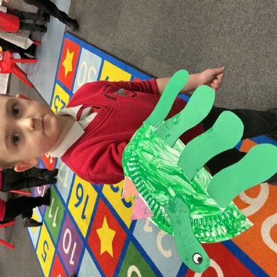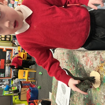 This week we have continued our dinosaur theme in preparation for our visit to the museum on Tuesday. We have leant about the job of a palaeontologists, and had a go at finding our own dinosaur bones and fossils in the sand. We have learnt all about fossils and even made our own. Look at our fanatic dinosaur feet!