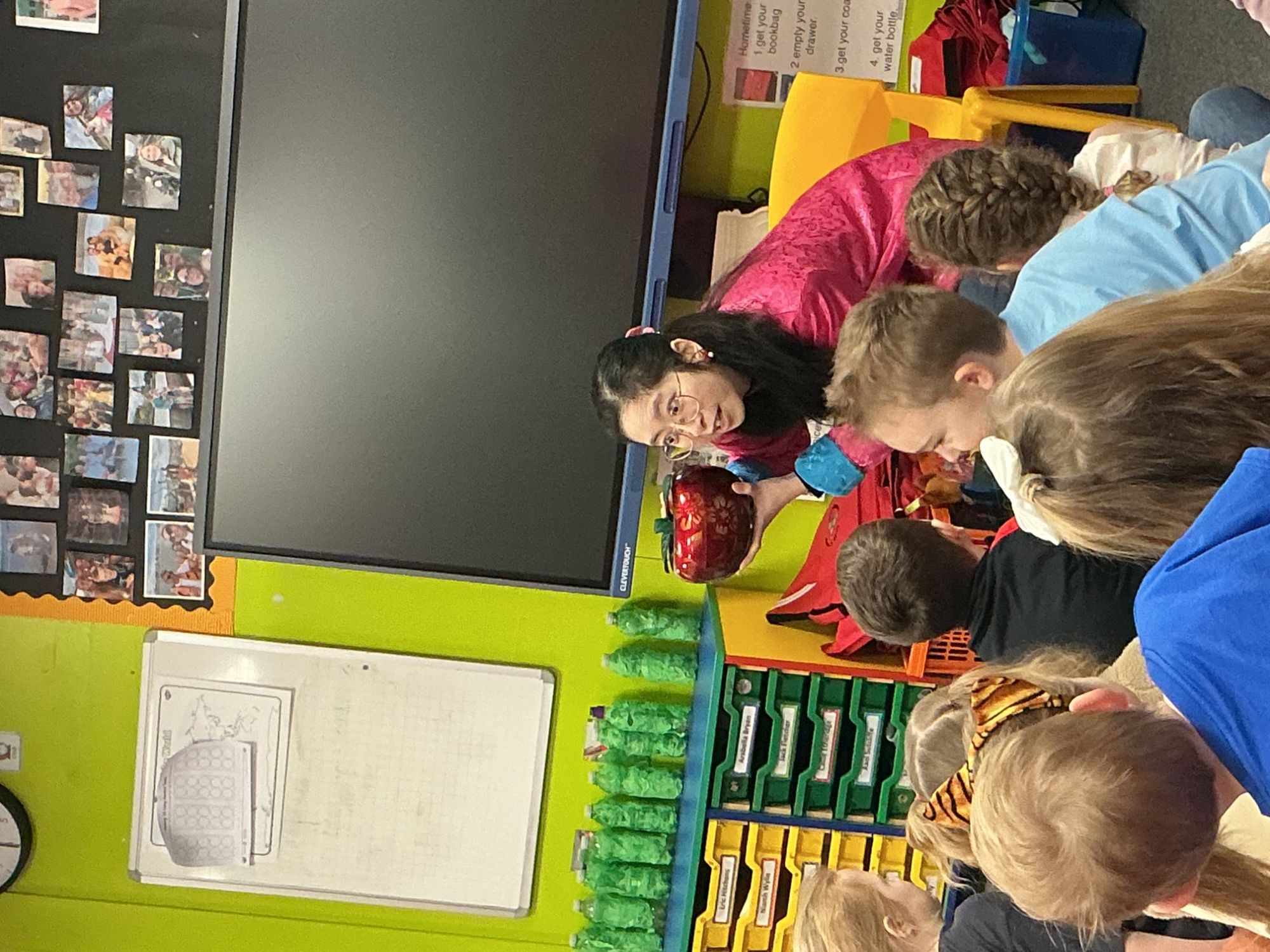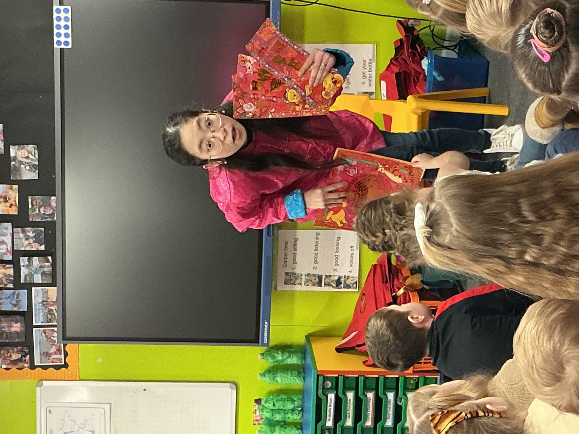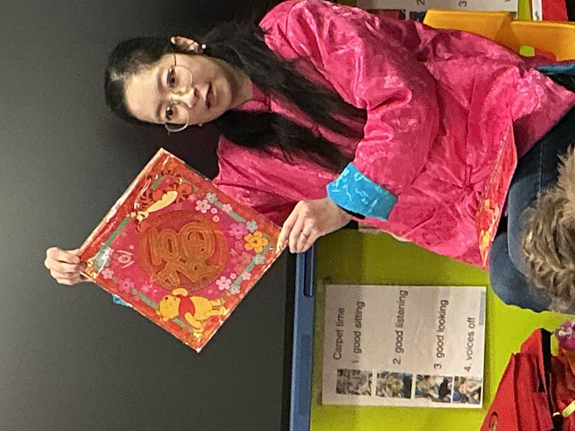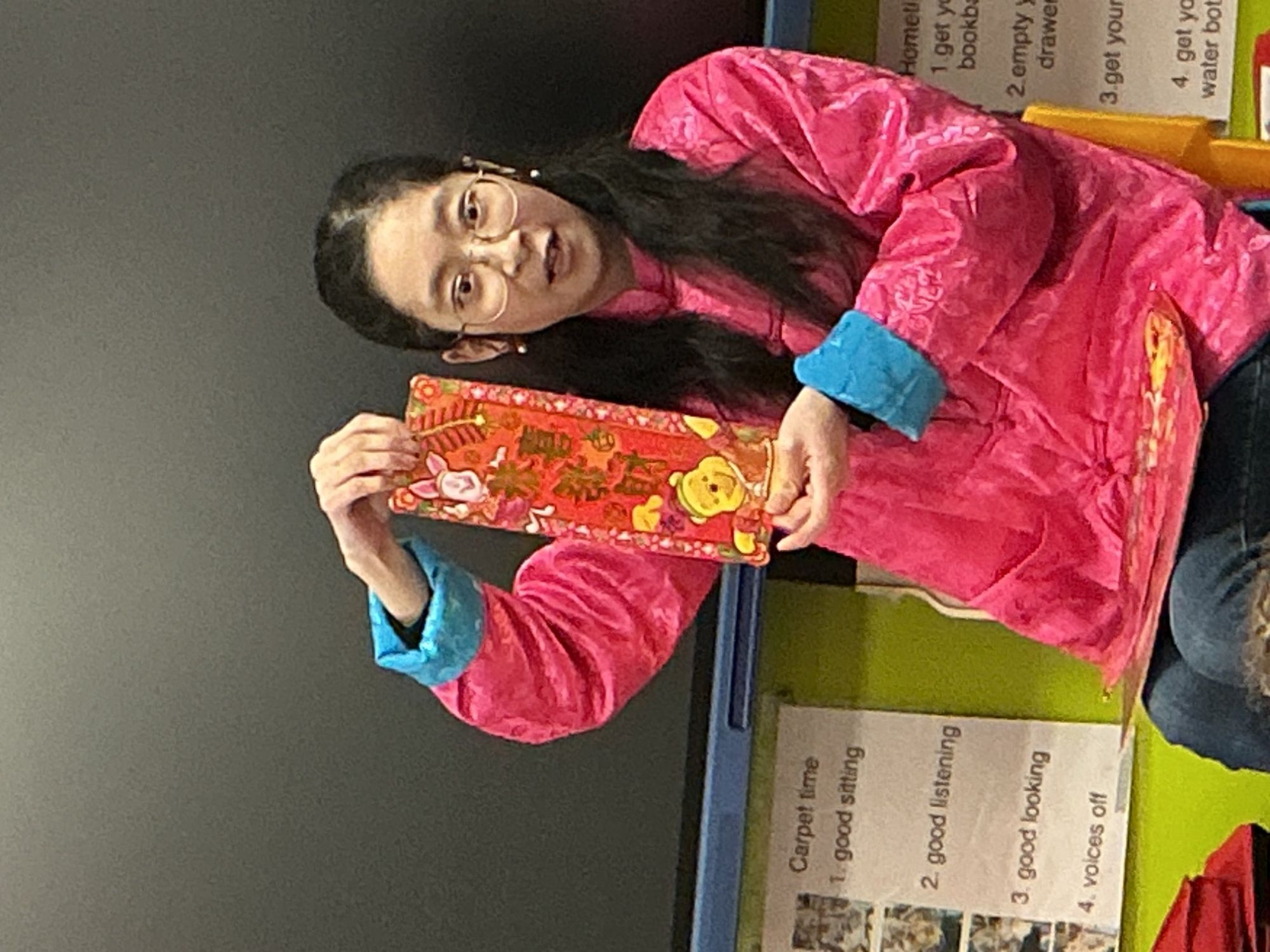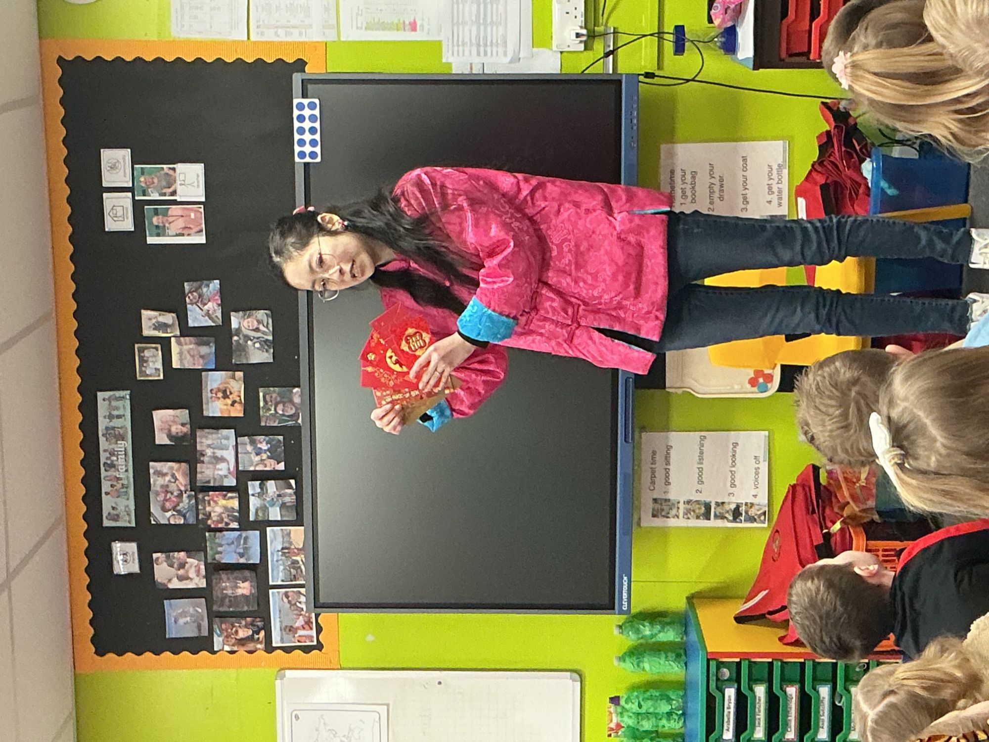 We were then lucky enough to have a visit from Lok Yins's mum who came to talk to us about Chinese New Year and show us lots of exciting things.