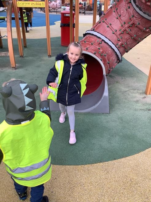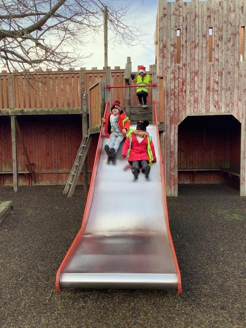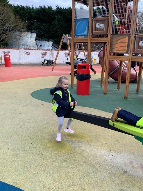 We had so much fun in the ranch adventure playground. We went up and down slides climbed to the top of the fort . We also balanced on the see saws.It was great fun.