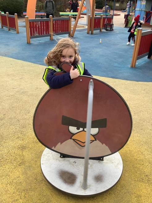 In Angrybird land we had lots of fun on swings, slides roundabouts ,we even went on some spinning teacups we got quite dizzy!!