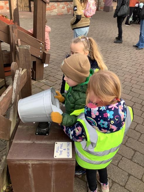 We followed the yellow brick road to story land where we visited lots of houses. We saw the Three Little Pigs house, Red Riding Hoods, The Three Bears and Goldilocks, The Frog Prince and many more fairy tale houses.