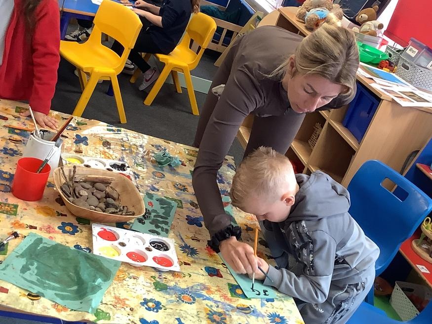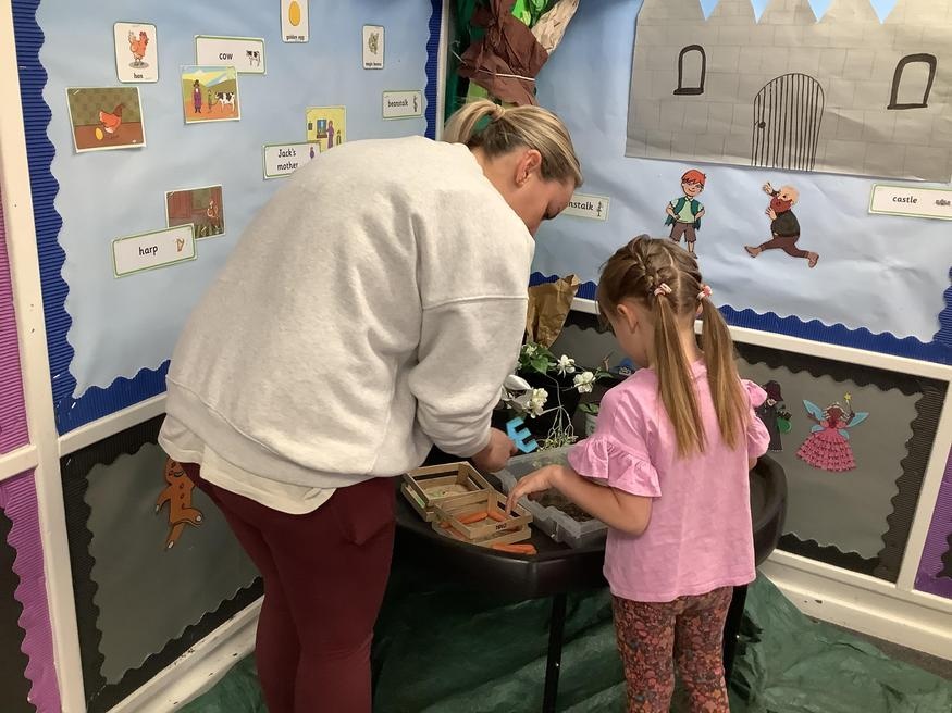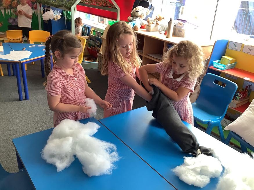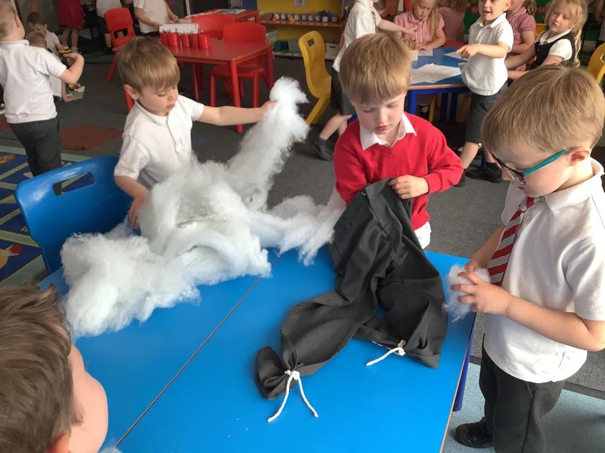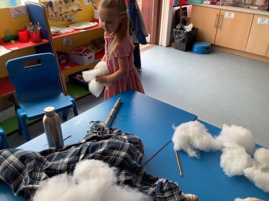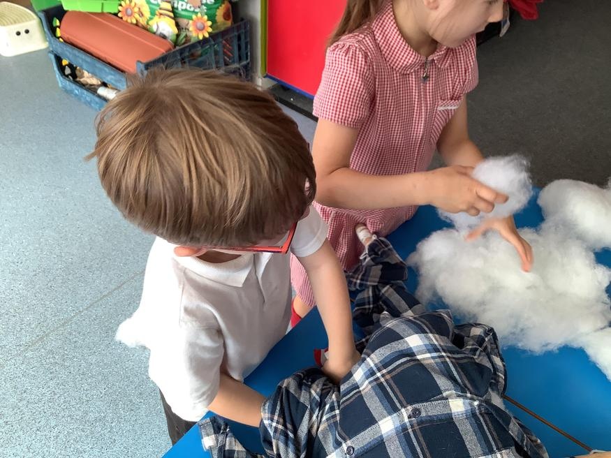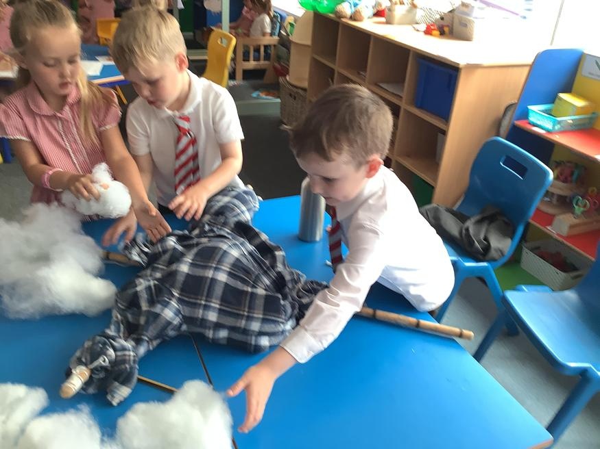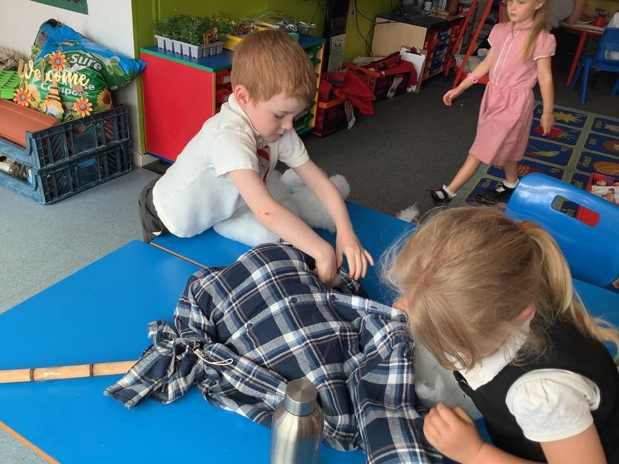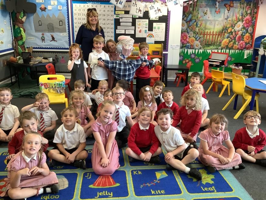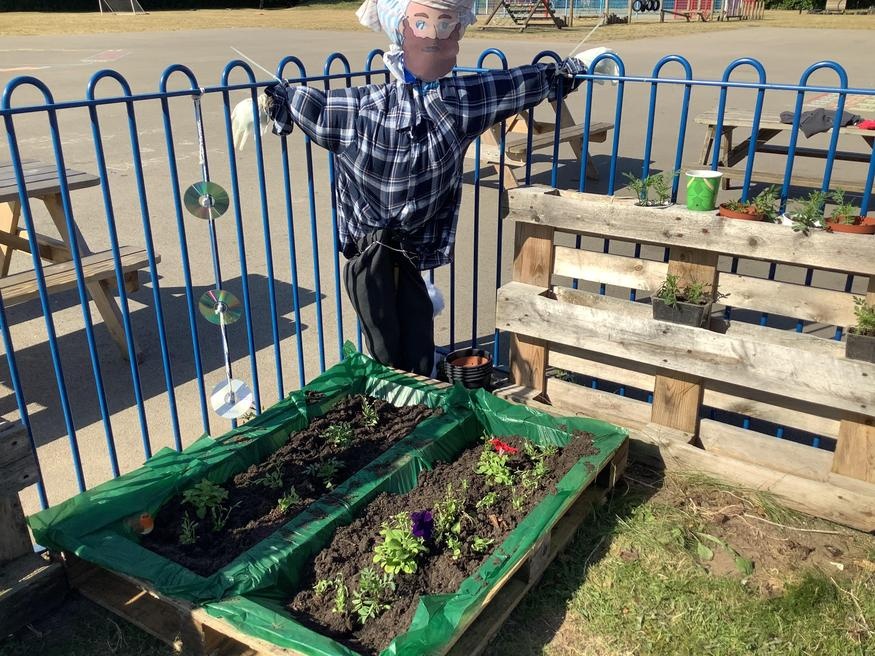 Wren class have made a class scarecrow to help keep our seeds safe when we plant them. We all stuffed him with lots of stuffing ,we used our Giants mask from Jack and the Beanstalk for his face. We then decided on a name and we voted for Syd. So introducing ‘ Syd the Scarecrow’ made by Wren class.