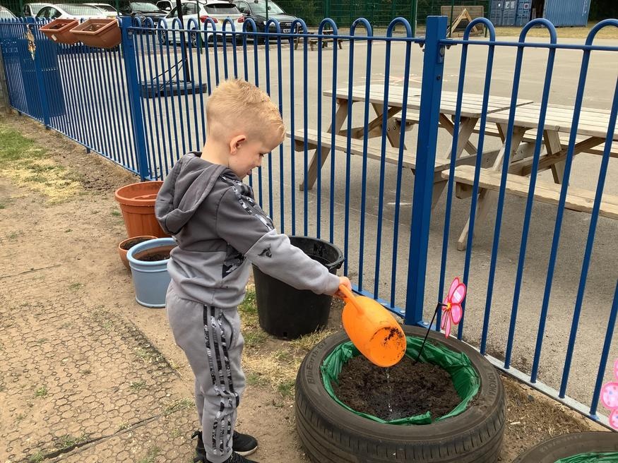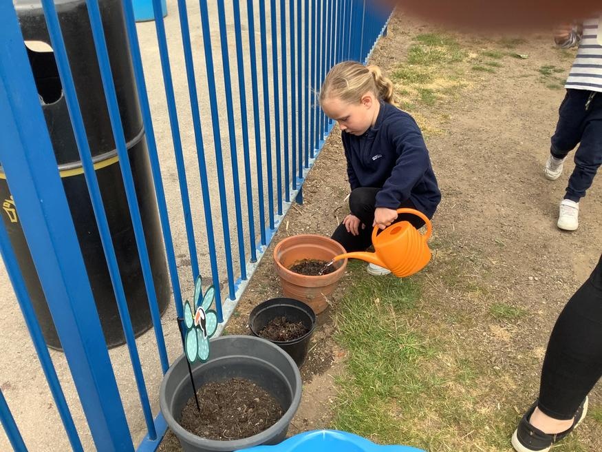 To start our ‘Groovy Gardeners’ week we were very lucky to go and visit Mrs Neal’s amazing garden. We looked at the beautiful flowers and fantastic pond. We were able to ask Mrs Neal lots of questions about the flowers. We also saw lots of insects including butterflies on the flowers, bees collecting pollen and some beautiful dragonflies hovering over the pond. We came back to school with lots of ideas for our garden.