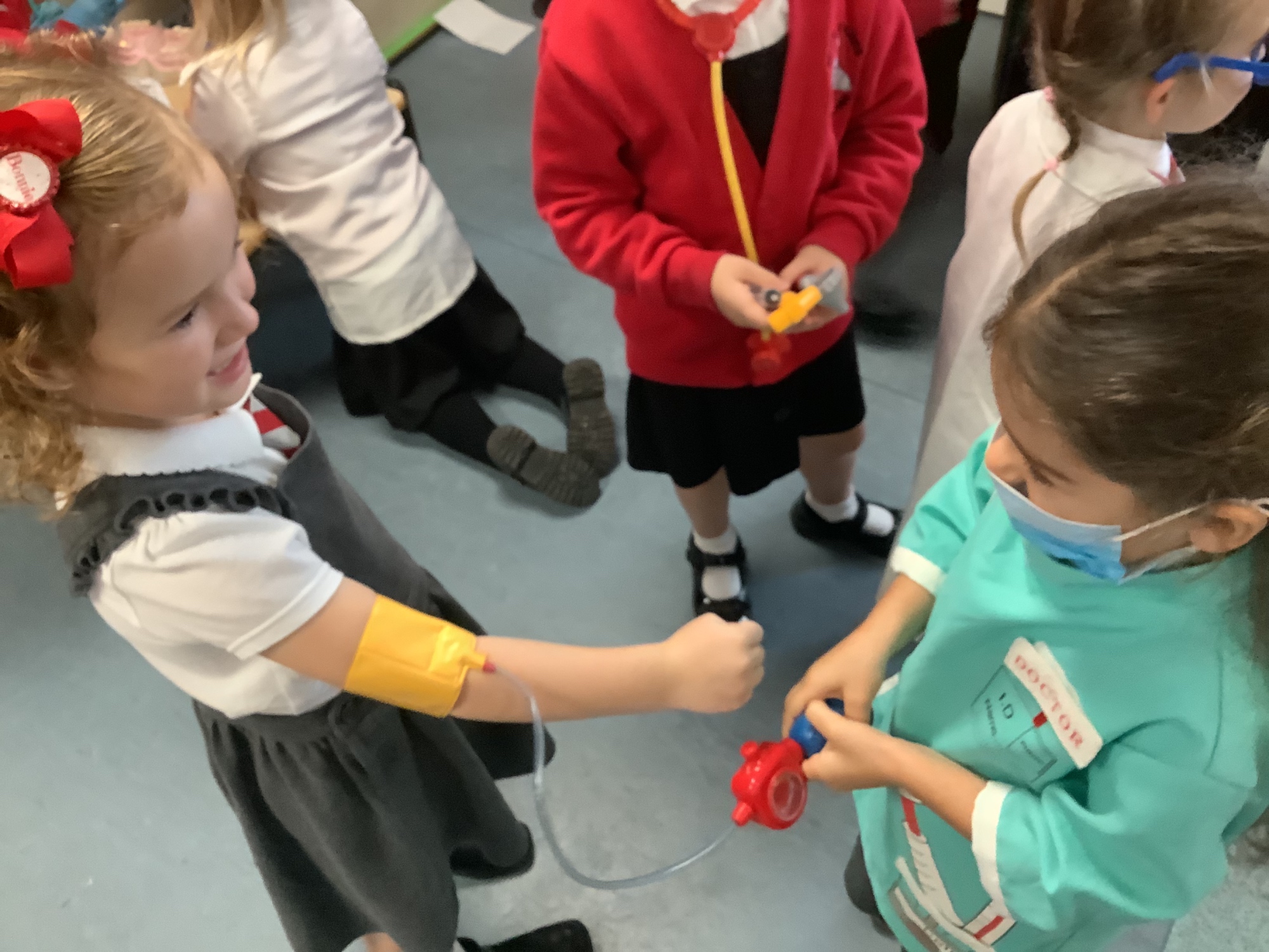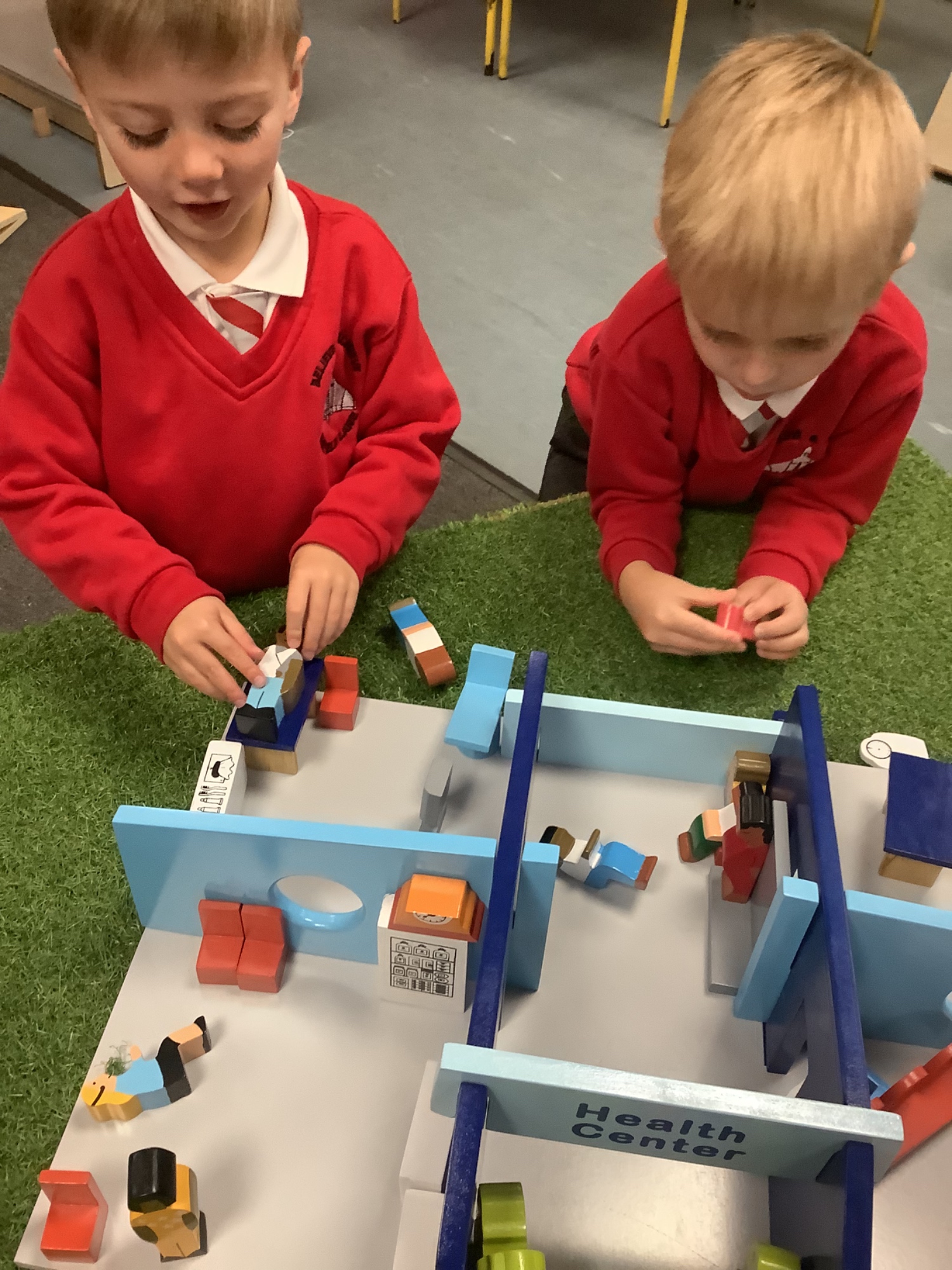 We are very excited to have a mini hospital, and children have been very involved in healing each other, and role playing in the small world health centre!