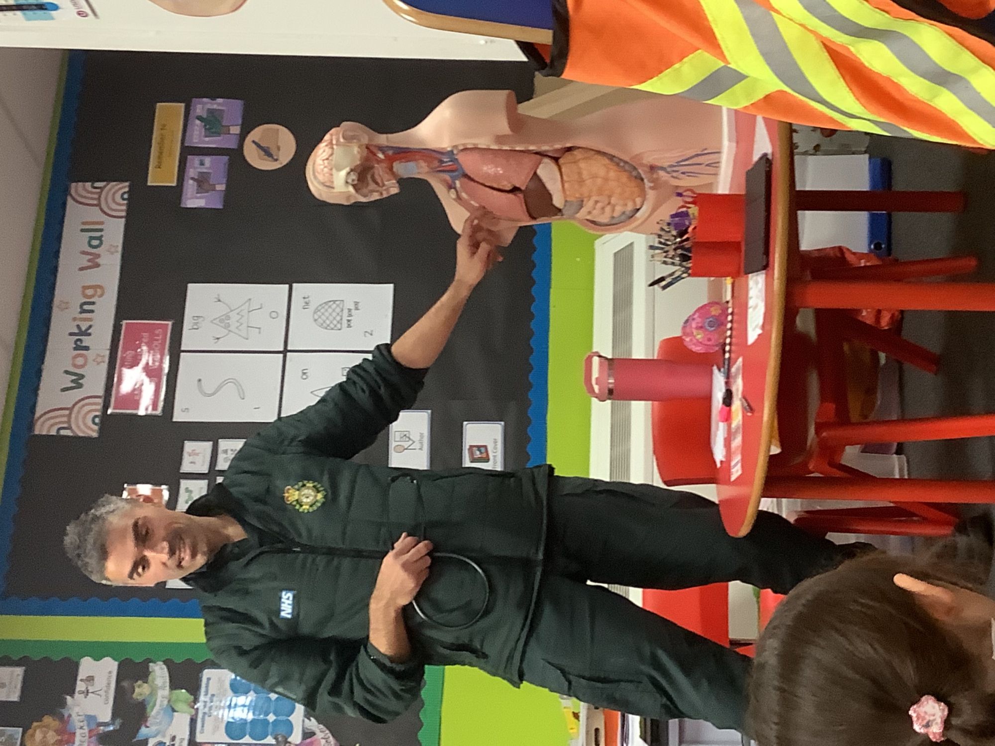 We also had a visit from another parent who is a paramedic! He talked about his job, and children again asked lots of questions to find out what they wanted to know.