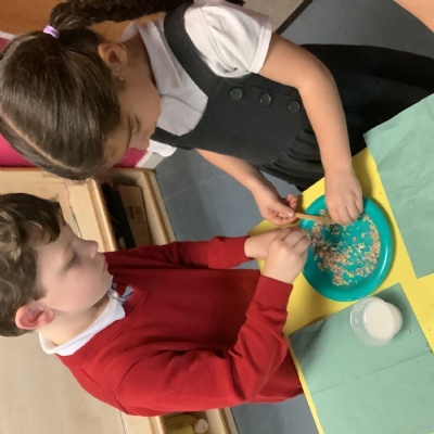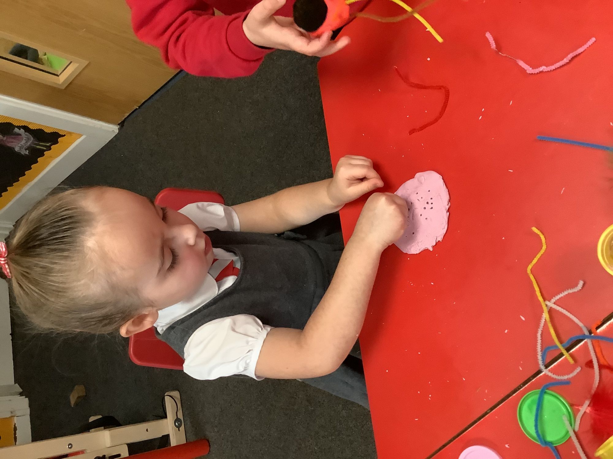 We explored different celebrations, making birthday cake in Play-dough, making candles in creative area and creating towns and trick or treating in the small world!