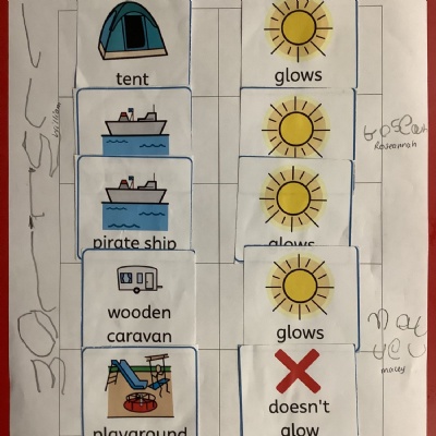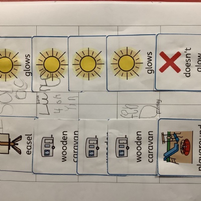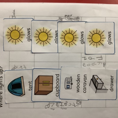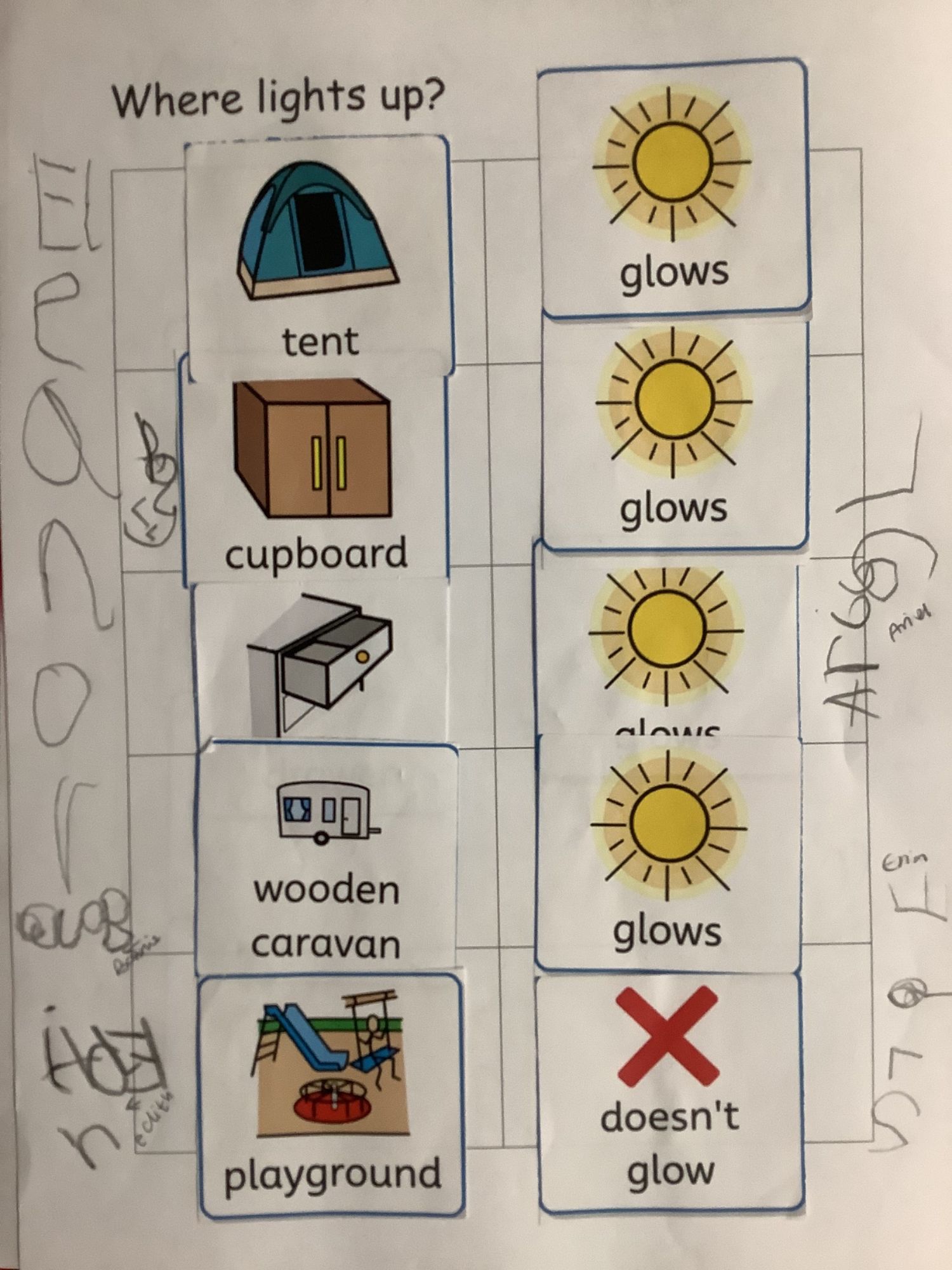 In groups we each predicted where we thought it would shine brightest, went to find out, then came back and recorded our findings with widget picture cards to show this.