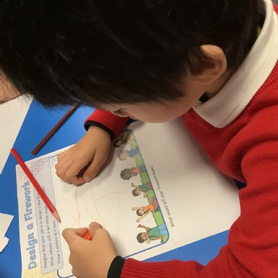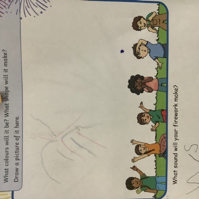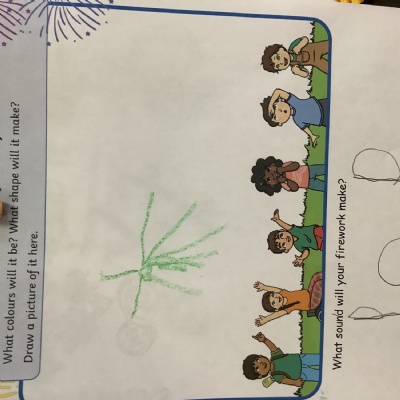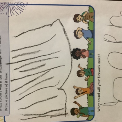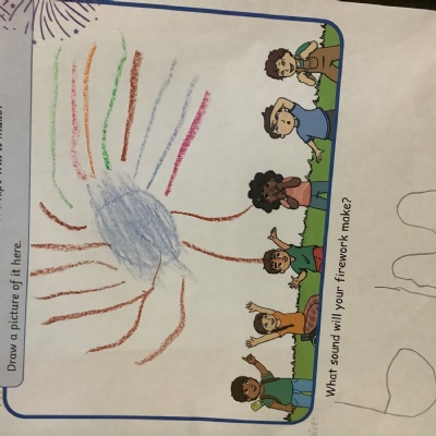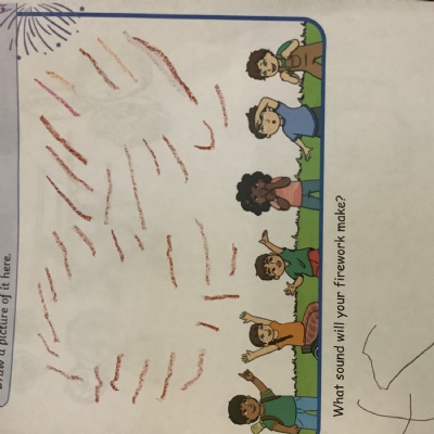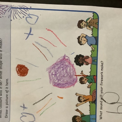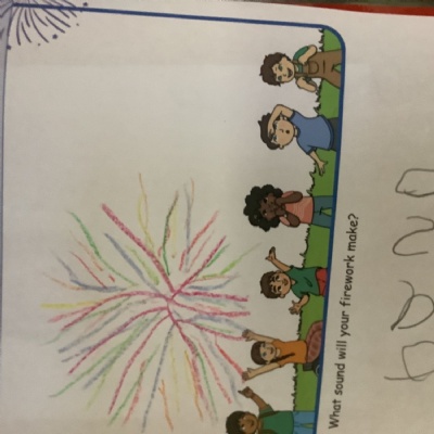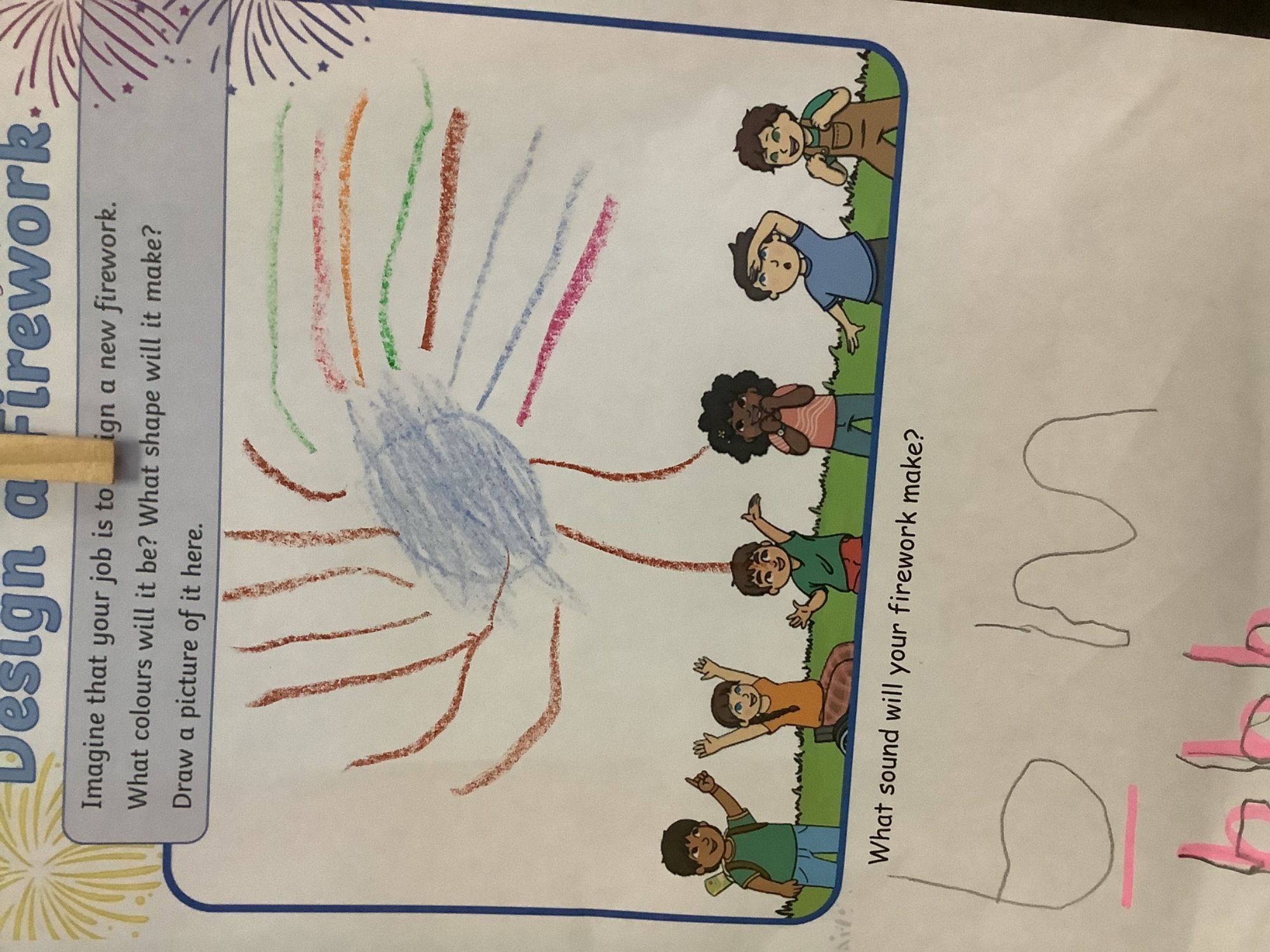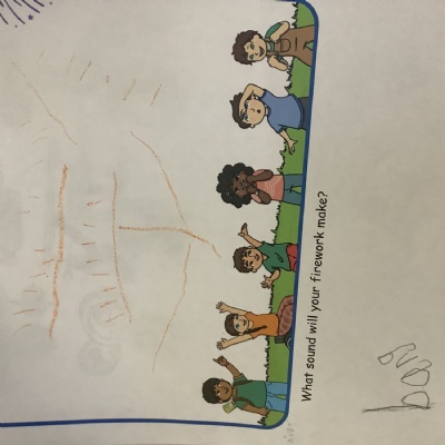 We chalked fireworks outside, designed our own fireworks and wrote the sound they made!