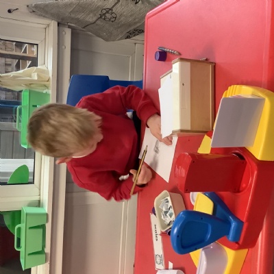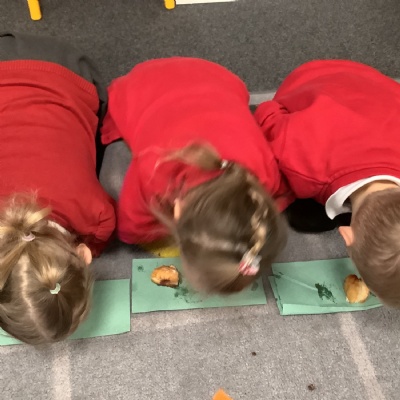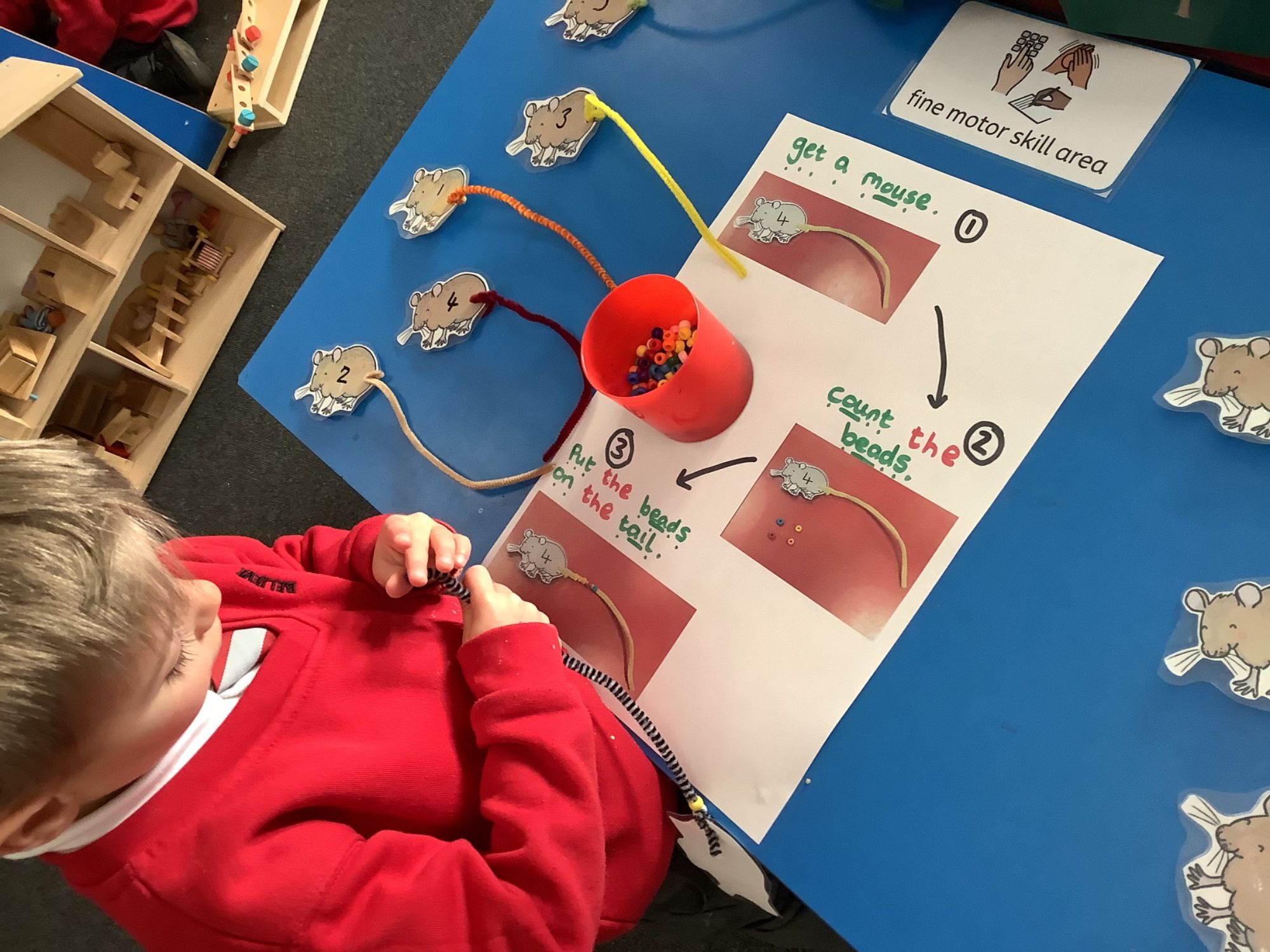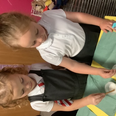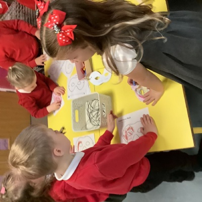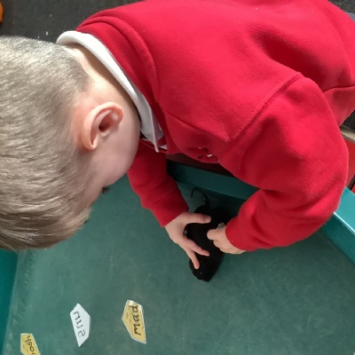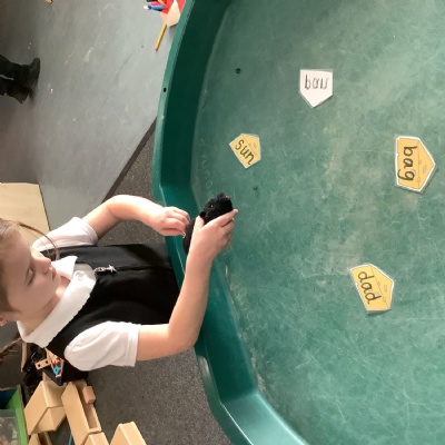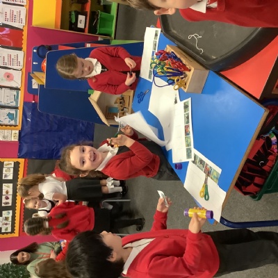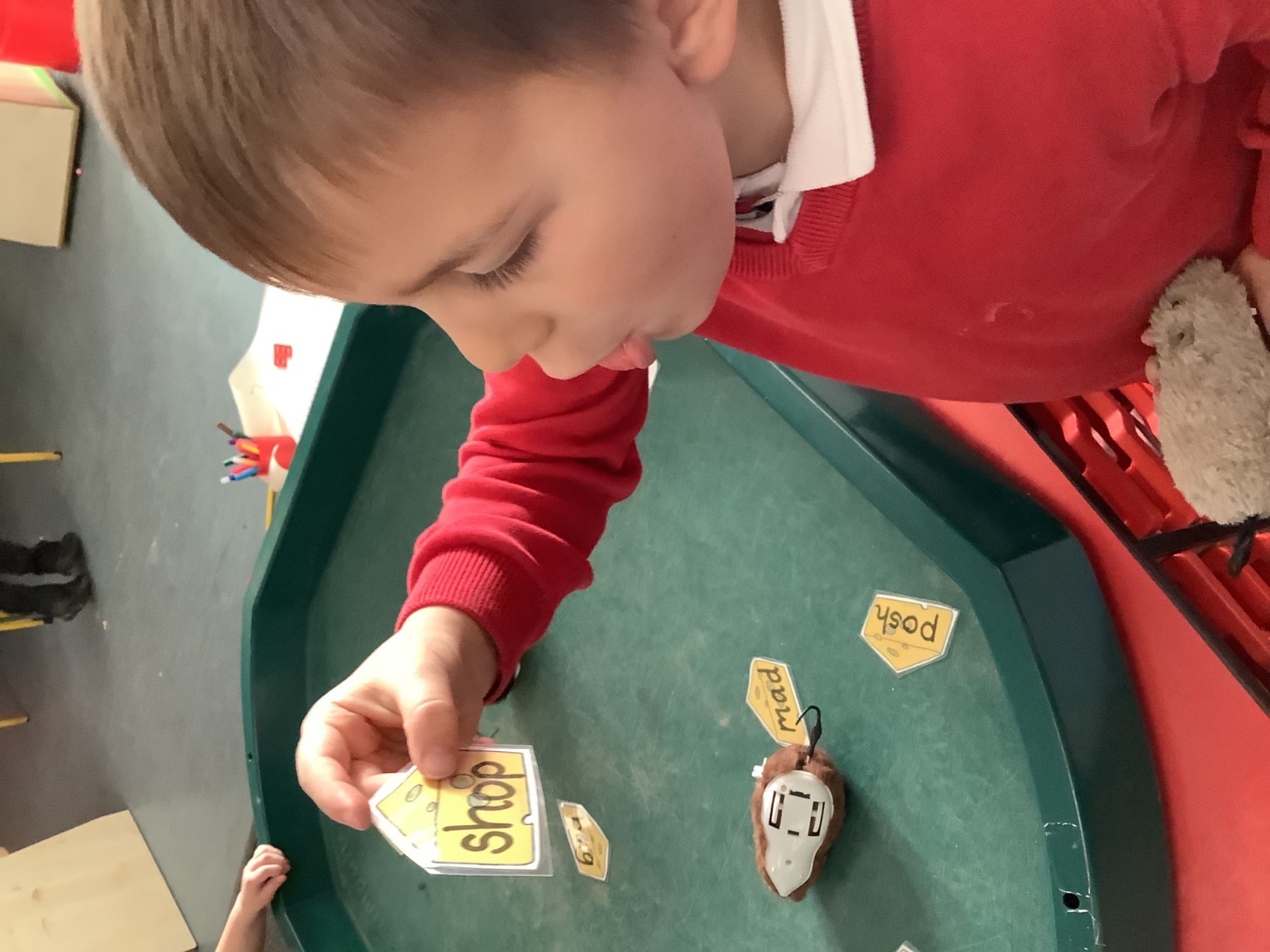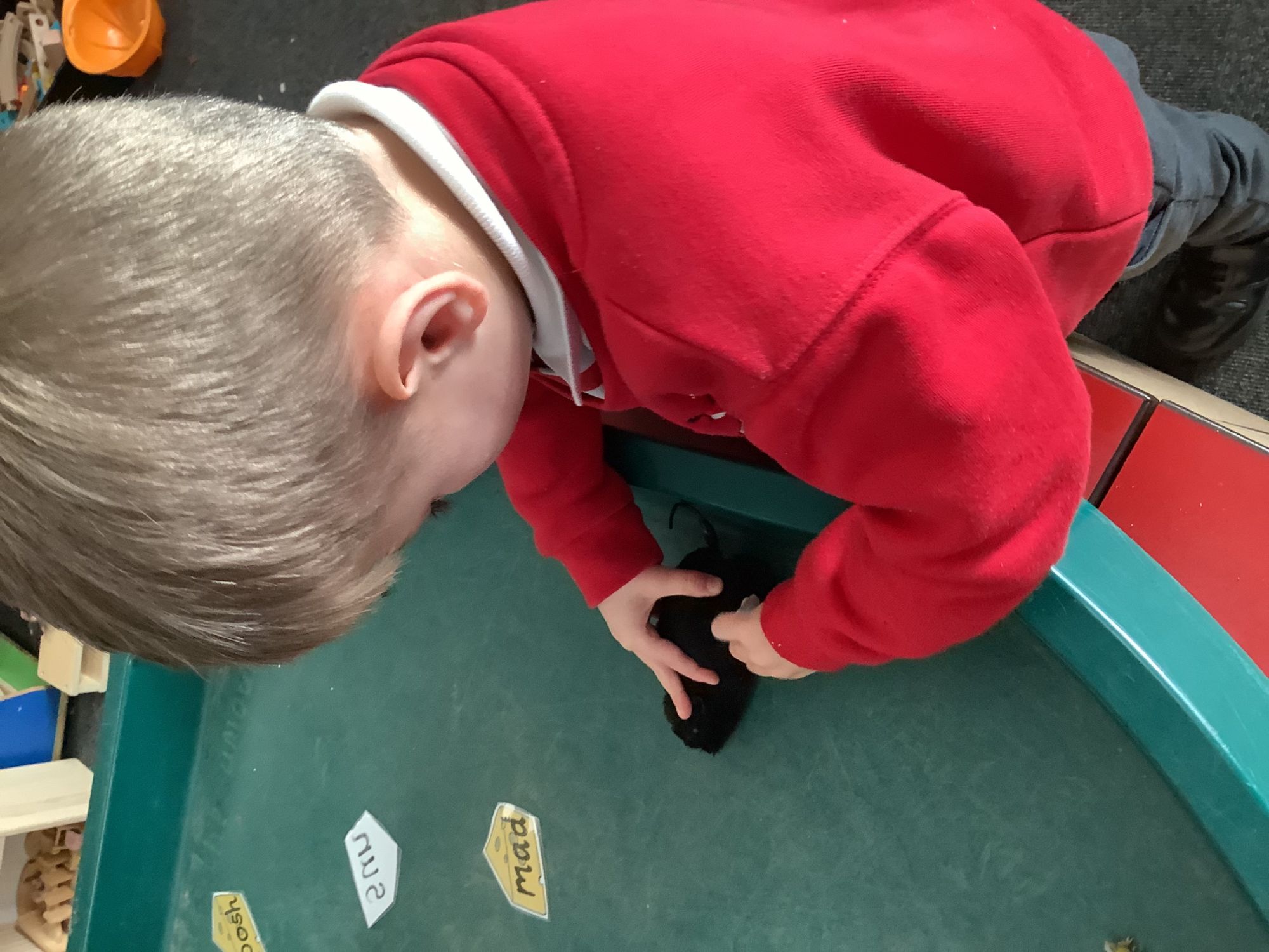 We have really loved getting into provision and trying new things! We especially enjoyed using our shape knowledge from last week to cut out shapes and make mice, and using wind up mice to get to cheese and read the cvc words on it!