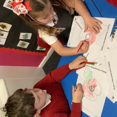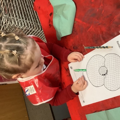 Then we thought about Remembrance Day as parades will be this weekend! We discussed wars that happened in the past a long time ago, and how we remember soldiers. We took part in lots of different poppy themed activities to think about and explore this.