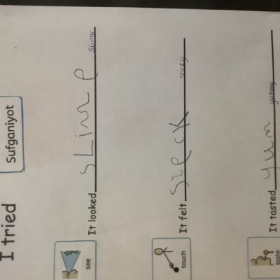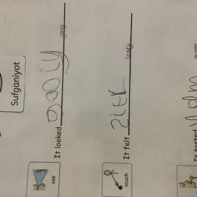What we tried were sweet, and we used great words to describe them as we thought about our senses, such as "delicious", "gooey", and "sticky".
