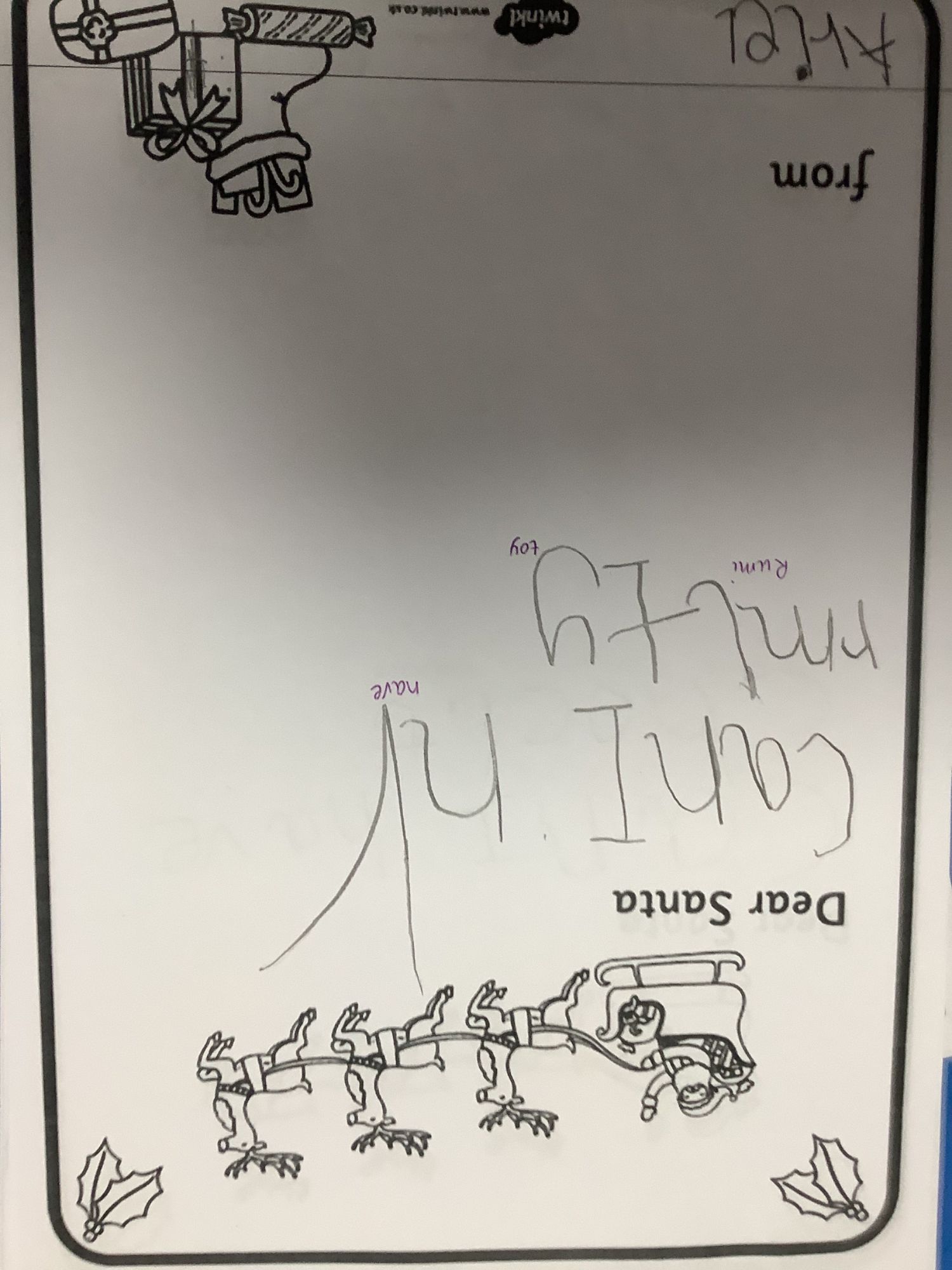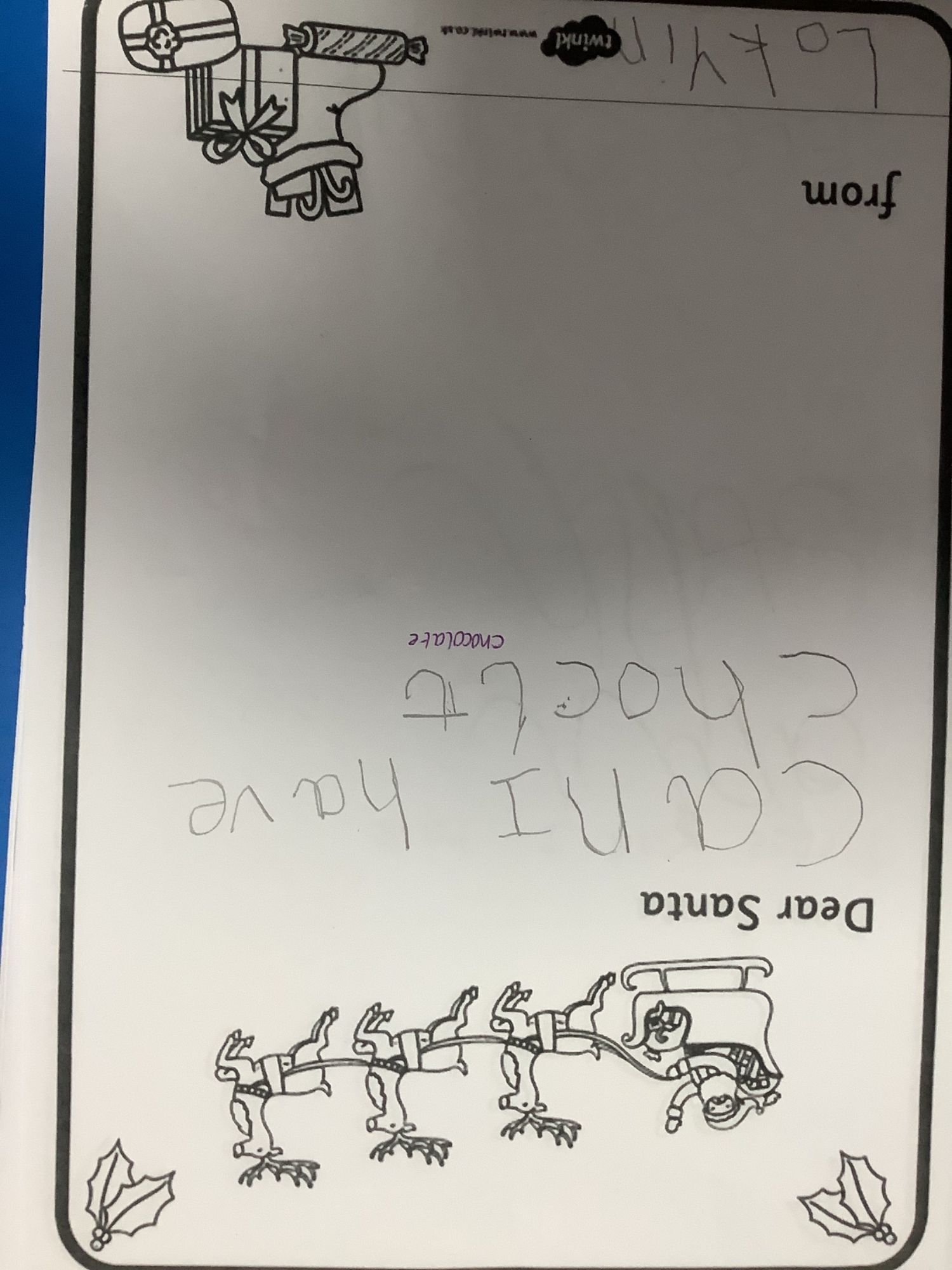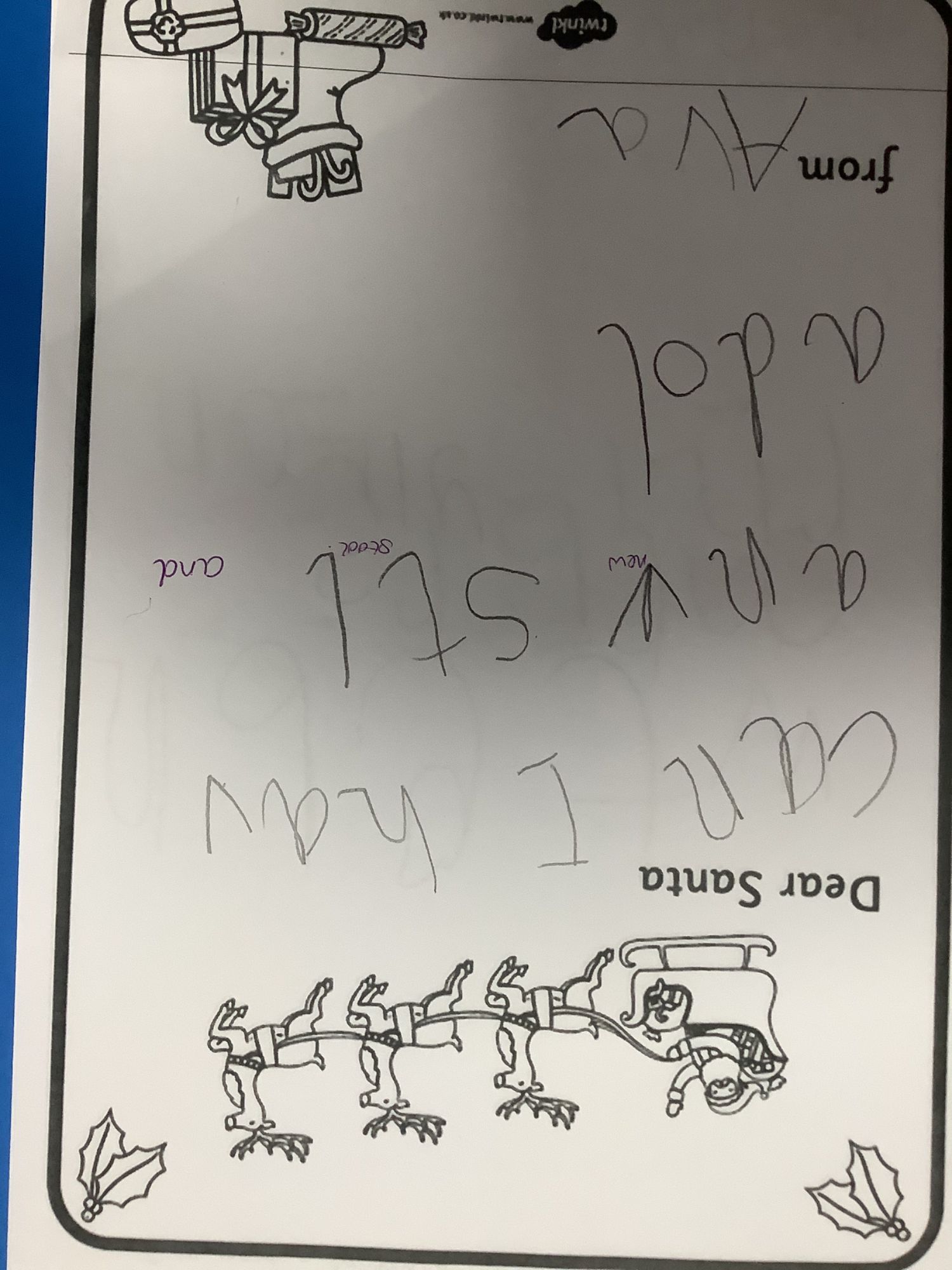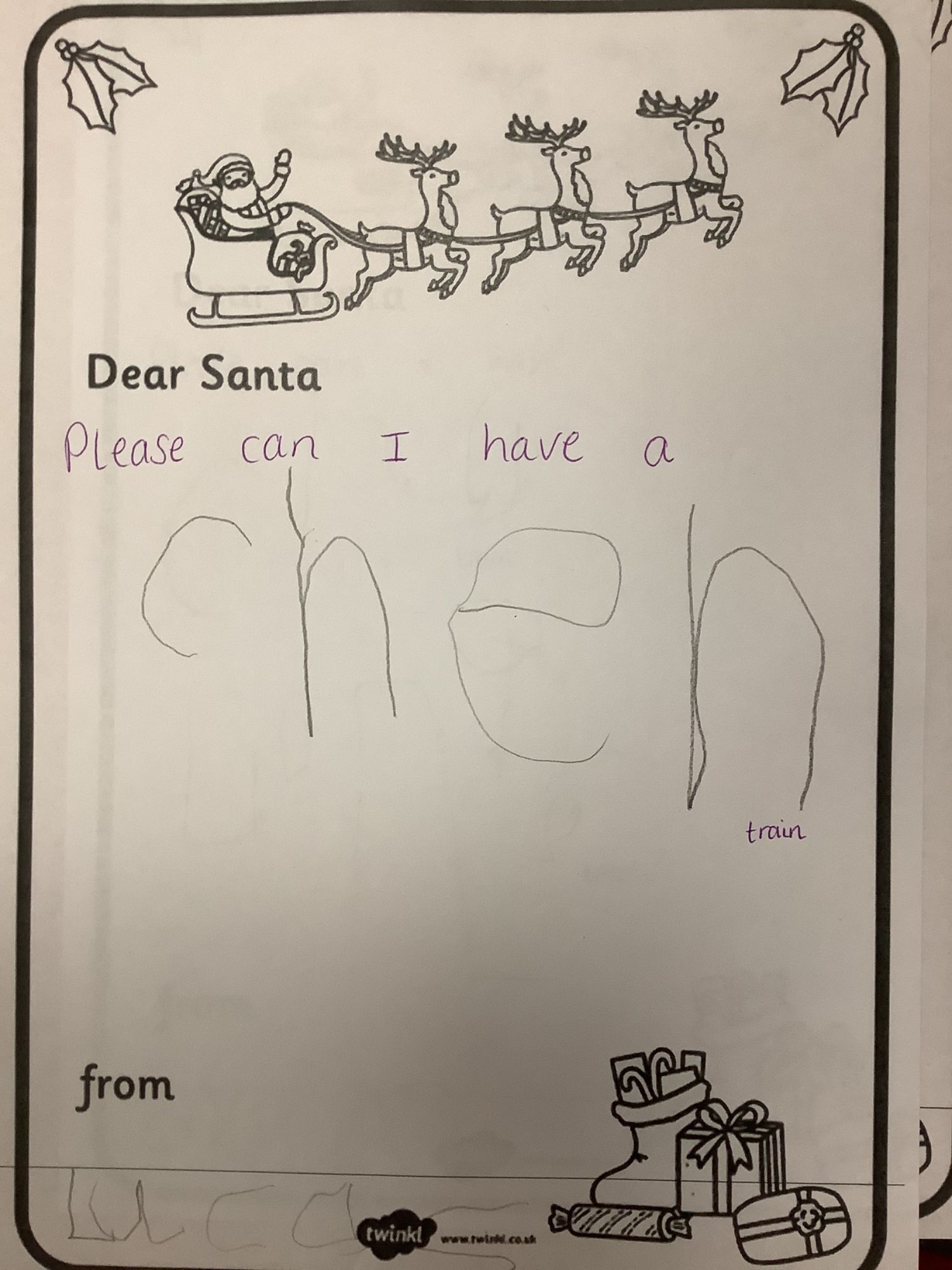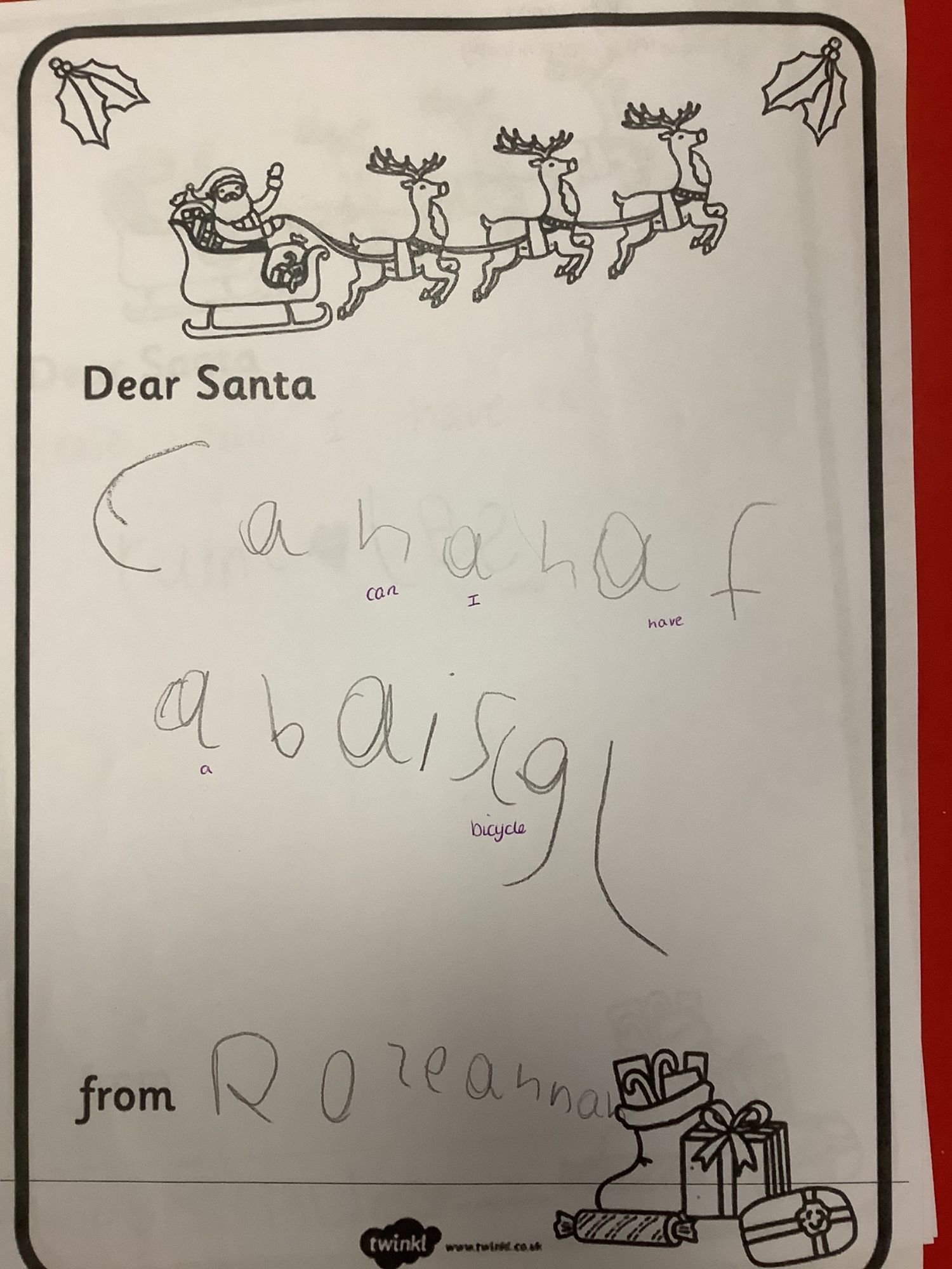 We then wrote our letters to Santa! We thought about something we would really like to ask for and then tried using our best phonic and writing skills to do this!