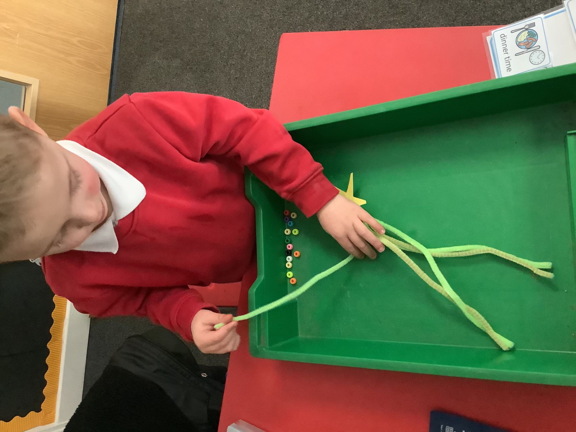 We then moved onto thinking about how. Christians celebrate Christmas, and they believe Jesus was born on Christmas Day. We looked at the Christmas' story and linked this to our upcoming nativity performance. We took part in lots of different activities around this, including still working on strengthening our hand muscles with fine motor skills.