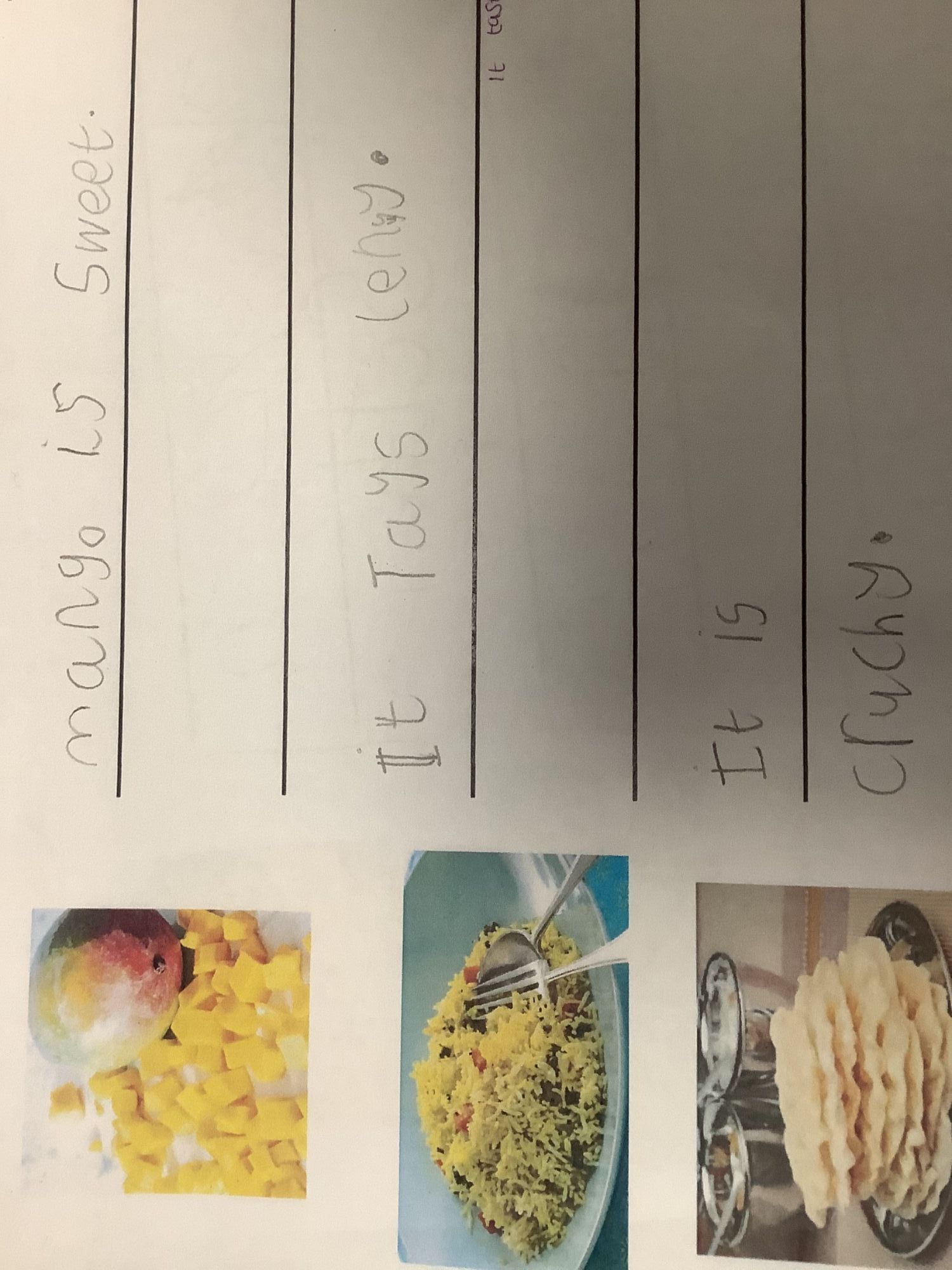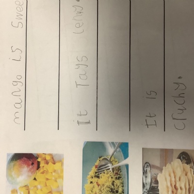 We tasted food that is associated with India, using all 5 of our senses whilst we did so, saying which was our favourite and finding out which most and least children liked!