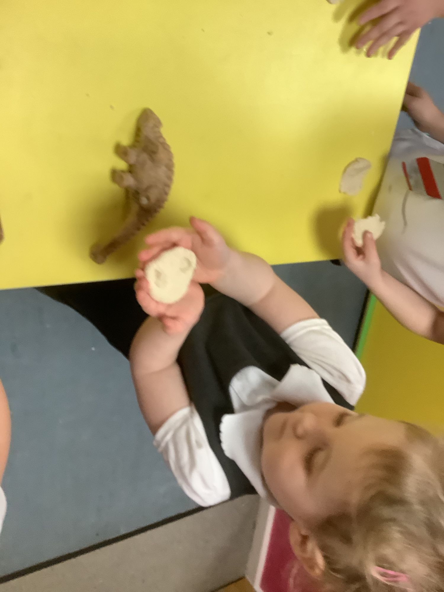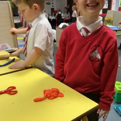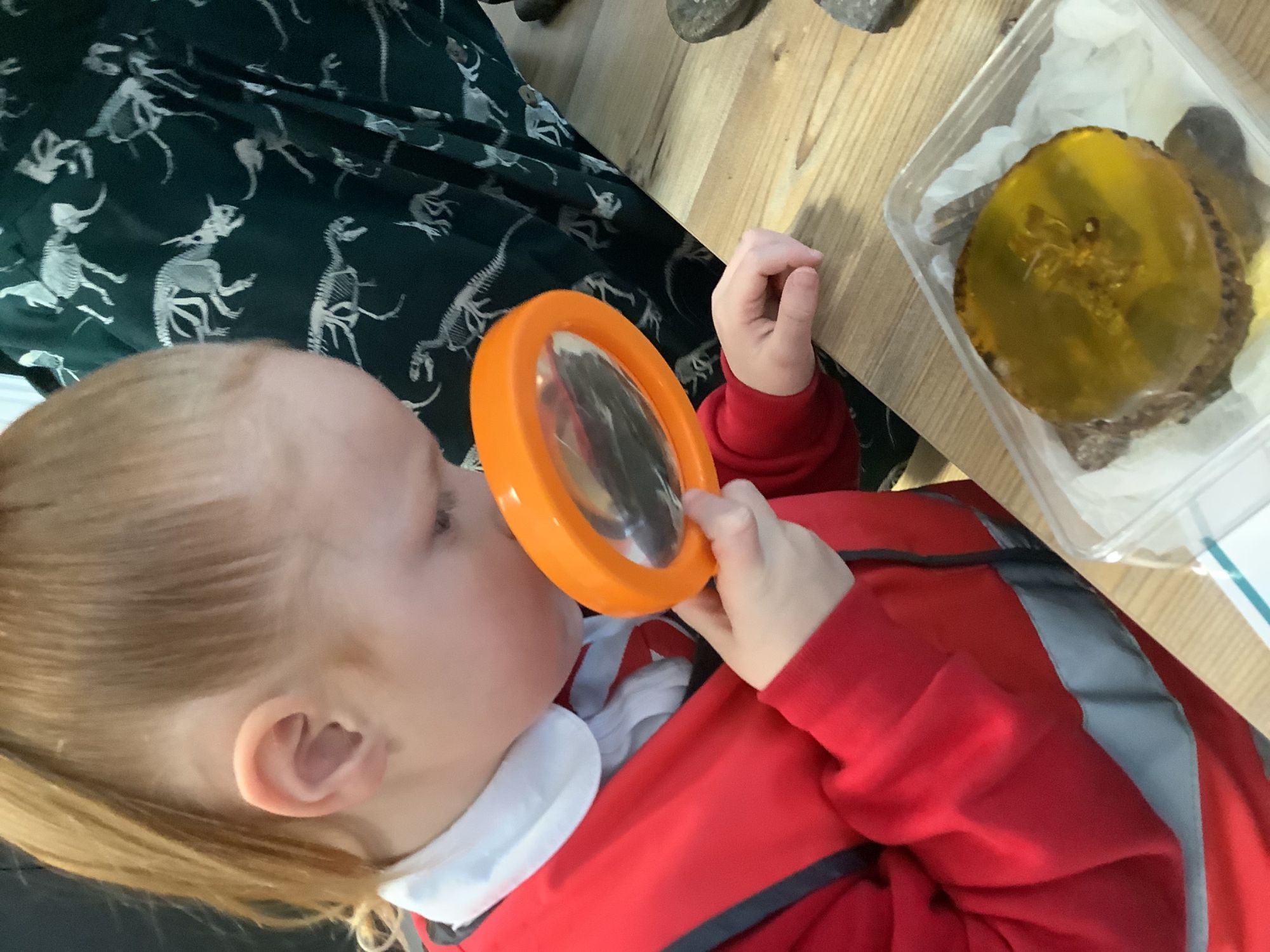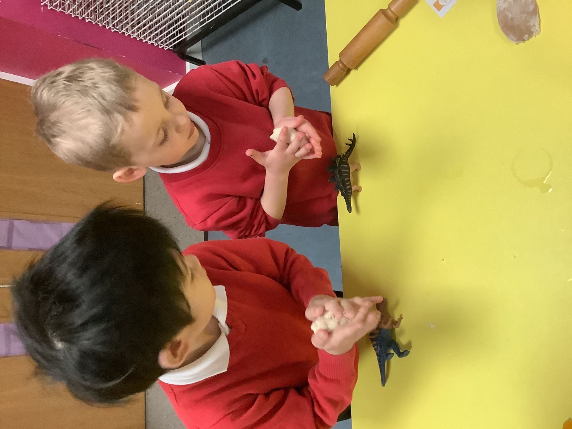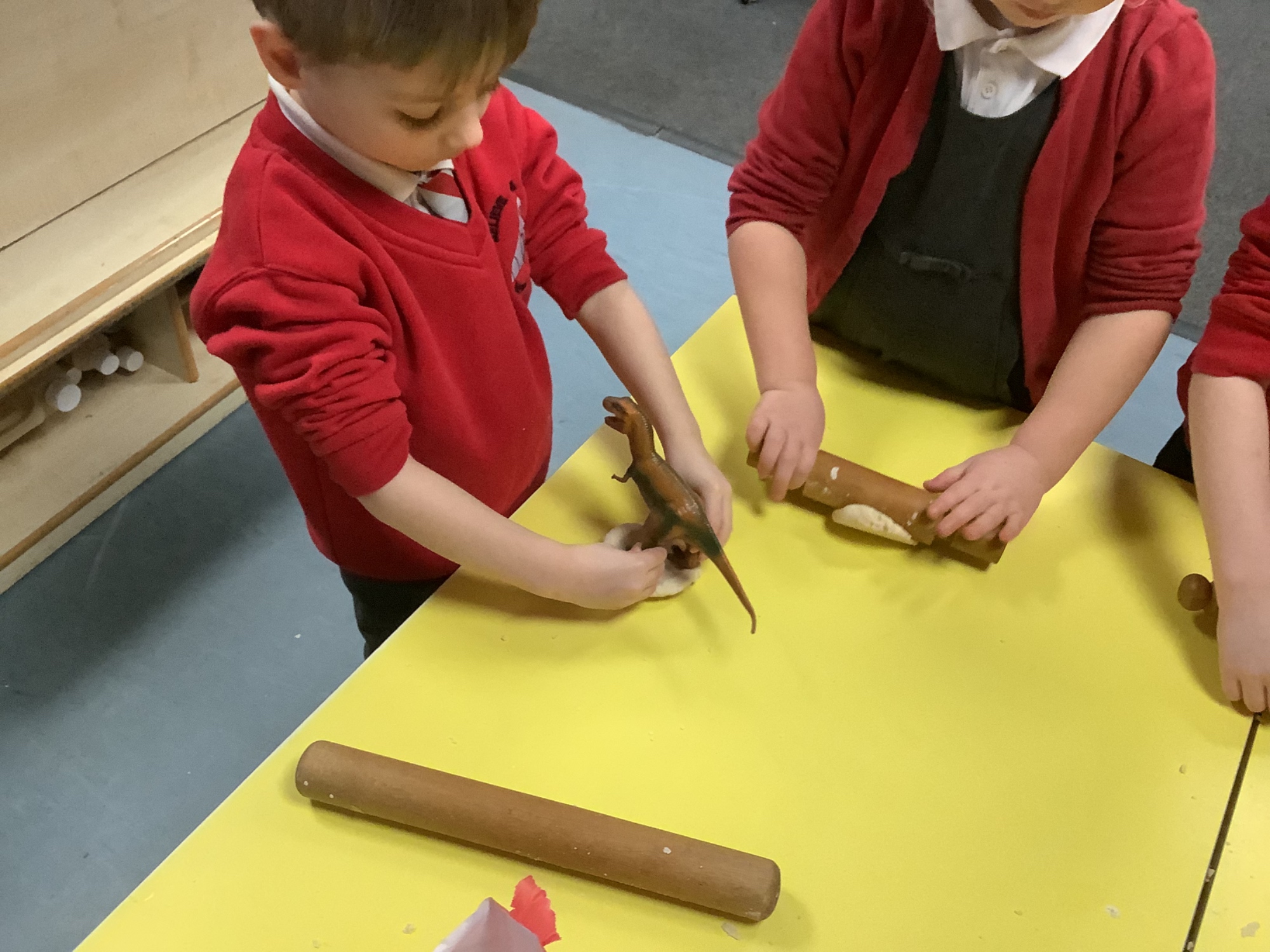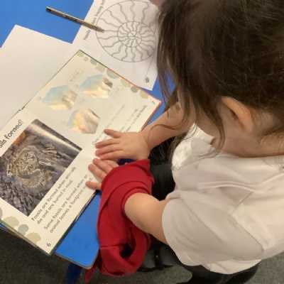 We then learnt about people who study dinosaurs, called Palaeontologists. We talked and wrote about what they did, explored fossils, and then made our own trace fossils using salt dough!