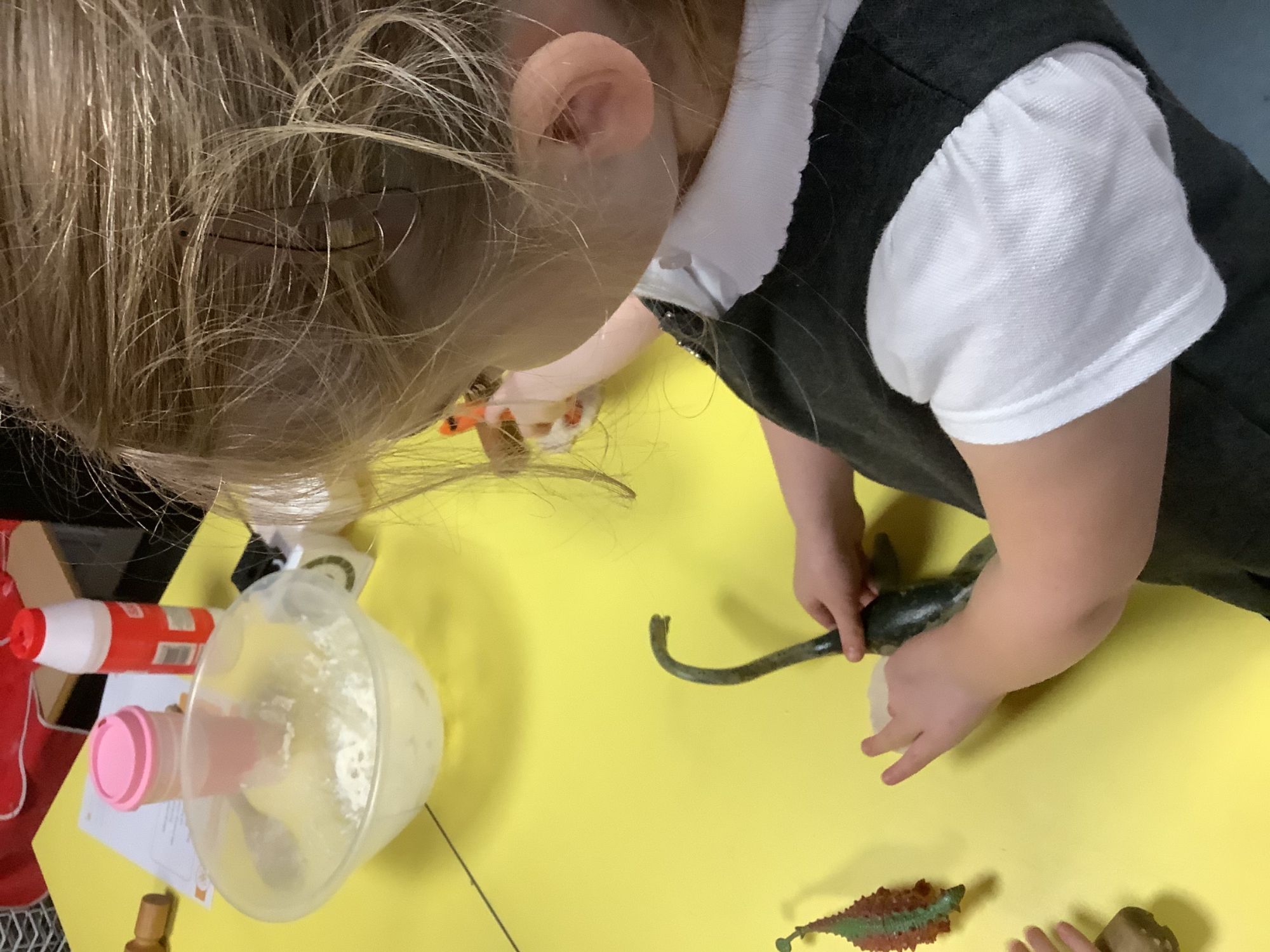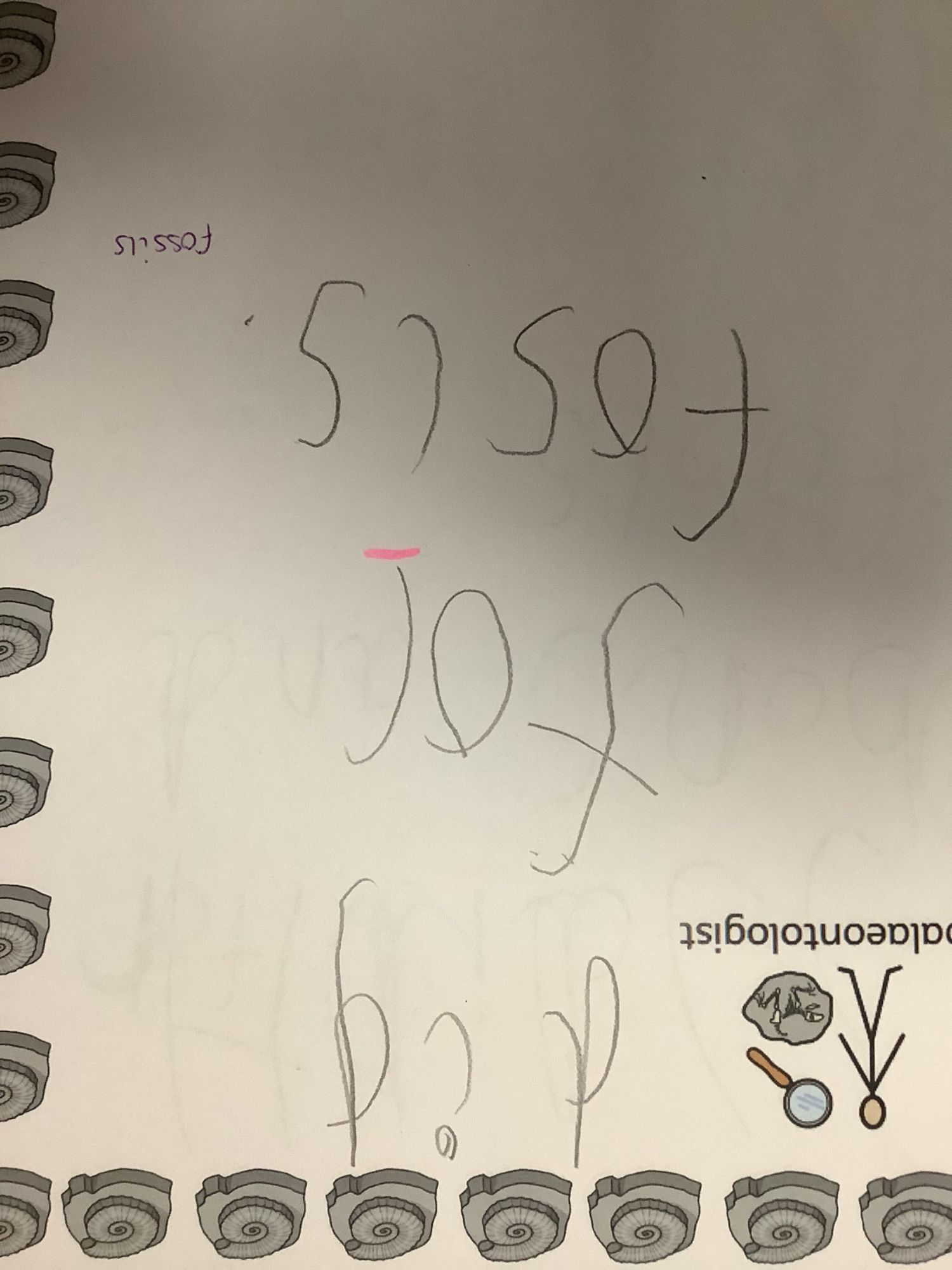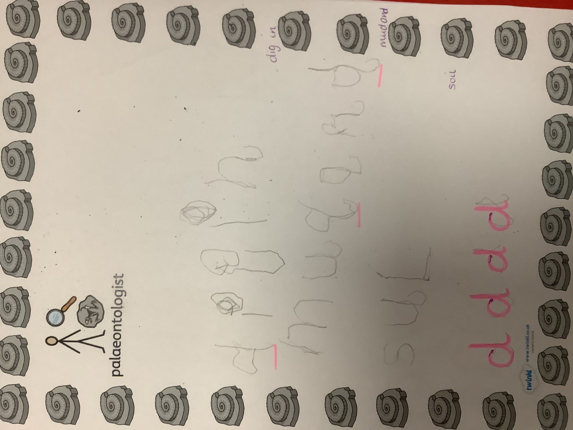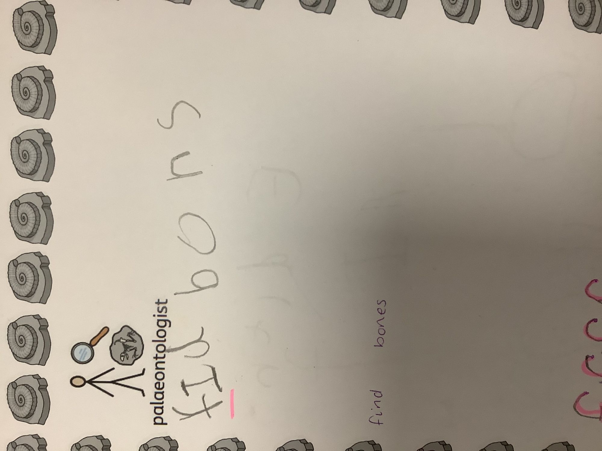 We then learnt about people who study dinosaurs, called Palaeontologists. We talked and wrote about what they did, explored fossils, and then made our own trace fossils using salt dough!