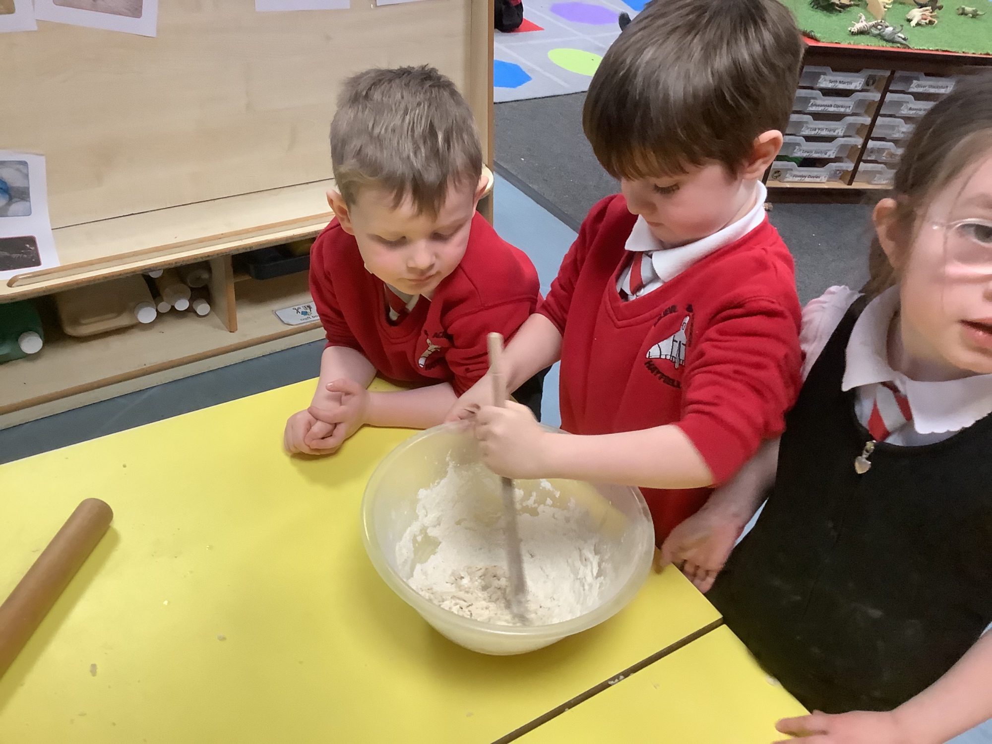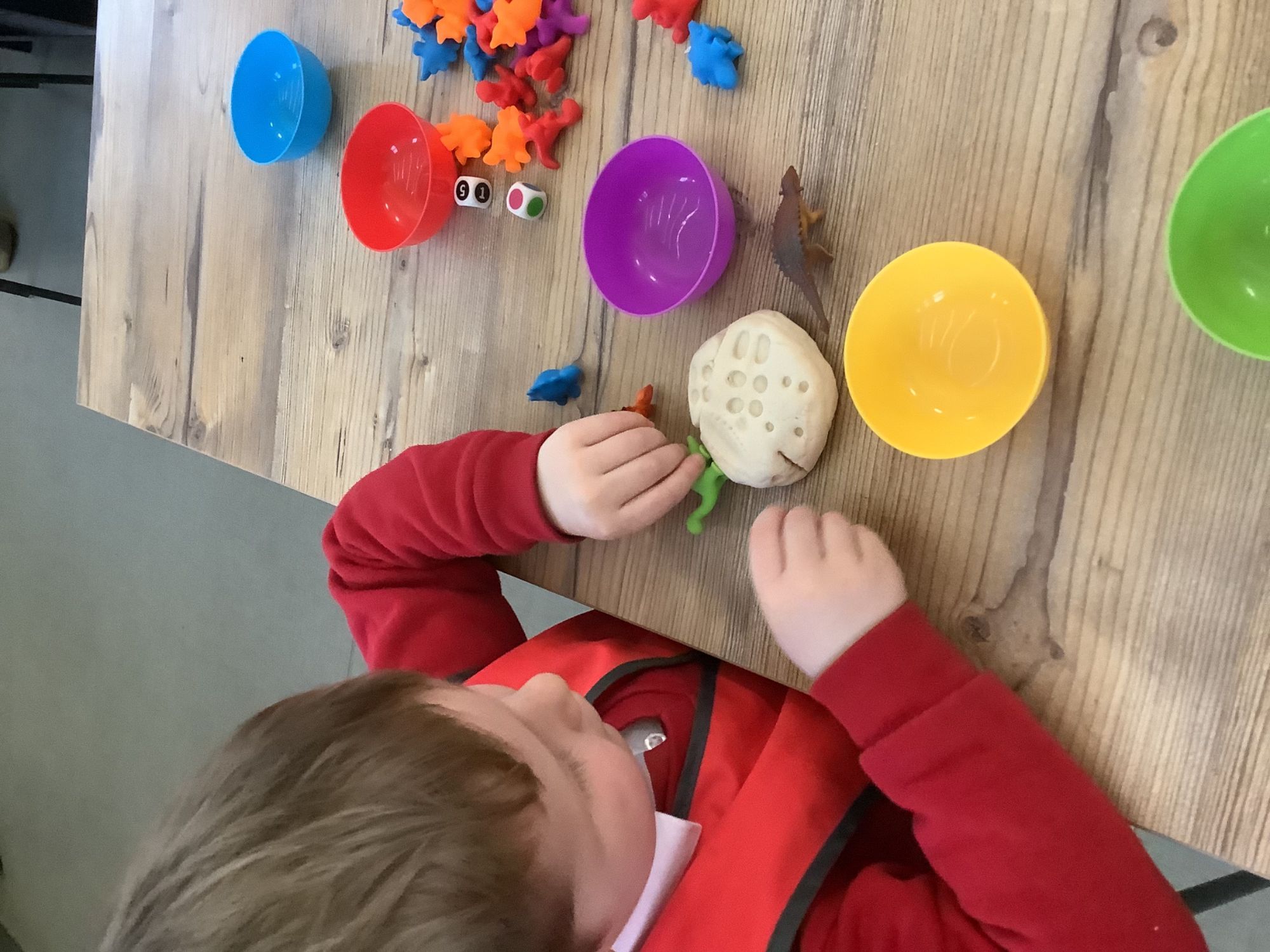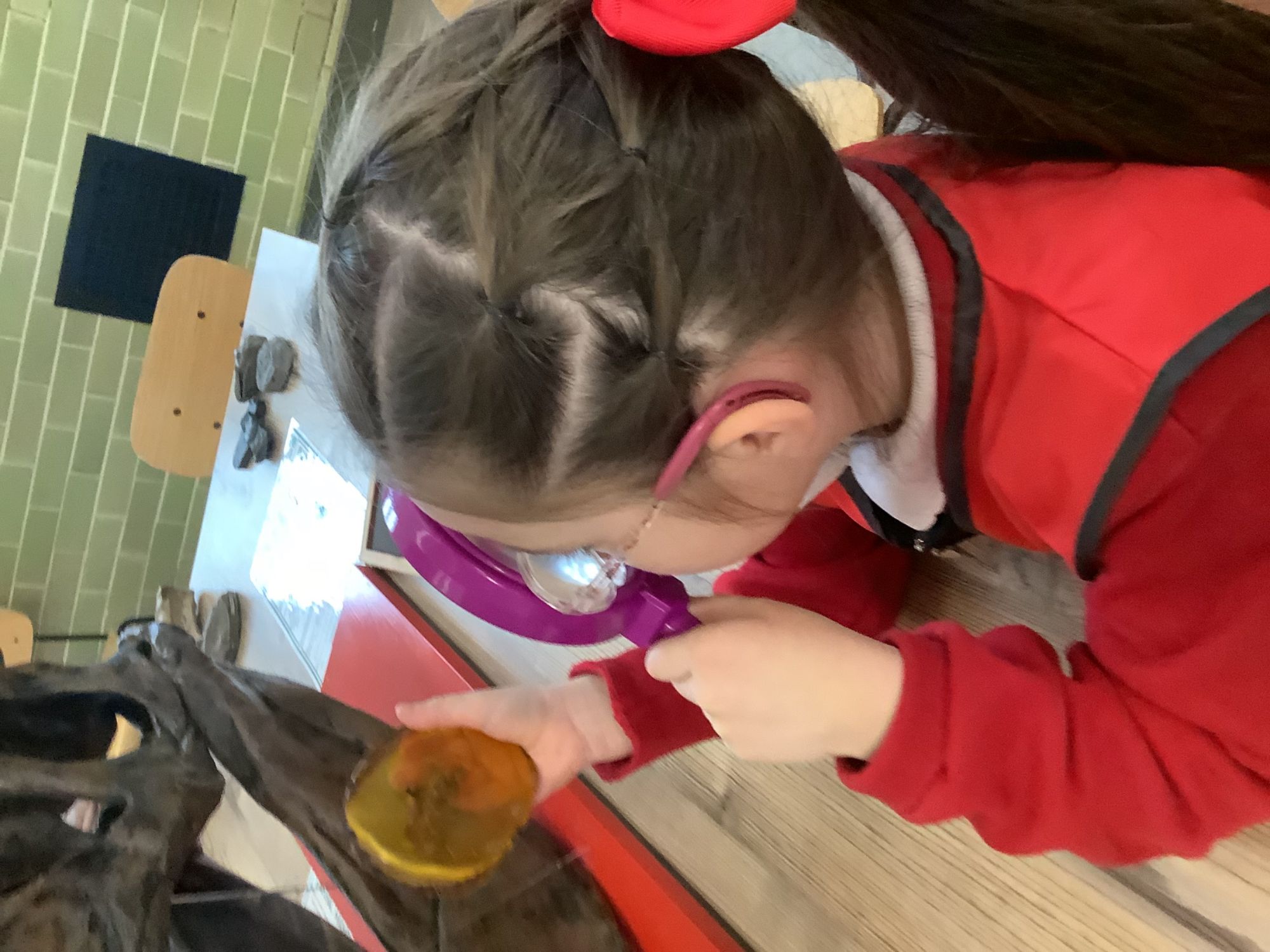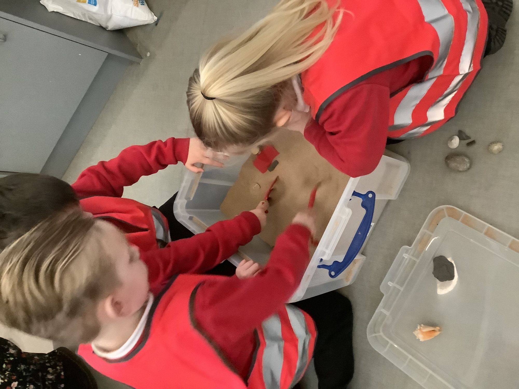 We then learnt about people who study dinosaurs, called Palaeontologists. We talked and wrote about what they did, explored fossils, and then made our own trace fossils using salt dough!