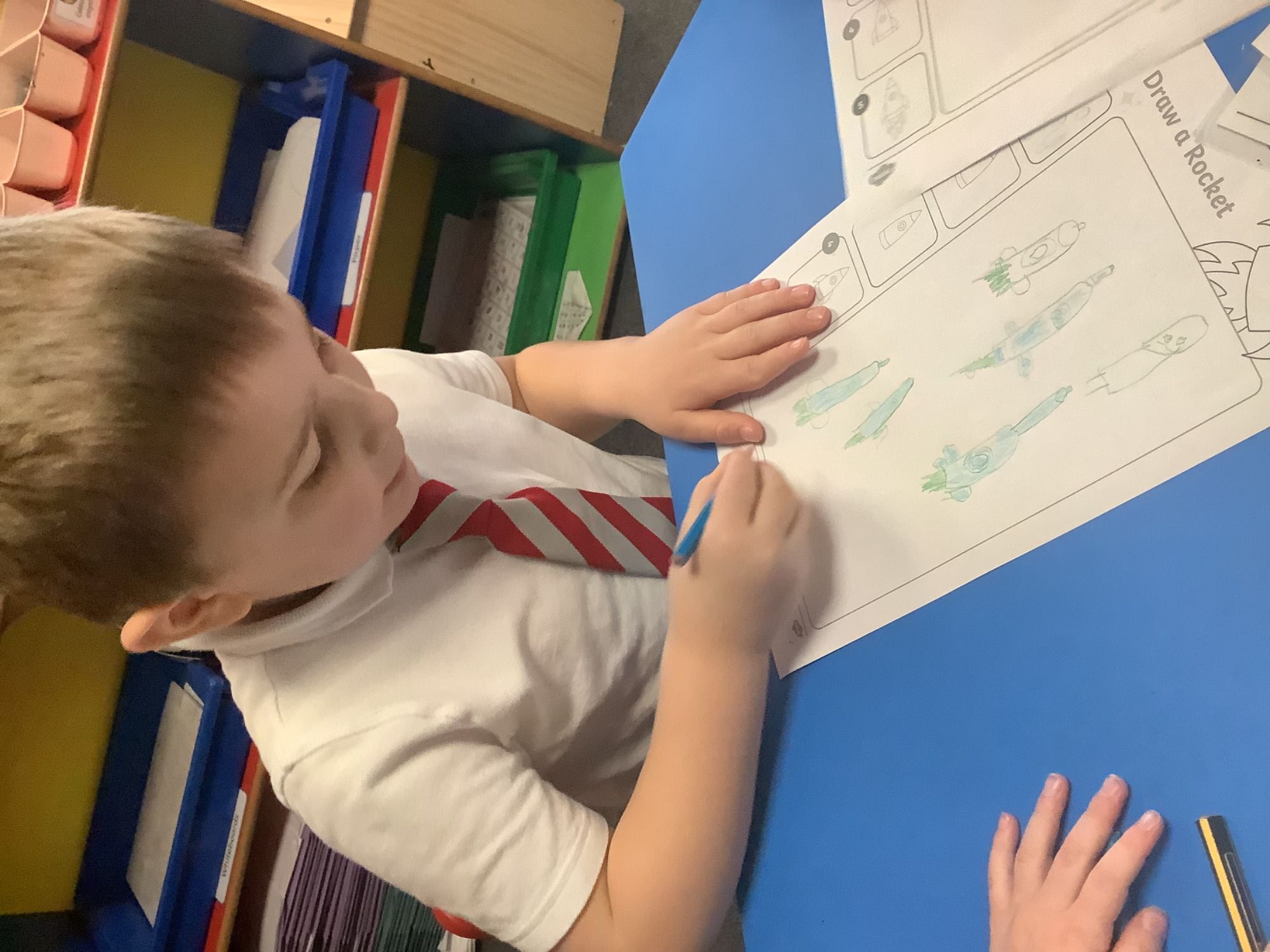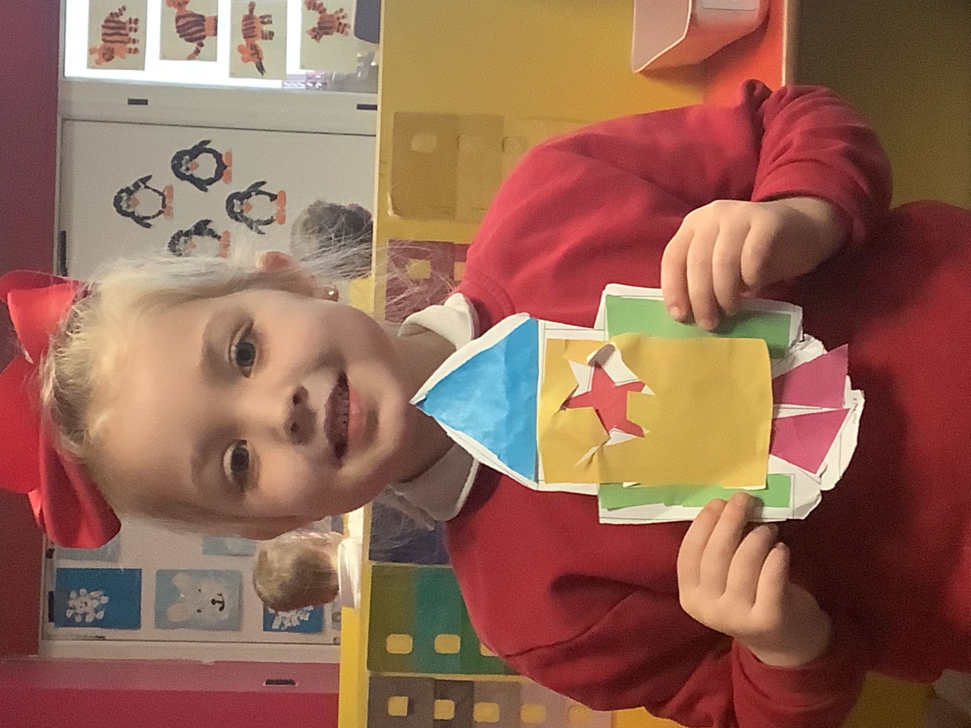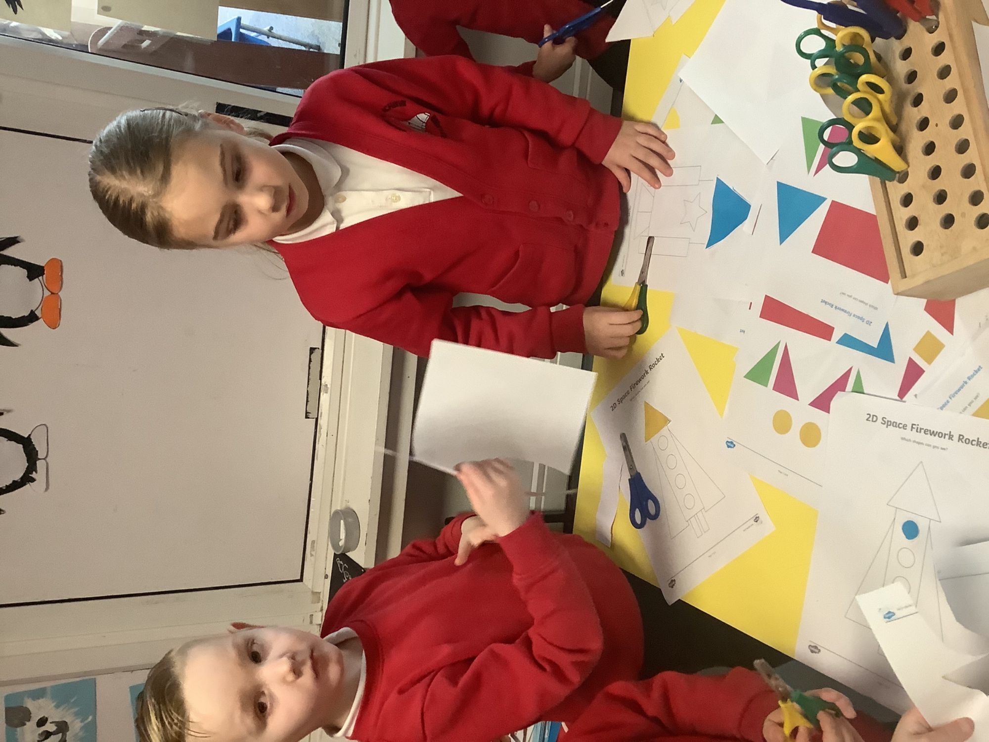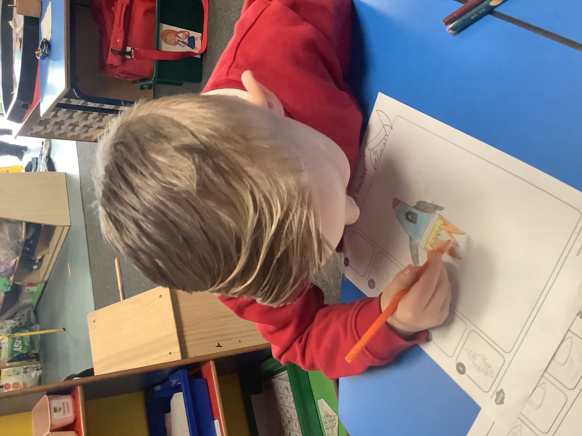 We then looked out to the moon, and thinking about how we would get there! We focused on rockets, looking at rocket launches, the moon landing , which happened in the past, and what a rocket might look like!